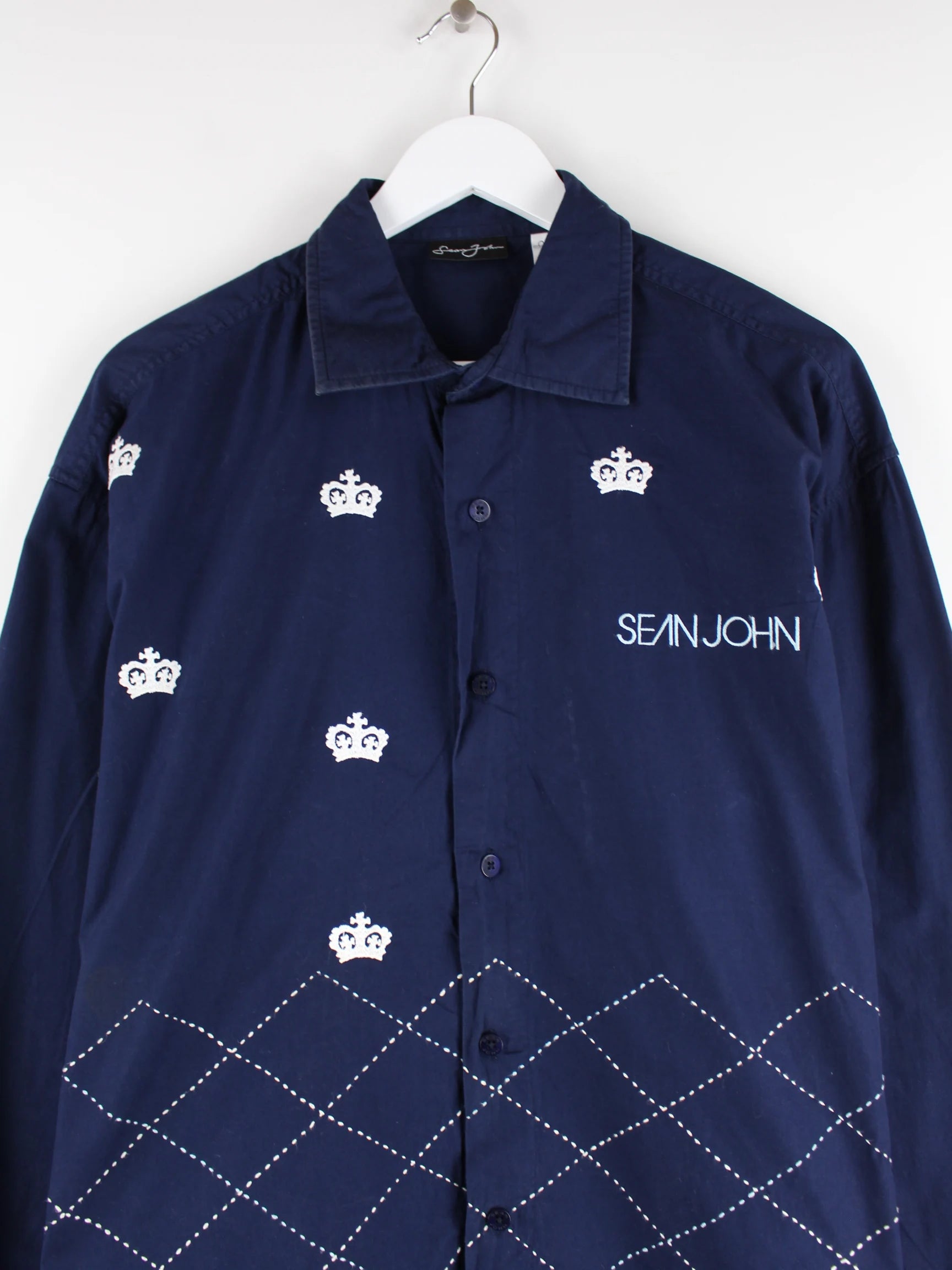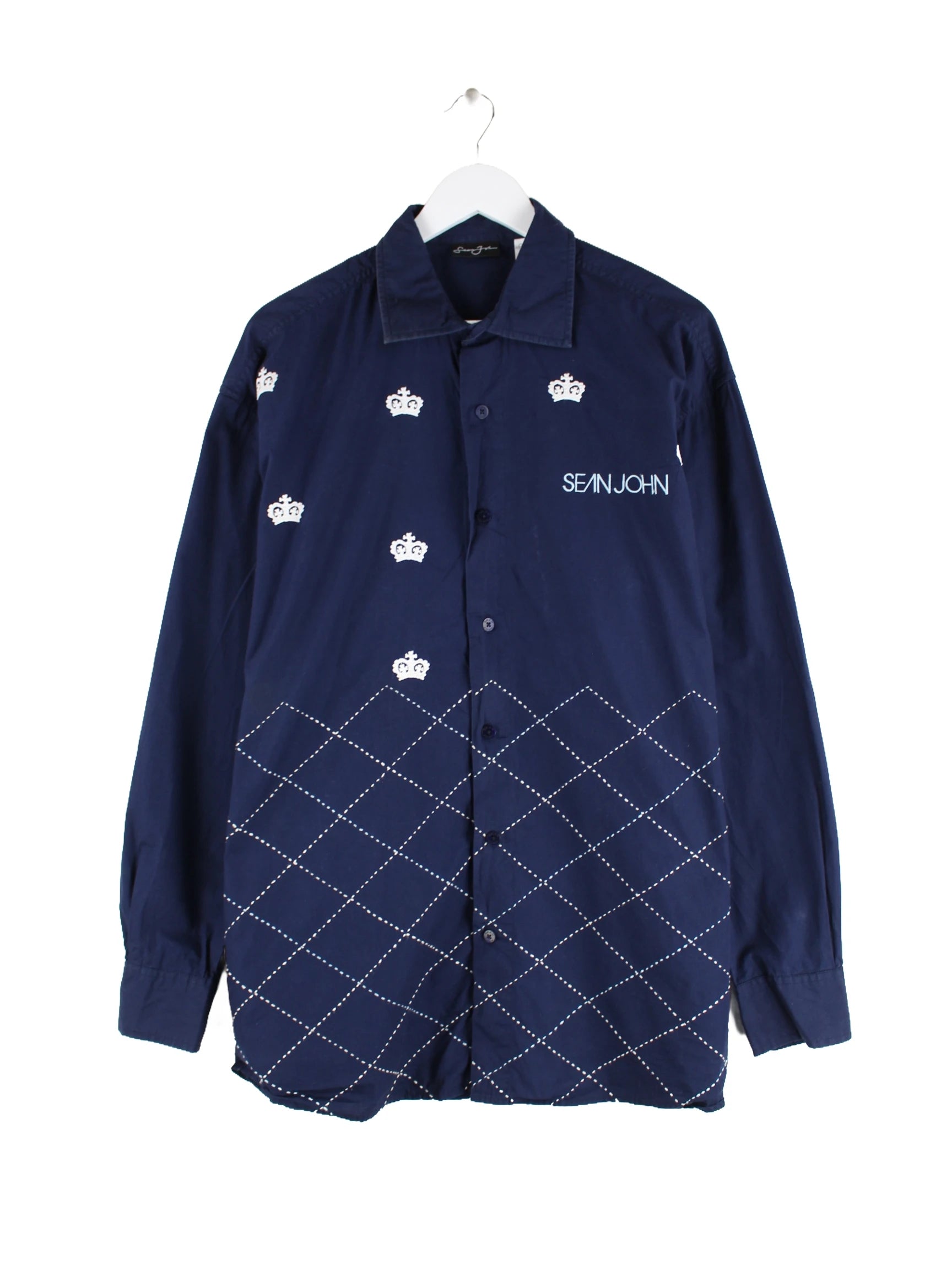 Blaues Freizeit Hemd vom Brand Sean John in Größe L. Es ist aus Baumwolle produziert und in sehr gutem Zustand bei uns zu bekommen.