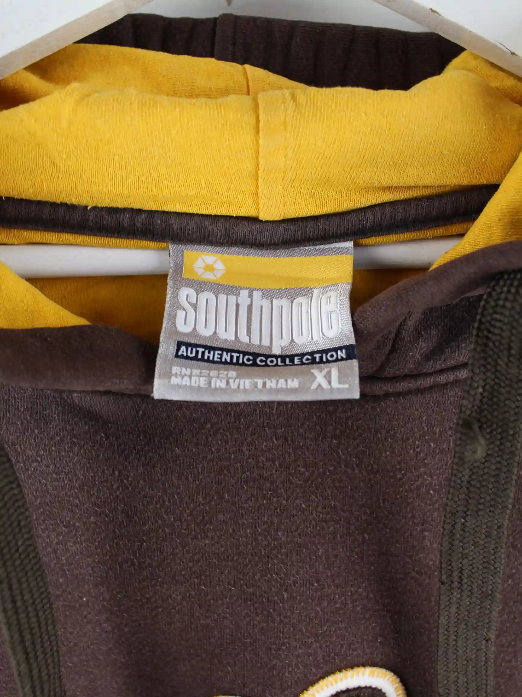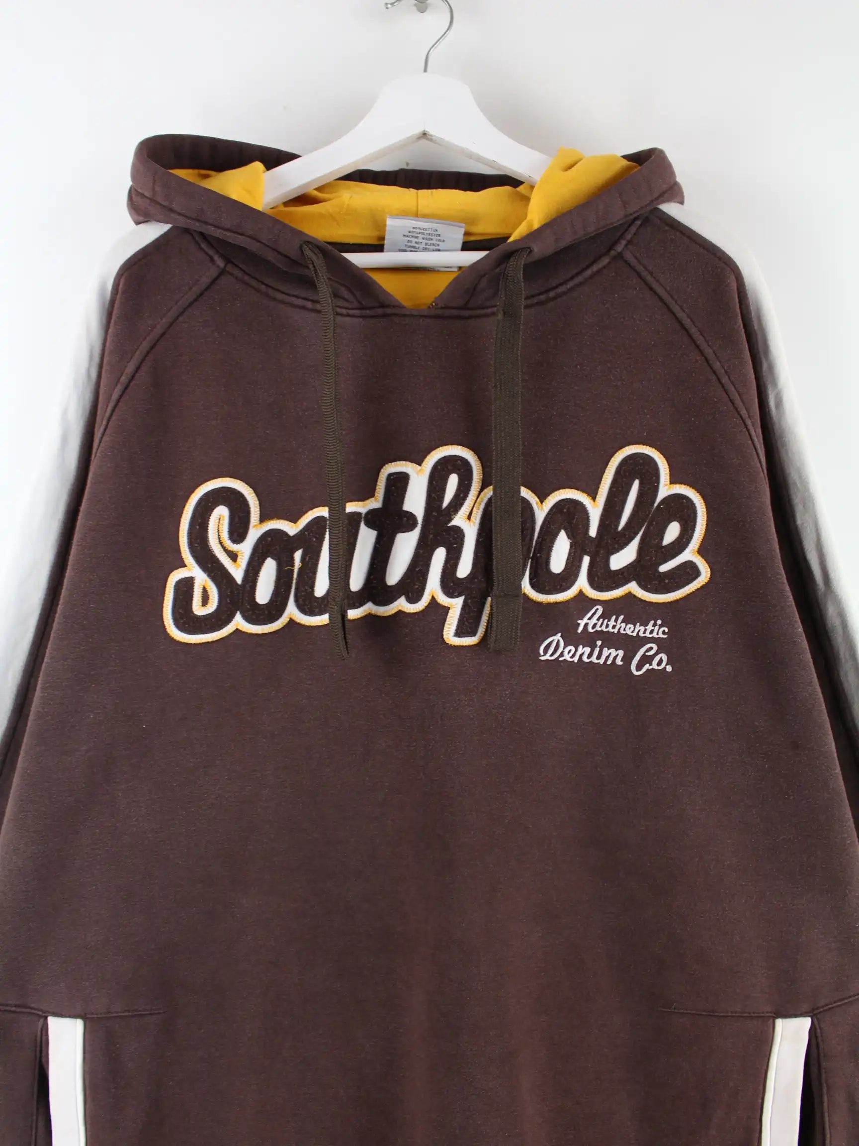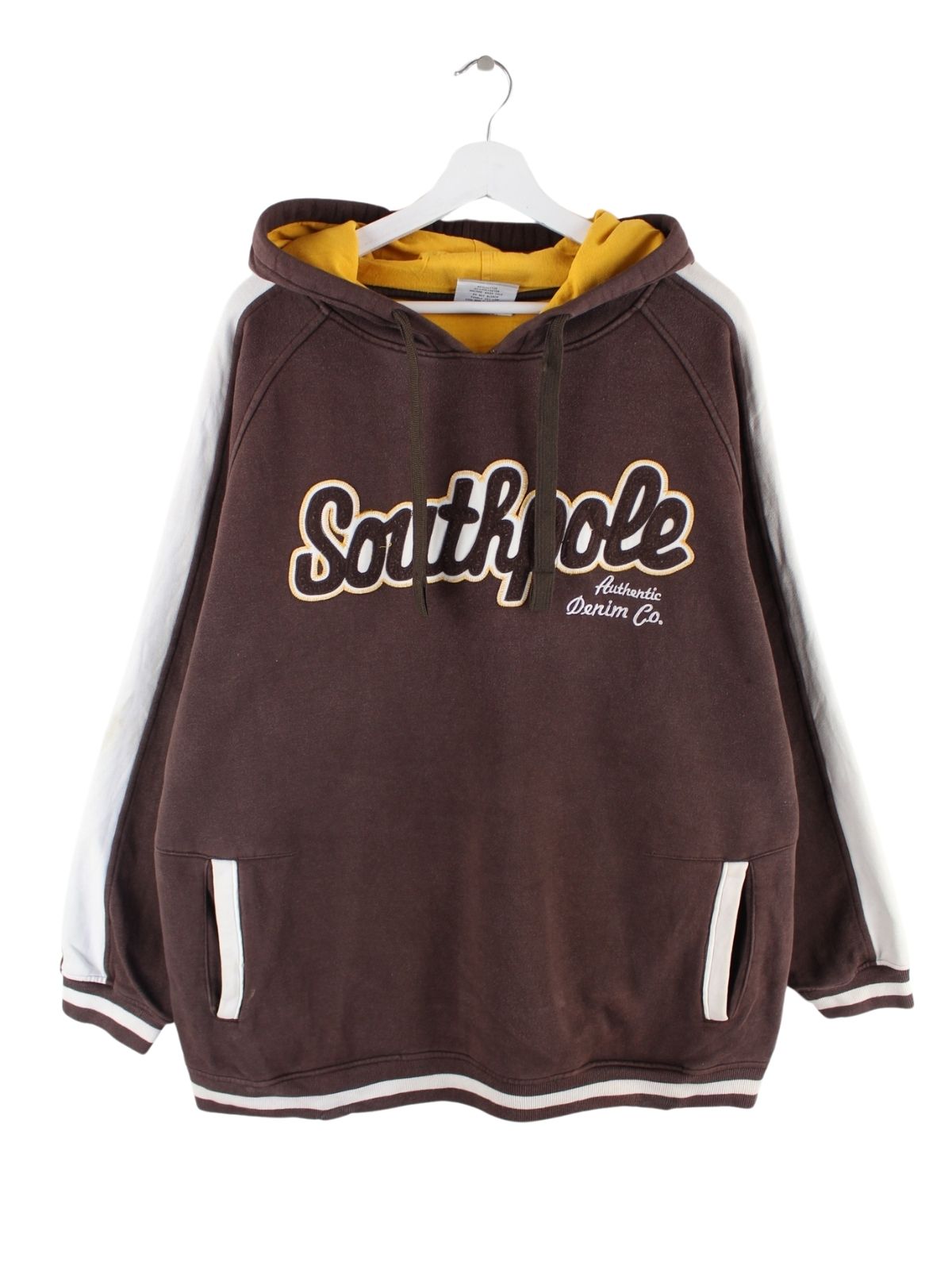 Hoodie von Southpole mit gesticktem Logo in Größe XXL aus Anfang der 2000'er. Er ist aus einer Baumwollmischung hergestellt und in Braun bei uns vorrätig.