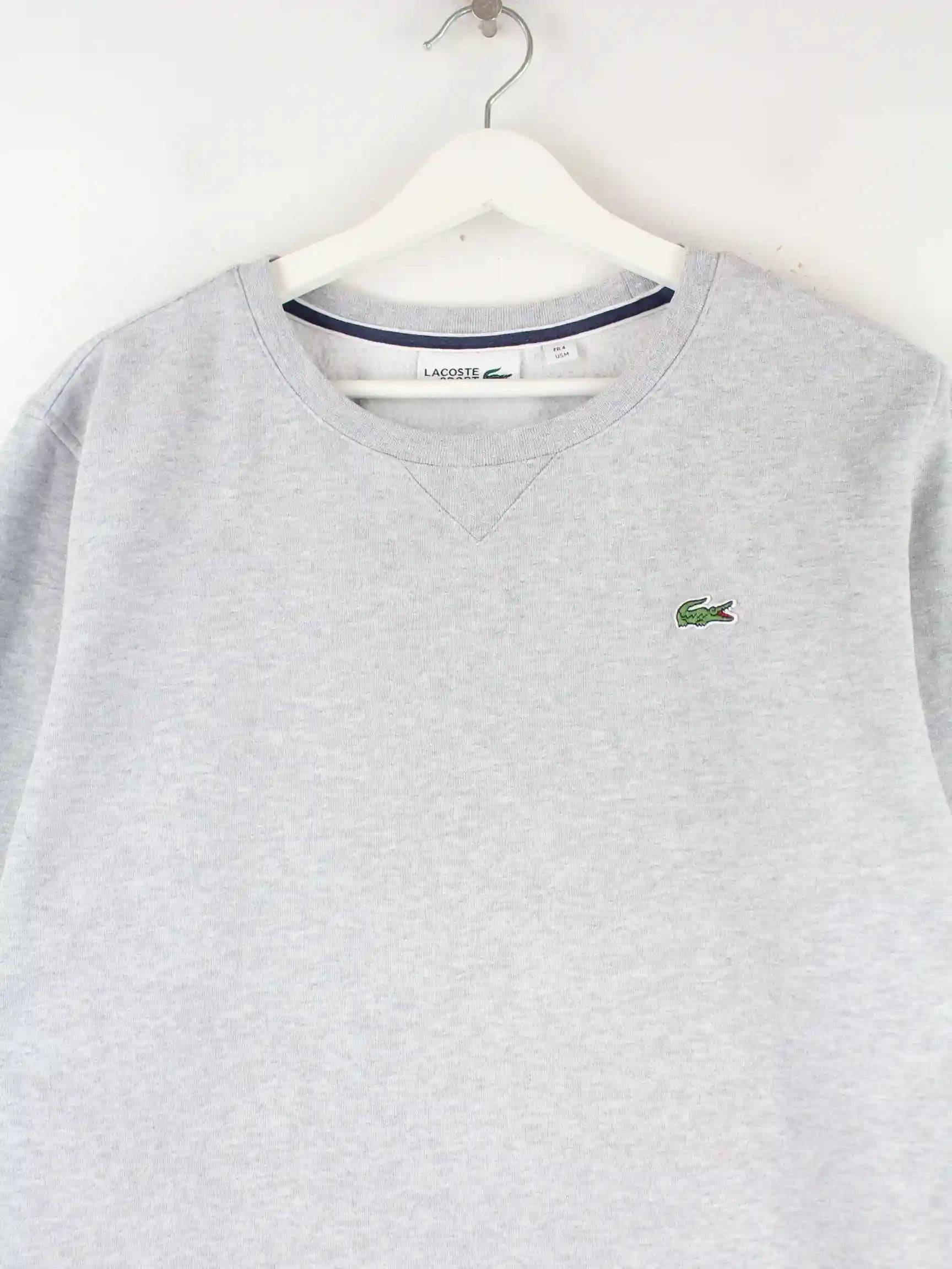 Grauer Sweater vom Label Lacoste in Größe M. Er ist aus einer Baumwollmischung . Den Zustand würden wir als 'In Ordnung' bezeichnen (vergl. Bilder).