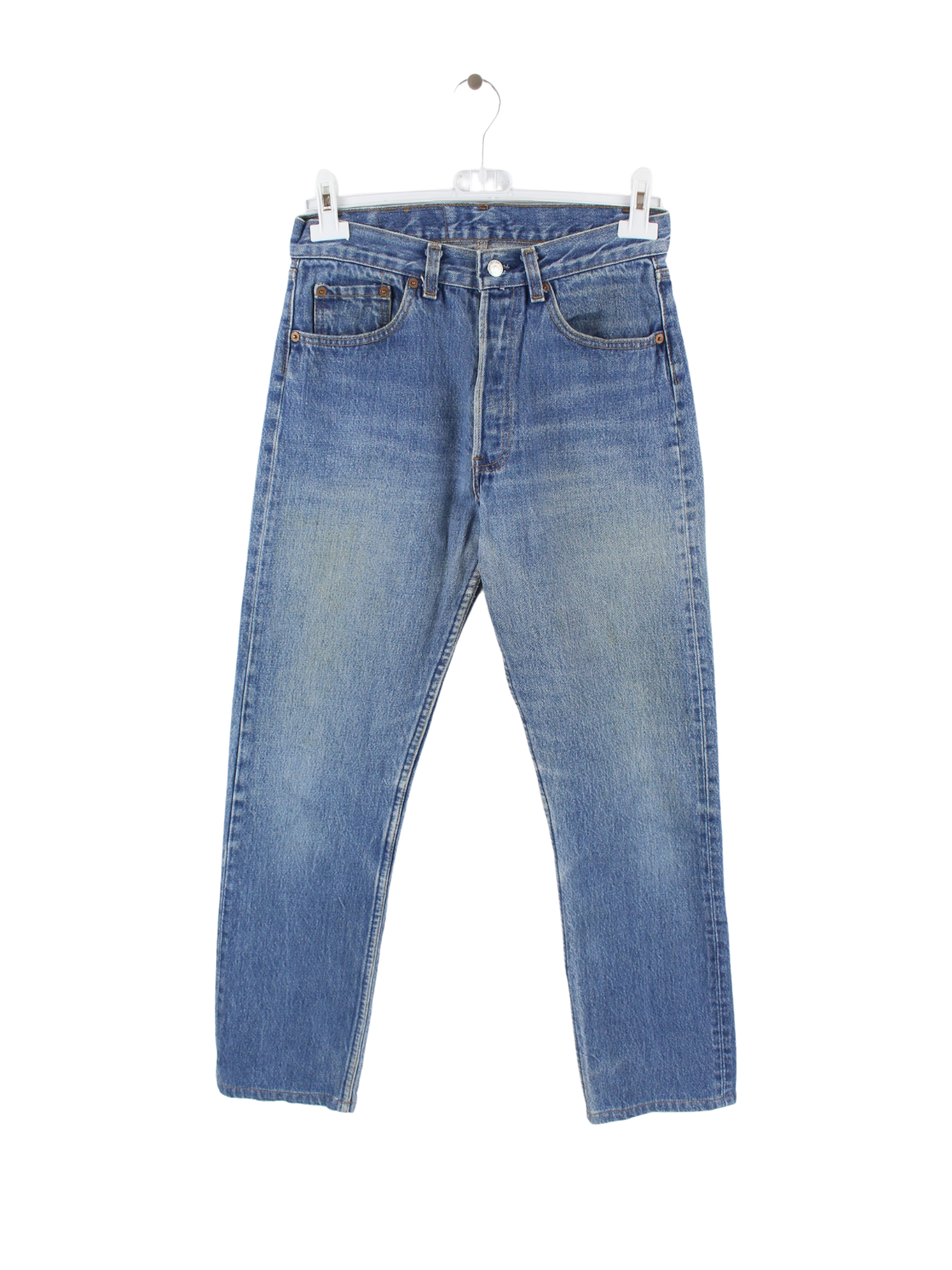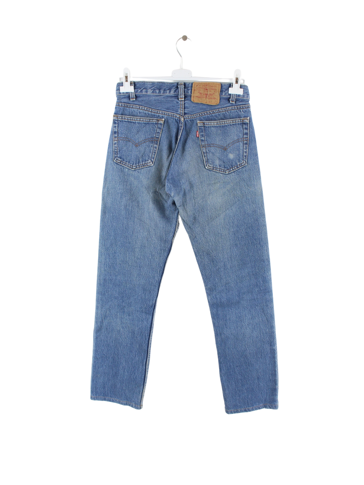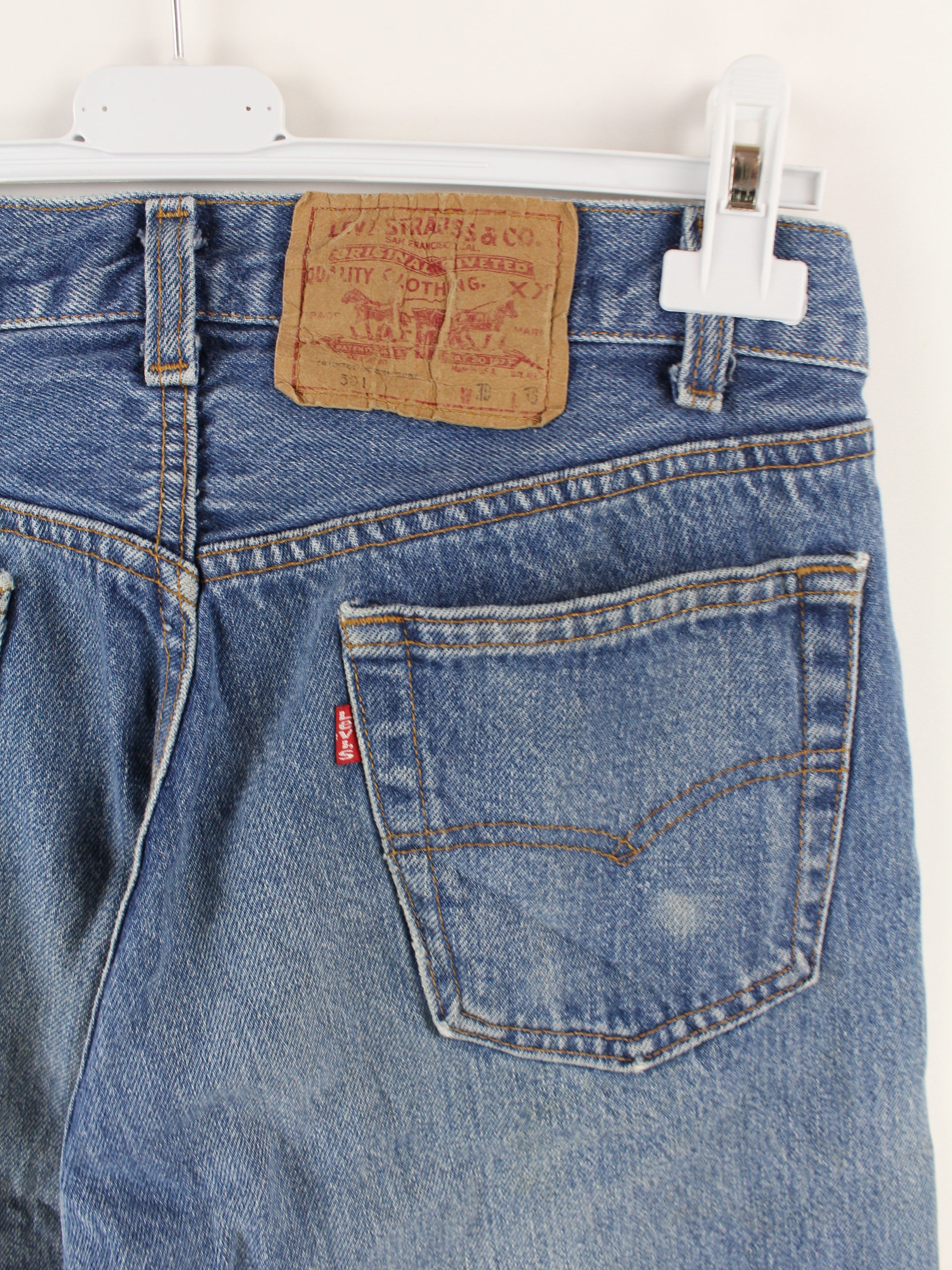 Blue Levi's 501 jeans in size. The jeans are size L36 but have been shortened to an L30.