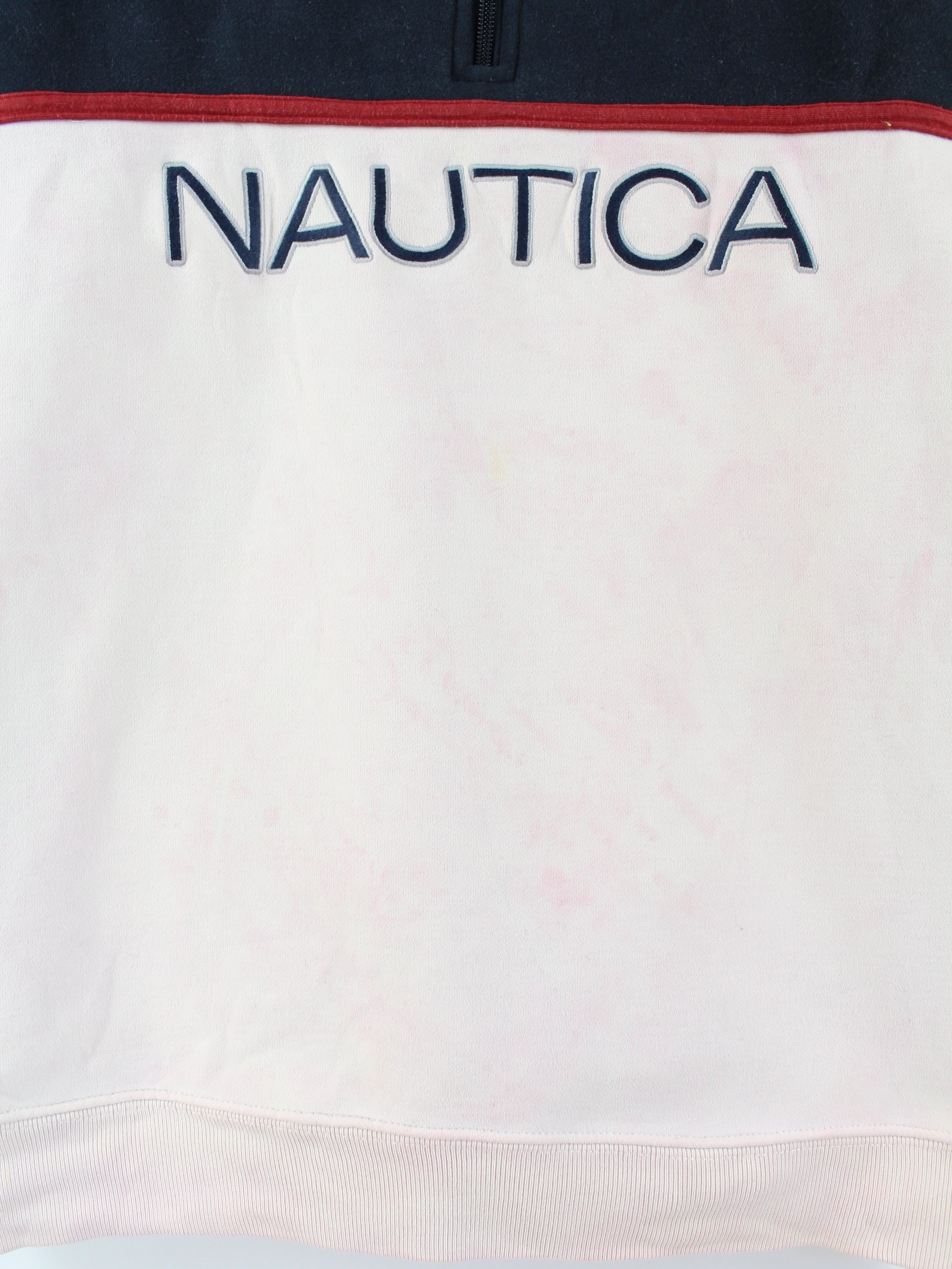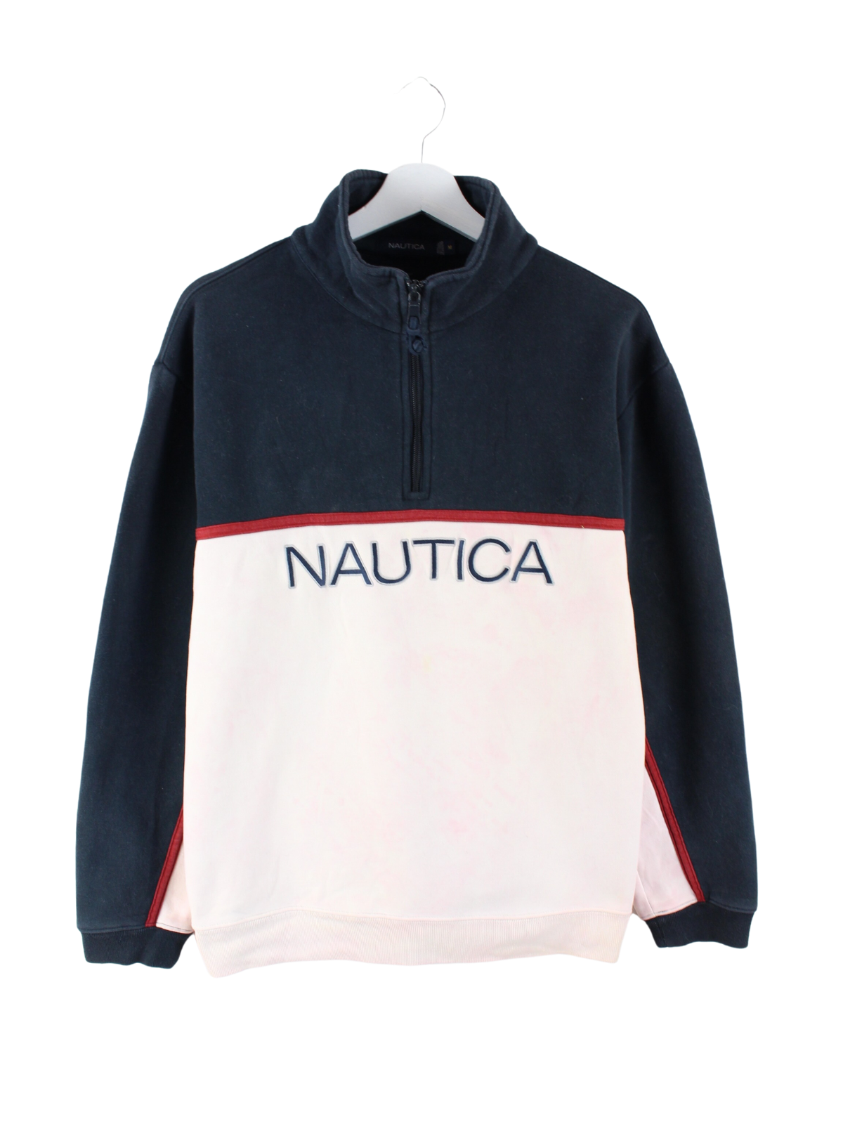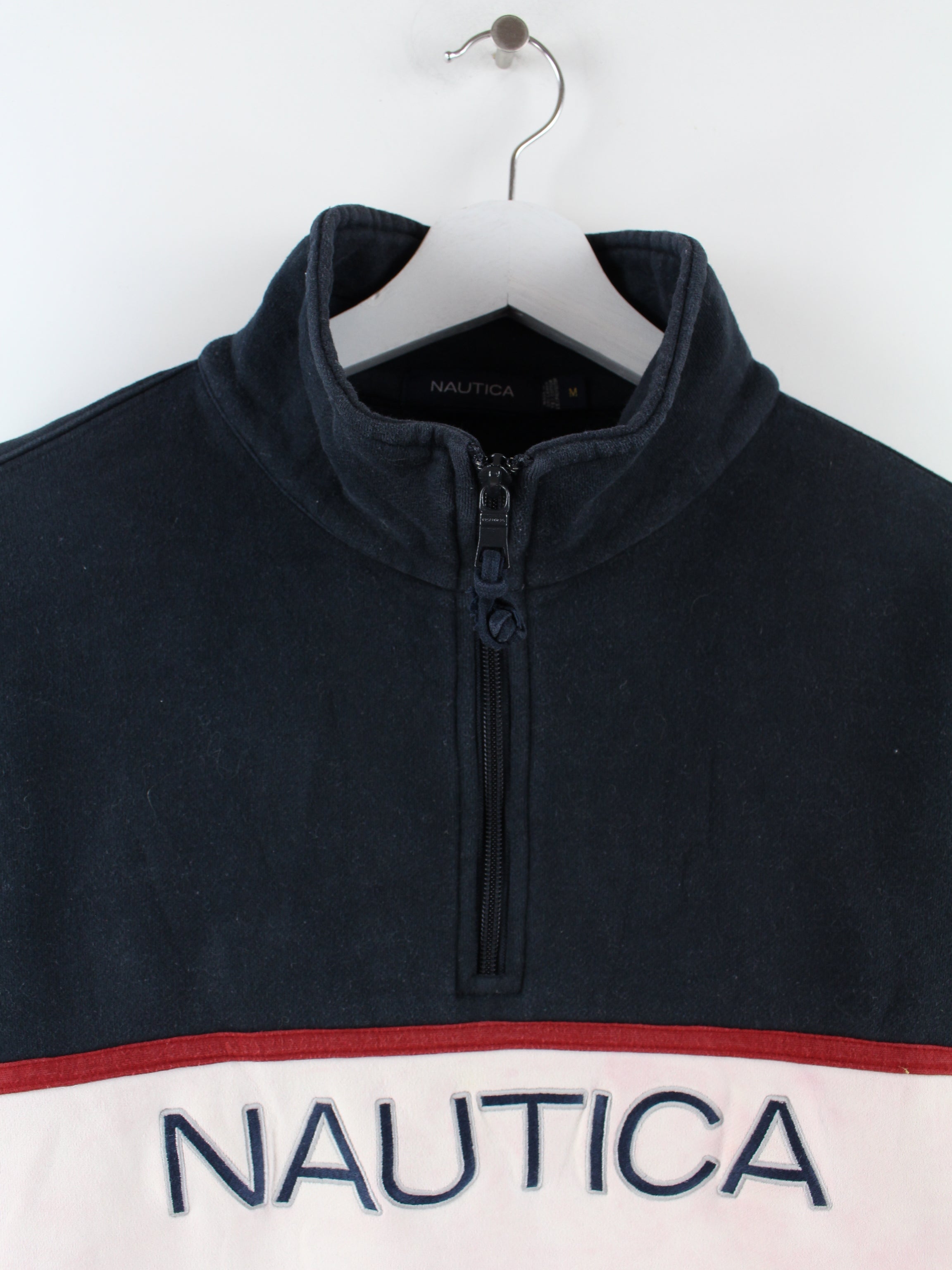 Black and white half-zip sweater from the Nautica brand with an embroidered logo.