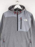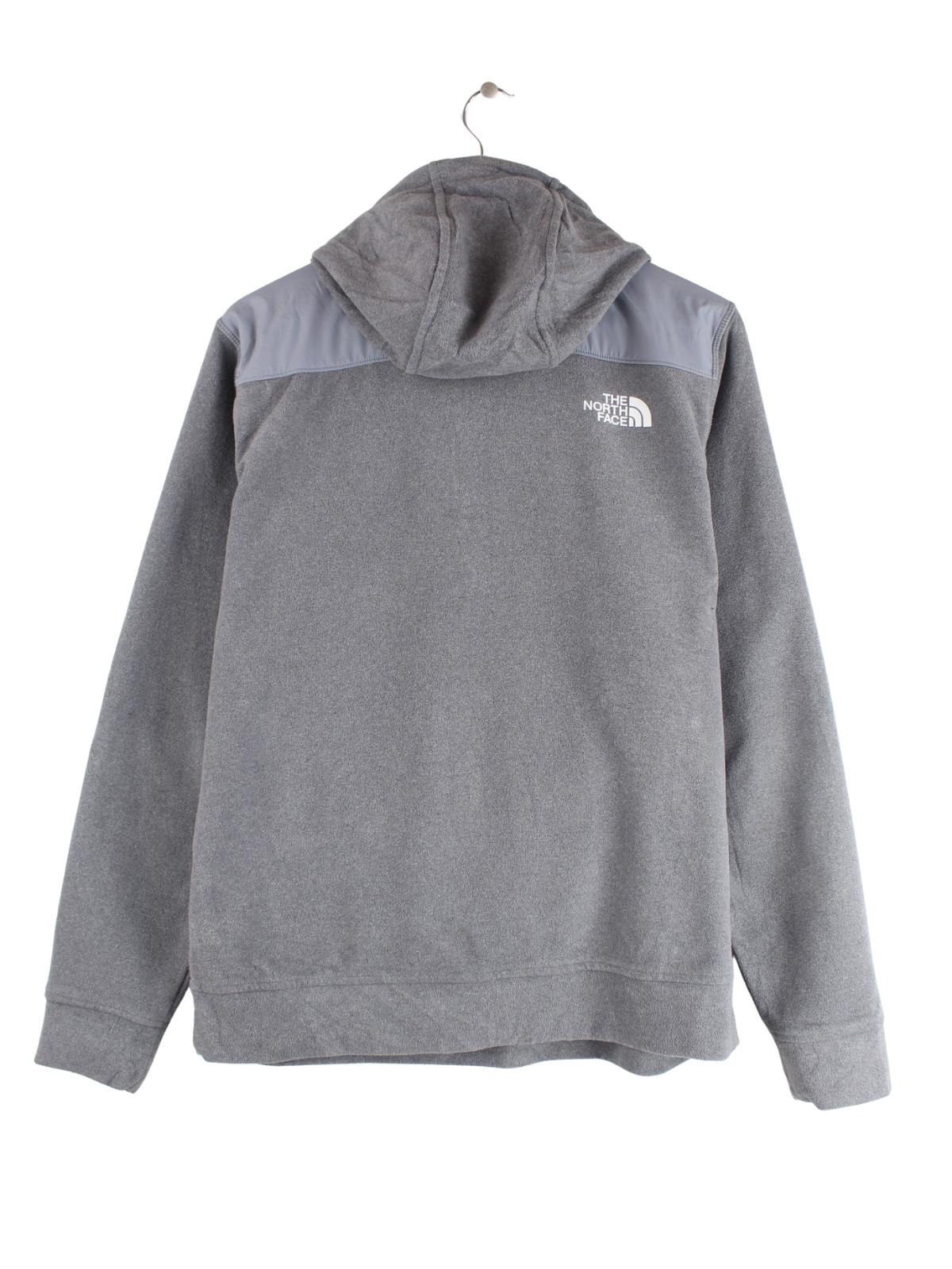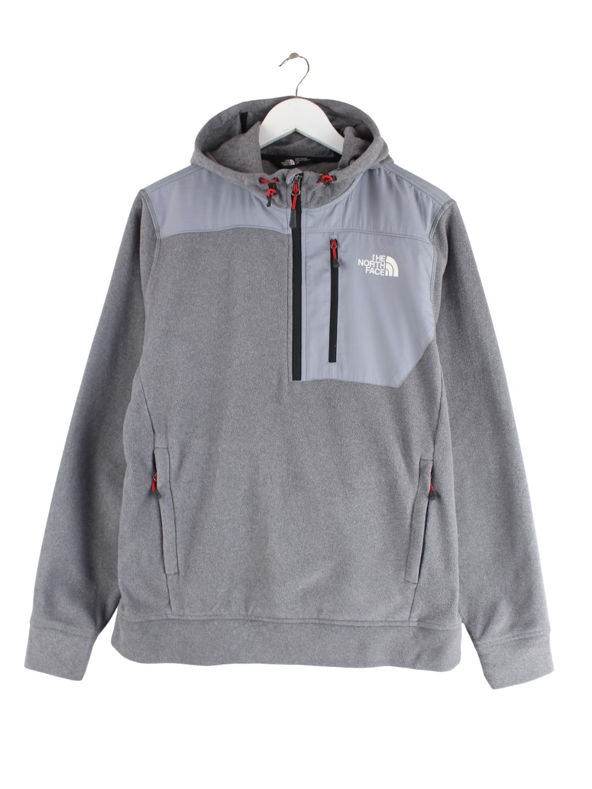 Graue Fleecejacke mit kurzem Reißverschluß des Labels The North Face in Größe M. Sie ist aus behaglichem Fleece hergestellt und in gutem Zustand lieferbar.