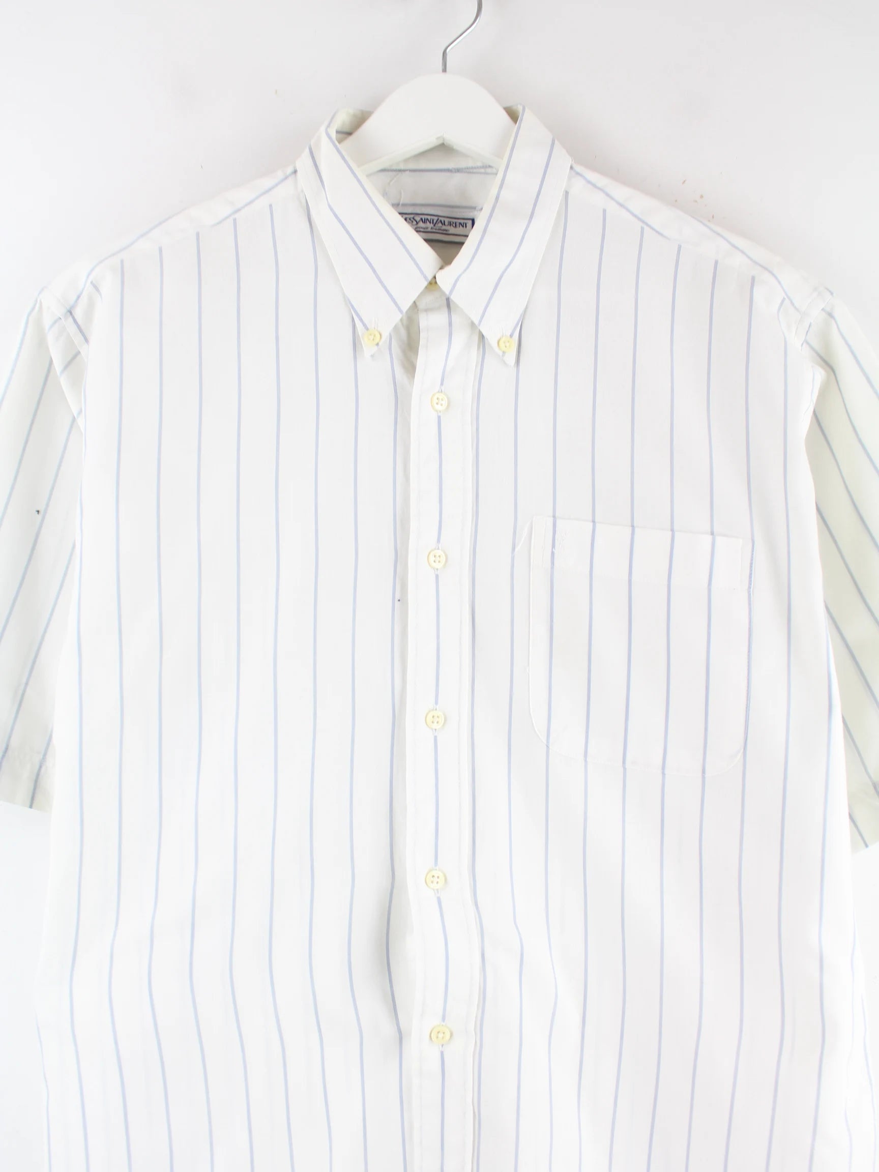 Yves Saint Laurent 80s Vintage Striped Kurzarm Hemd Weiß L
