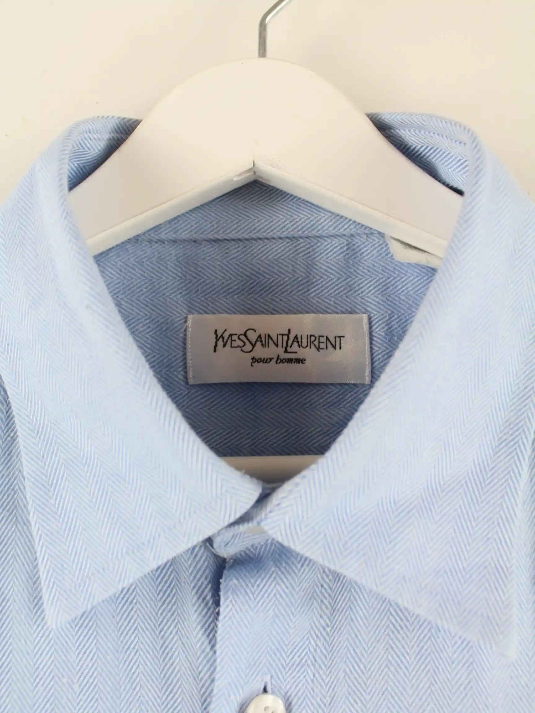 Yves Saint Laurent 90s Vintage Kurzarm Hemd Blau L
