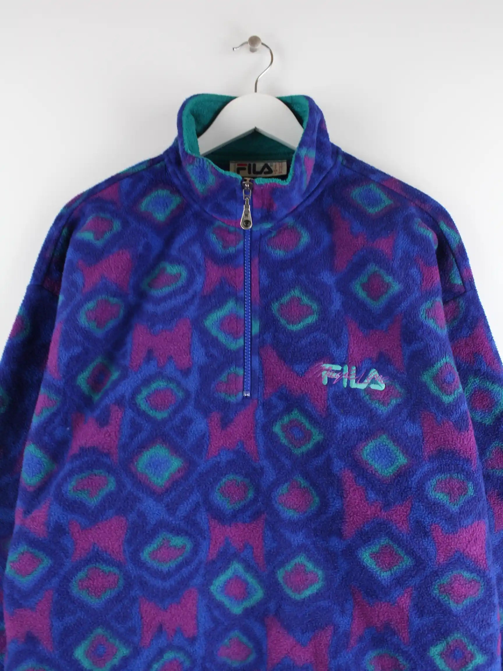 Fila 90s Vintage Magic Line Crazy Fleece Half Zip Sweater Lila XL