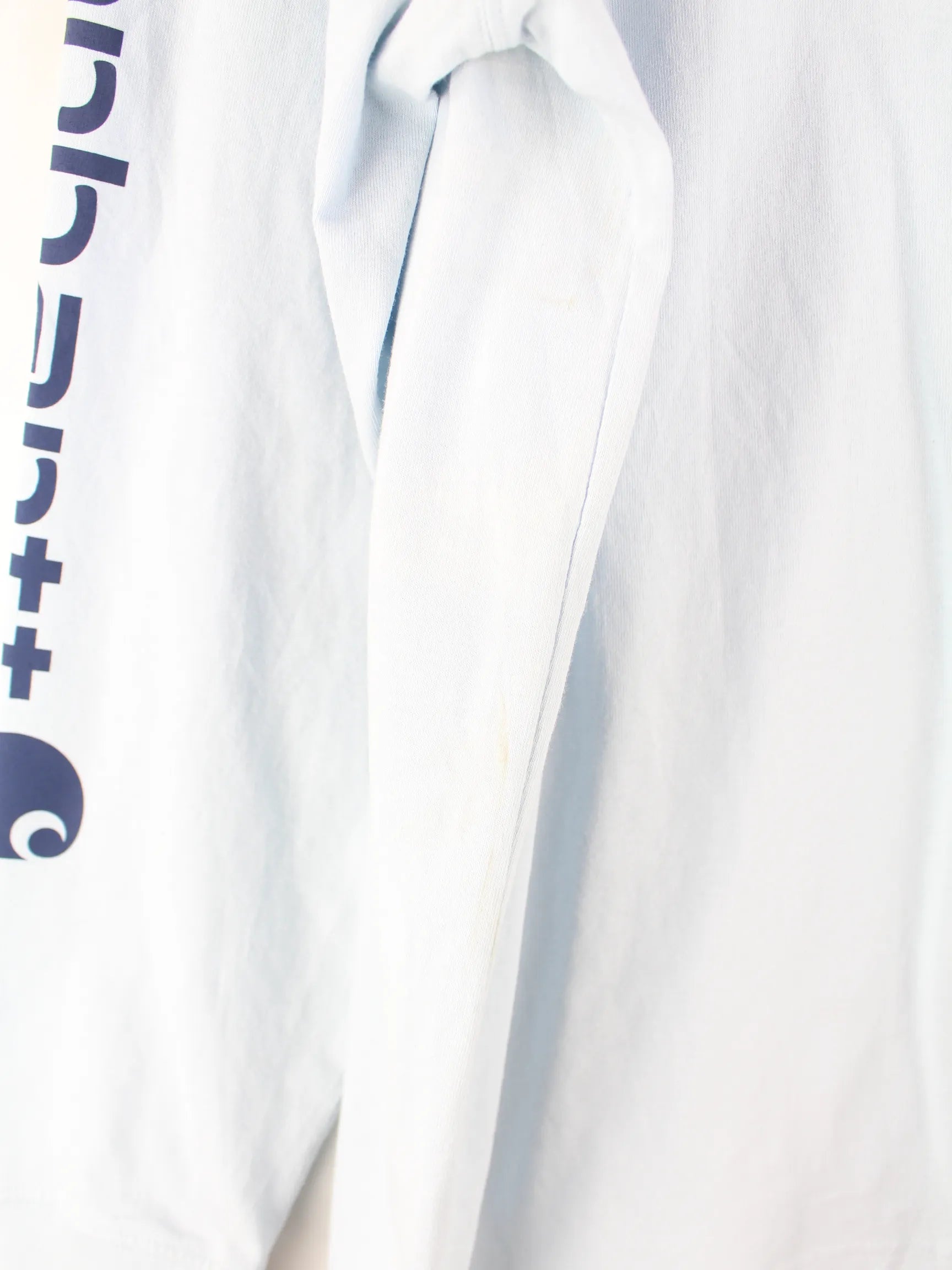 Carhartt clothes focus less on striking looks, prints, variety and bright colors - they are more convincing in a simple style. The pants are mainly in beige, brown, grey, olive green or black and convince with loving details such as patches and sewn-in pads. T-shirts, on the other hand, come in fresh summer colors like orange or green. In addition, the classic Carhartt logo in orange and lettering is always unmistakably emblazoned on the garments, which somehow has a retro vibe about it. It quickly becomes clear: Carhartt clothing does not keep up with the times or fashion, but has been presenting a simple design for years of production, which, however, meets all quality requirements, embodies many years of tradition and radiates casualness and sportiness for young people. Carhartt baggy pants or cargo pants are particularly popular with the younger generation. We also offer some vintage Carhartt clothing in our online shop, such as vintage Carhartt jackets or vintage Carhartt shirts - stay on this page to check out our entire selection of vintage Carhartt clothing!