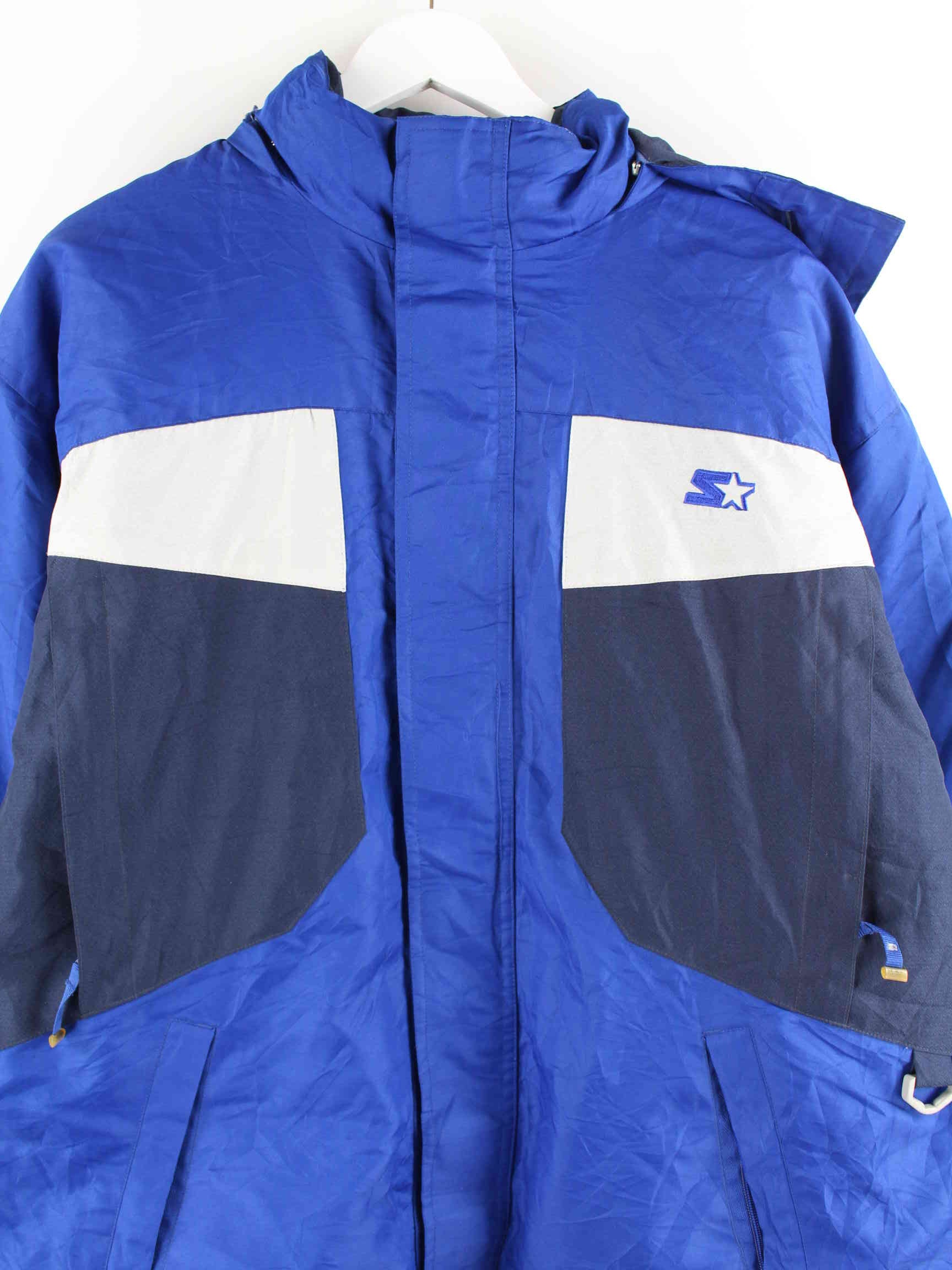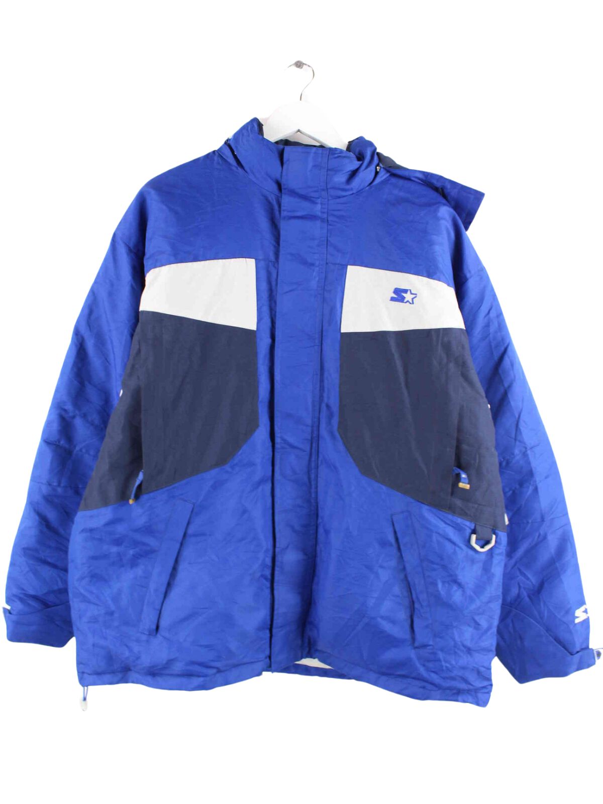 Jacket from the Starter brand in size L. It is made of synthetic material and is available in blue.