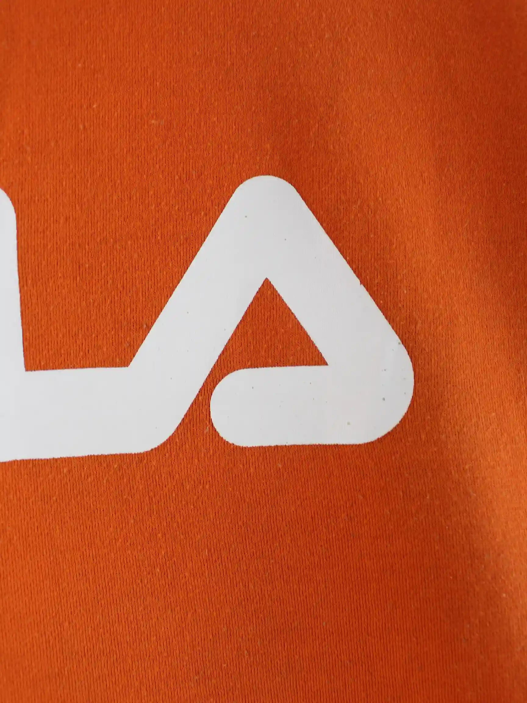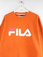 Orangefarbener Sweater des Labels Fila in Größe M. Er ist aus einer Baumwollmischung angefertigt. Den Zustand würden wir als 'In Ordnung' bezeichnen (vergl. Bilder).Mit chiquem Logo Print.
