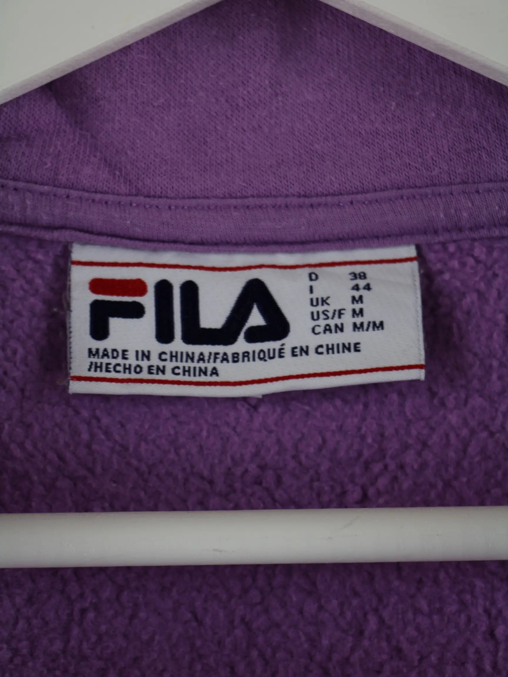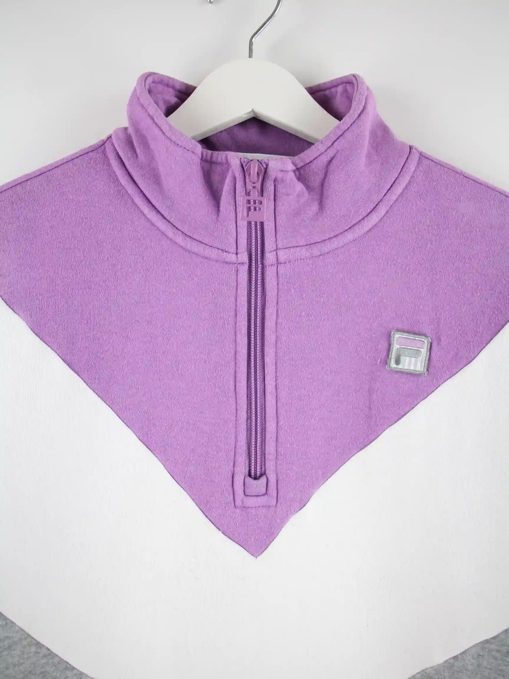 Sweater vom Label Fila mit kurzem Reißverschluß in Größe M. Er ist aus einer Baumwollmischung und in bunten Farben bei uns zu bekommen.