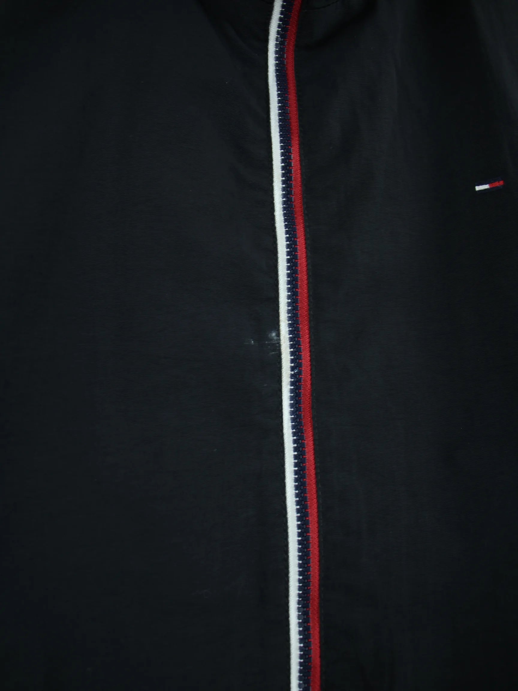 Leichte Jacke vom Label Tommy Hilfiger in Größe L. Sie ist aus Synthetik produziert und in Schwarz vorrätig.