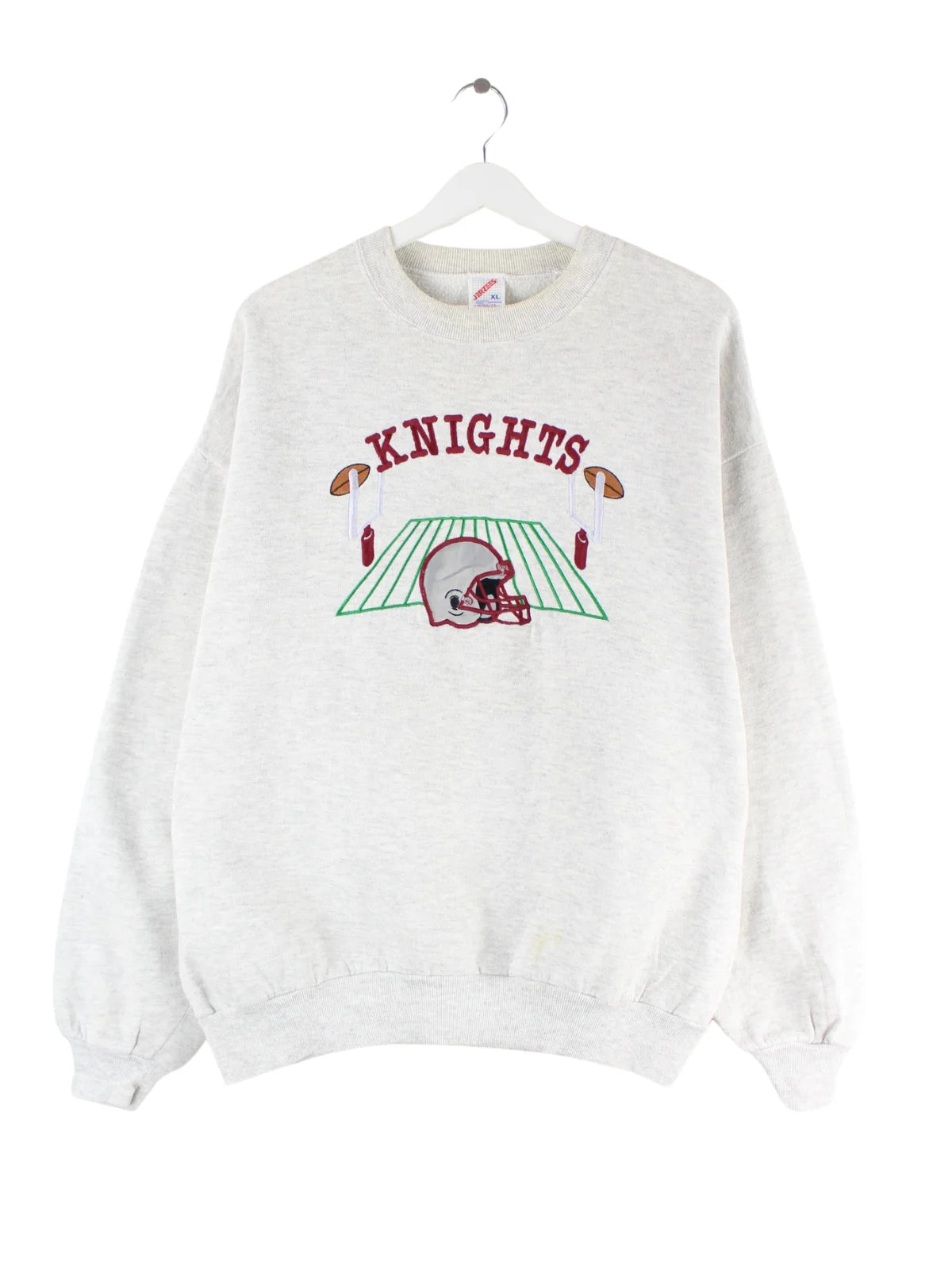 Jerzees 90s Vintage Knights Embroidered Sweater Grau XL