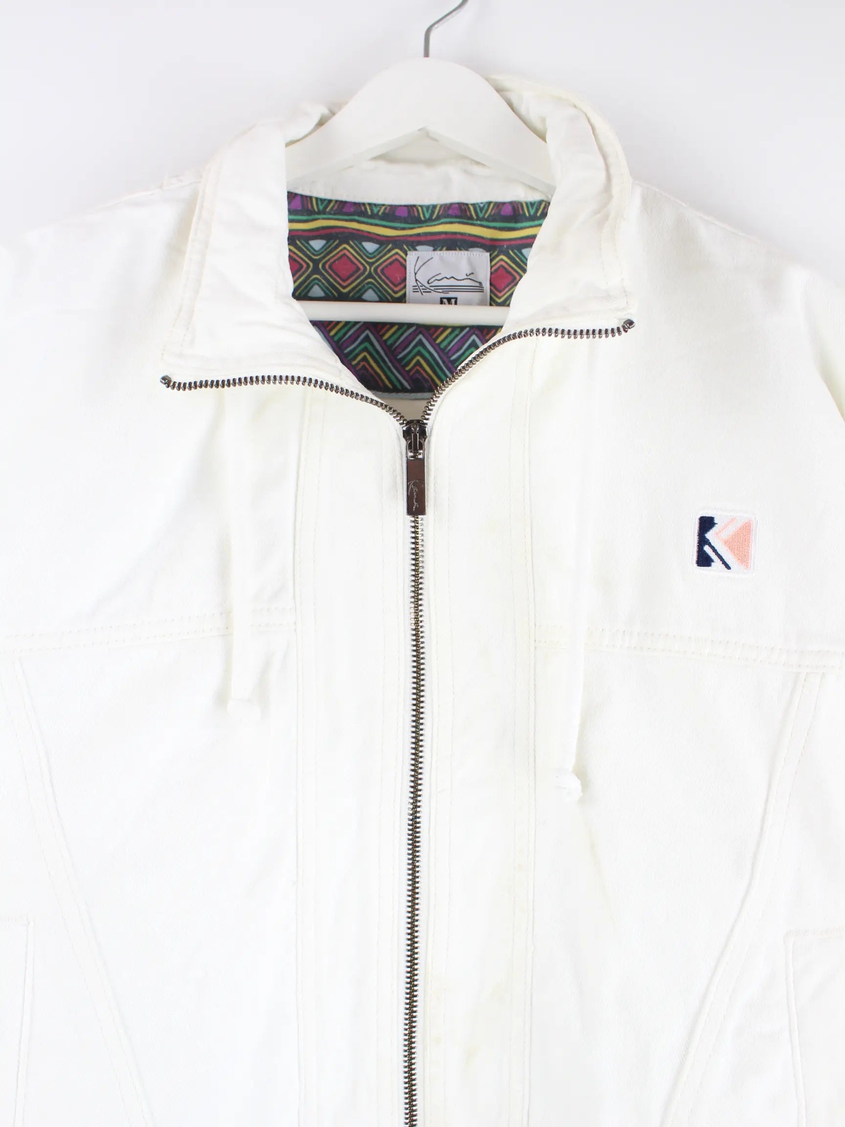 Karl Kani Damen y2k Spellout Jeans Jacke Weiß M