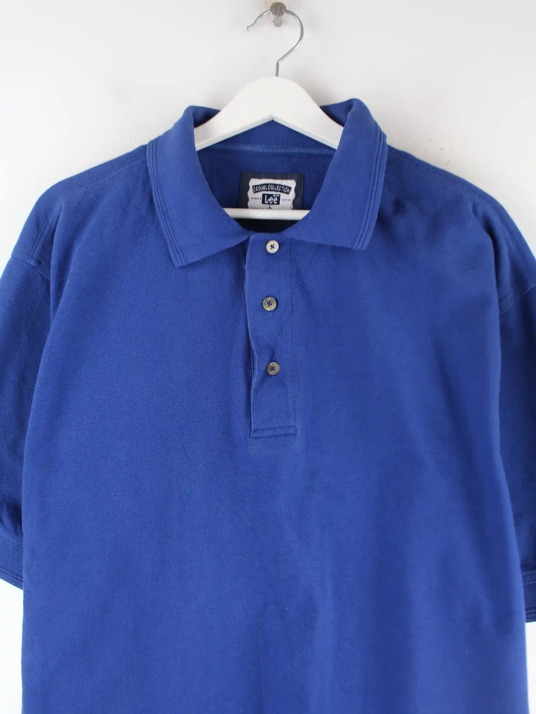 Poloshirt vom Label Lee in Größe L. Es ist aus Baumwolle gefertigt und in Blau in Stock.
