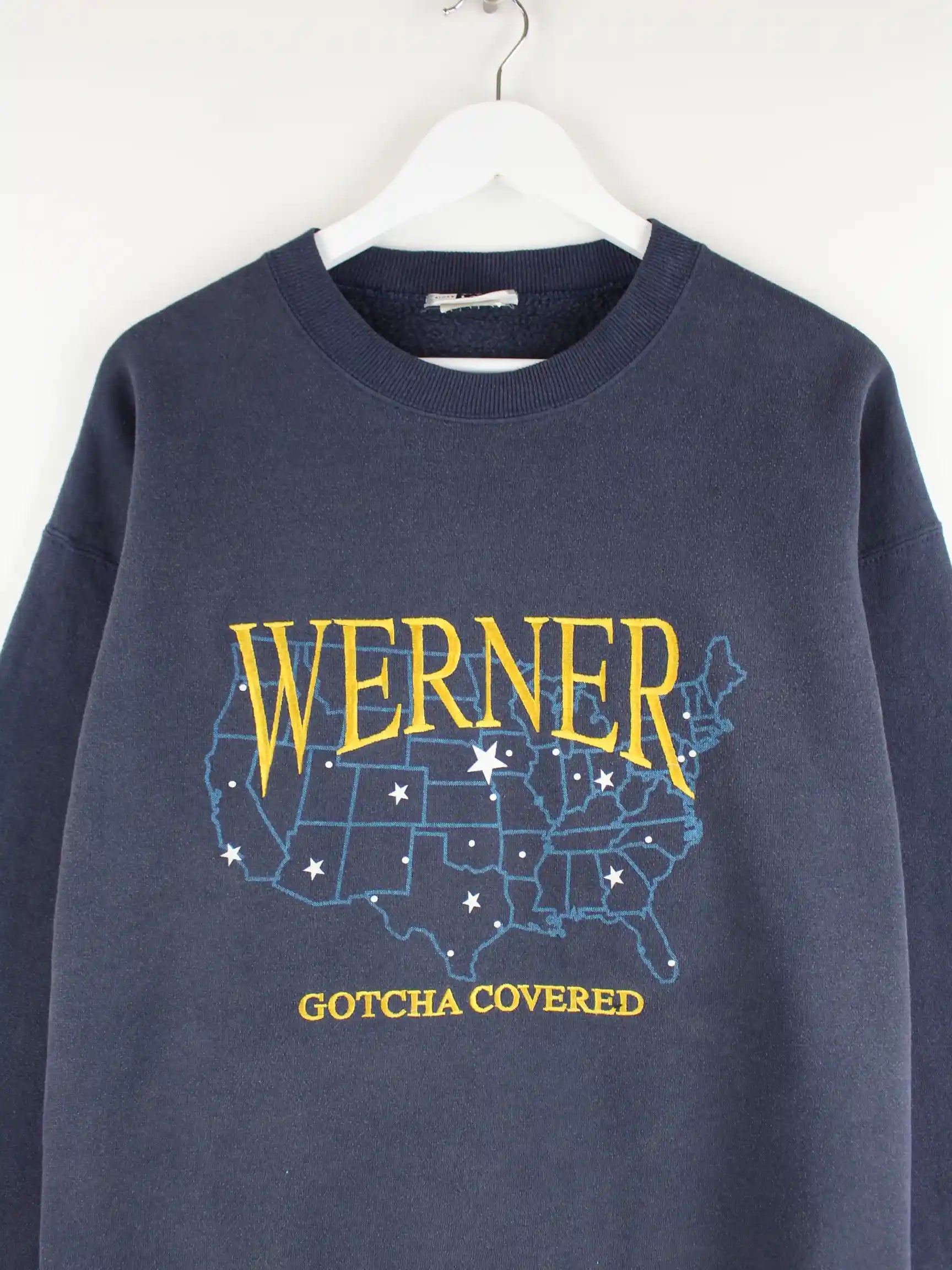 Blauer Sweater des Labels Lee in Größe L. Er ist aus einer Baumwollmischung angefertigt. Den Zustand würden wir als 'In Ordnung' bezeichnen (vergl. Bilder).Mit chiquem USA Print.