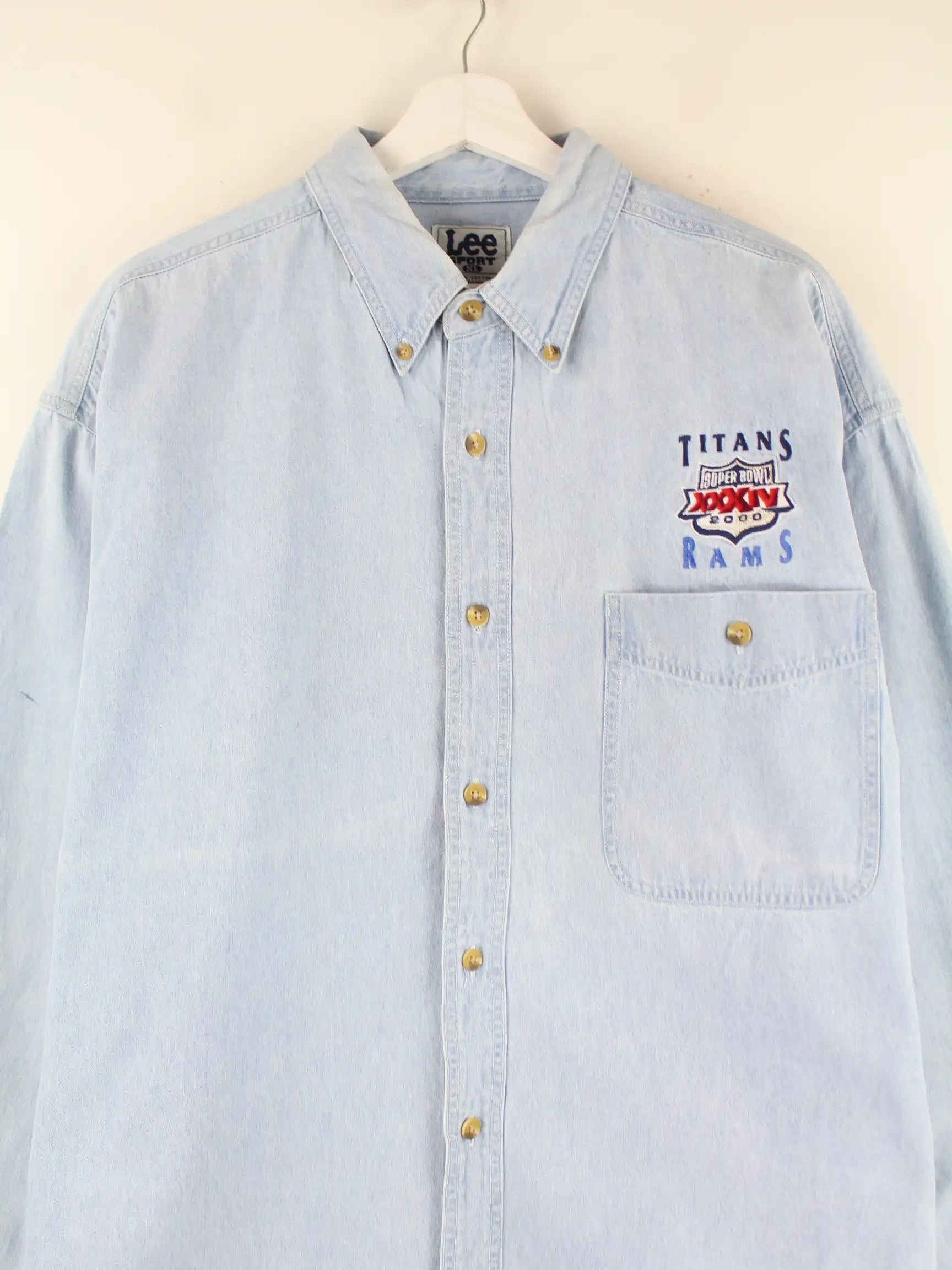 Lee 2000 Super Bowl Titans Rams Embroidered Jeans Hemd Blau XL