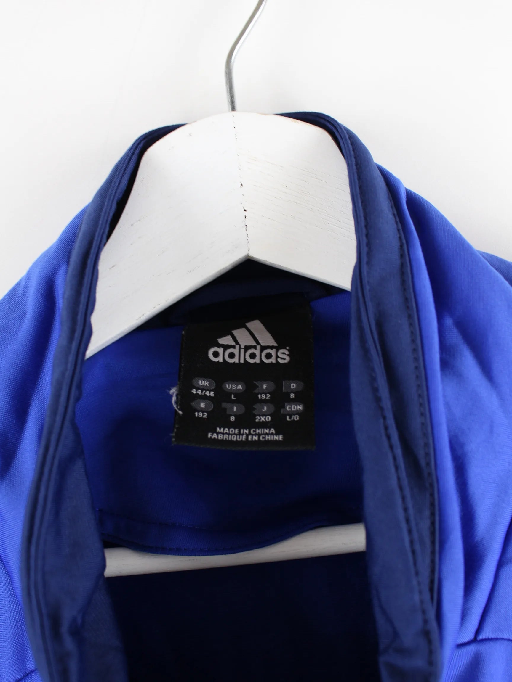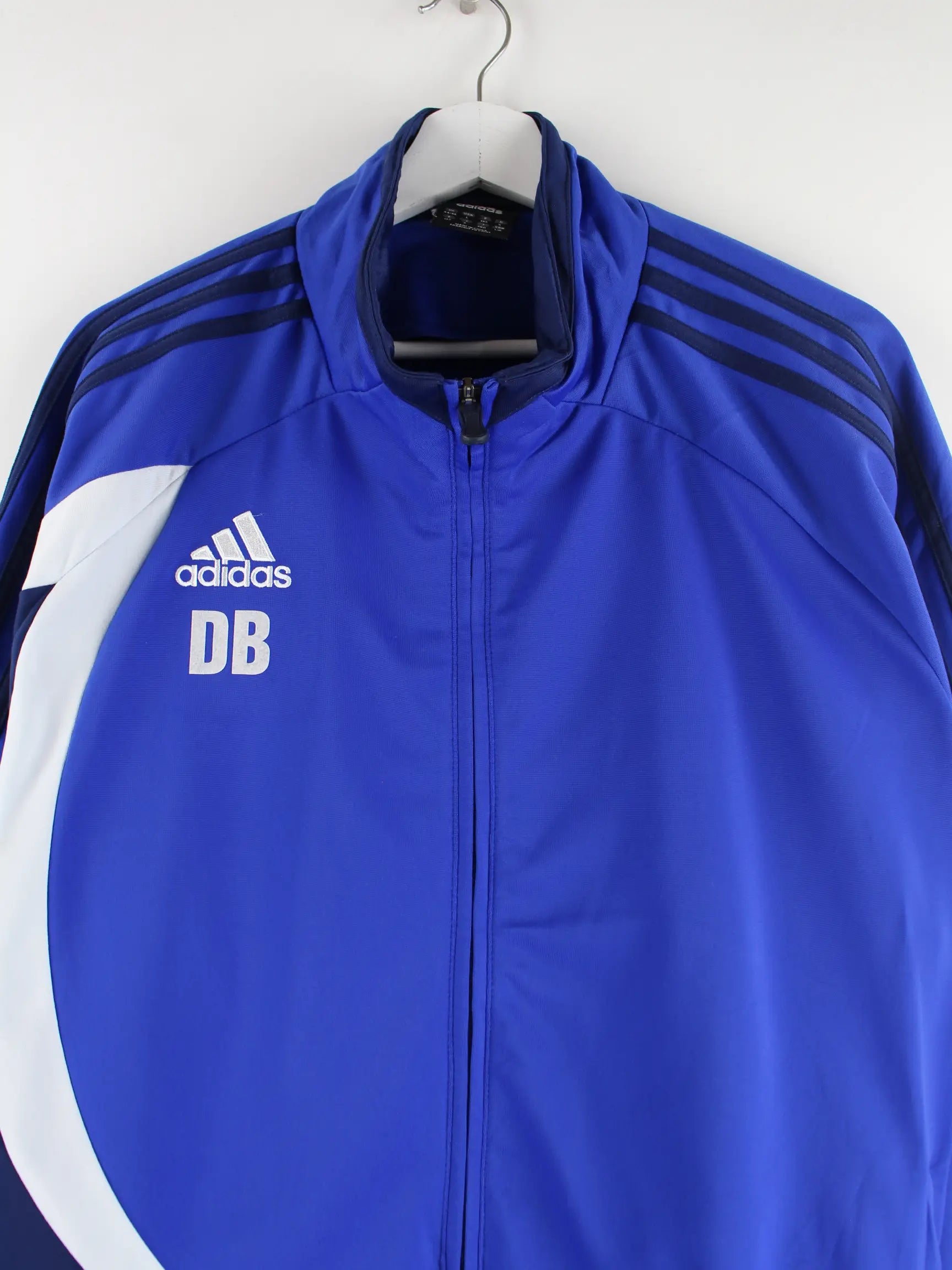 Trainingsjacke des Labels Adidas in Größe XXL. Sie ist aus Synthetik und in Blau zu bekommen. Mit tollem 3-Stripes Print.