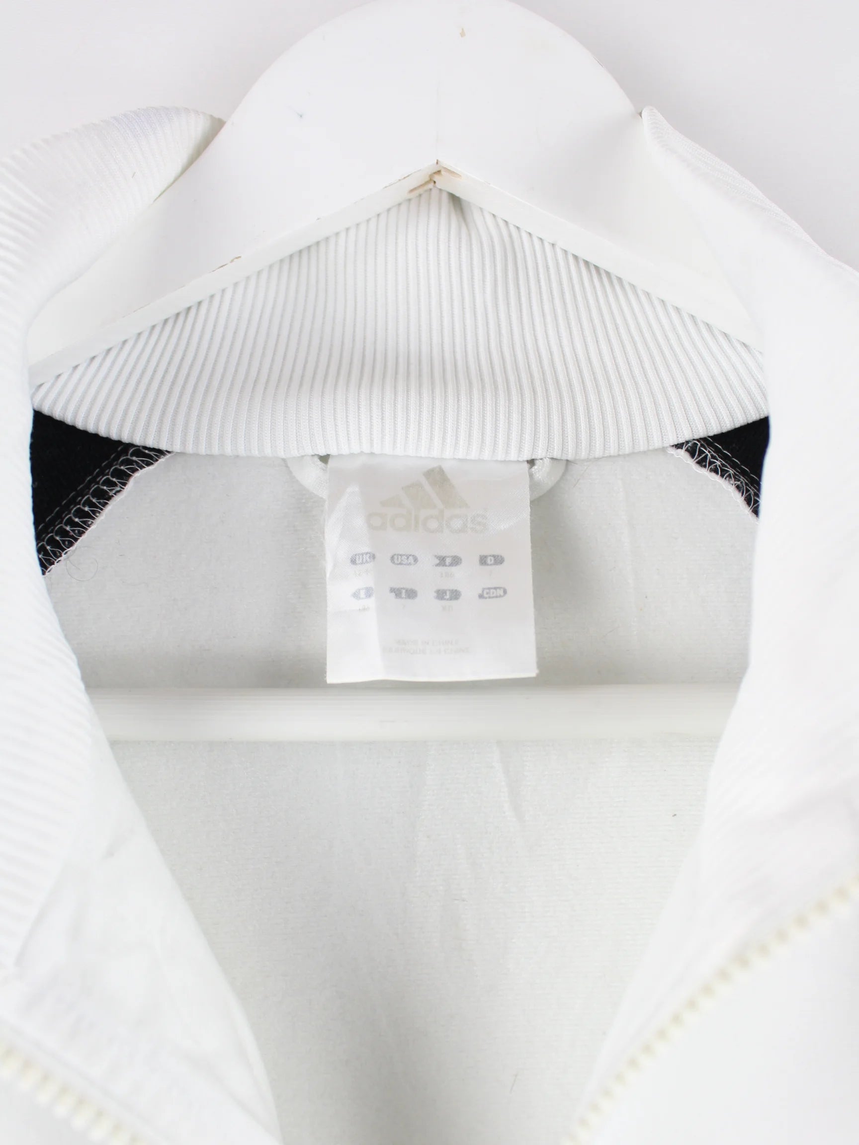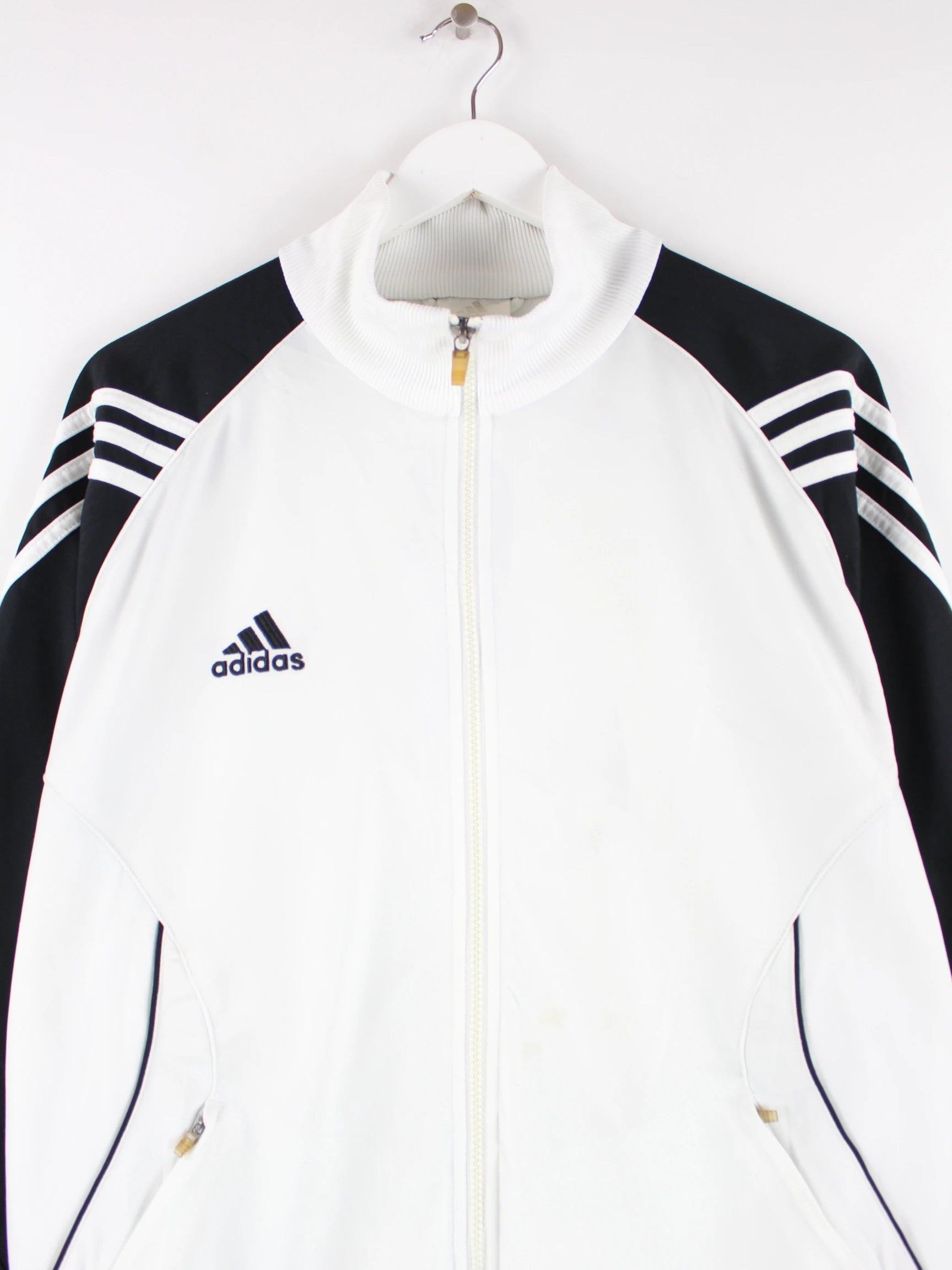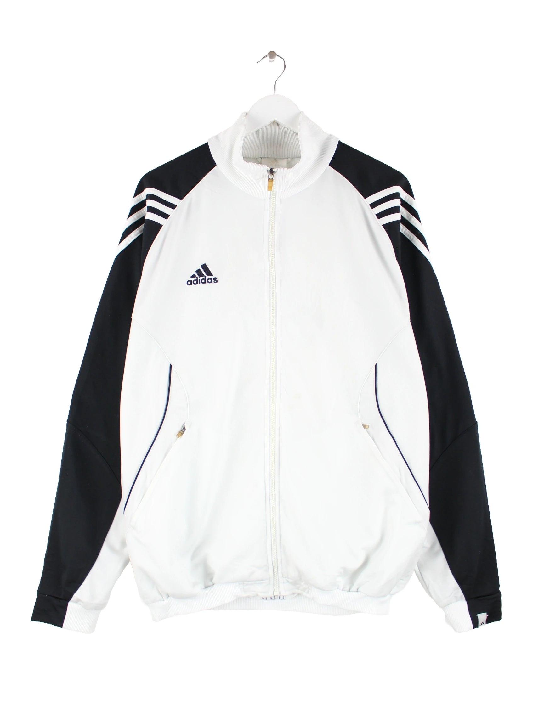 Weiße Trainingsjacke von Adidas in Größe XXL. Sie ist aus Synthetik angefertigt und in gutem Zustand zu bekommen.
