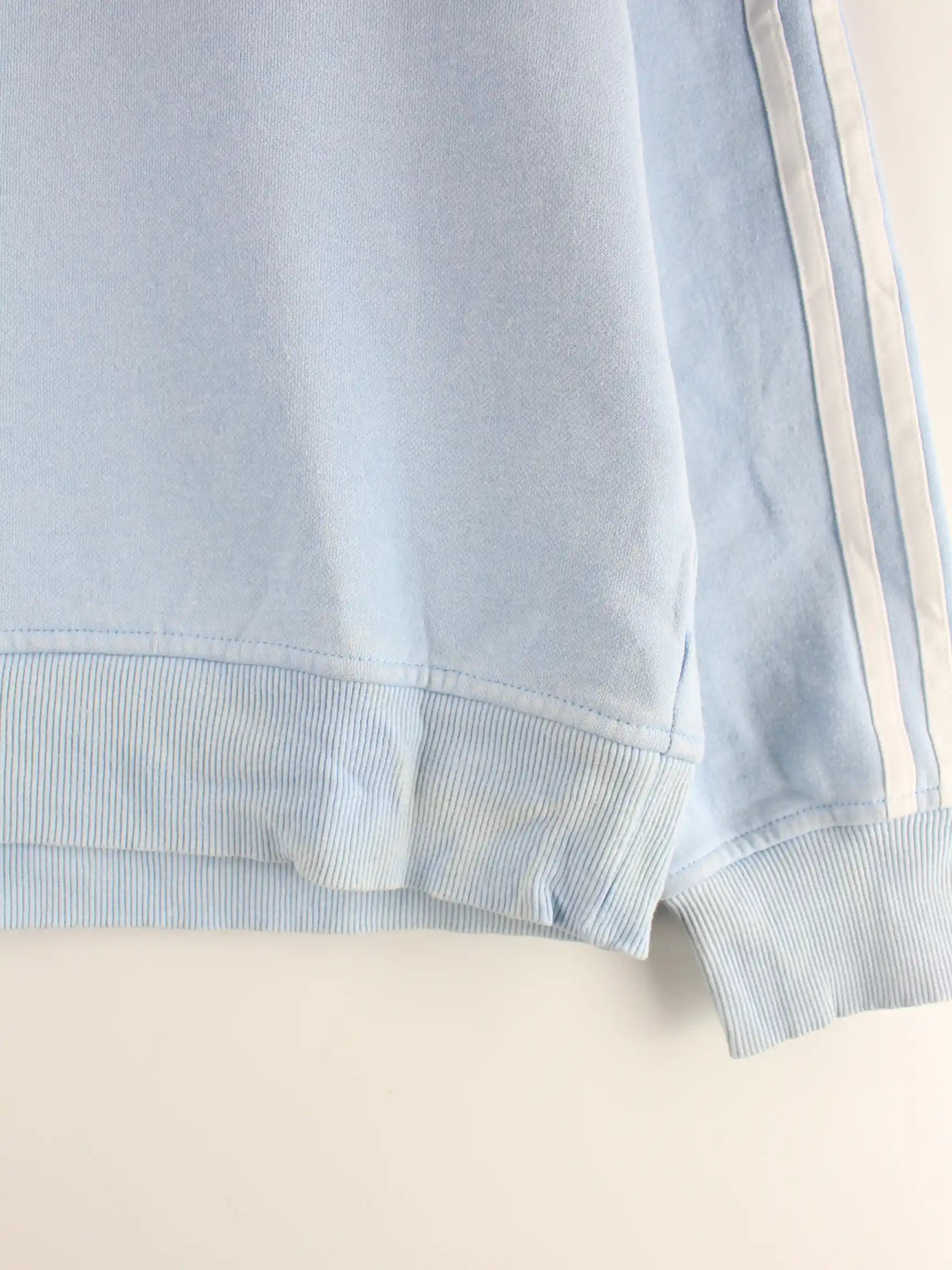 Sweater des Labels Adidas in Größe M. Er ist aus einer Baumwollmischung produziert und in Blau bei uns vorrätig.