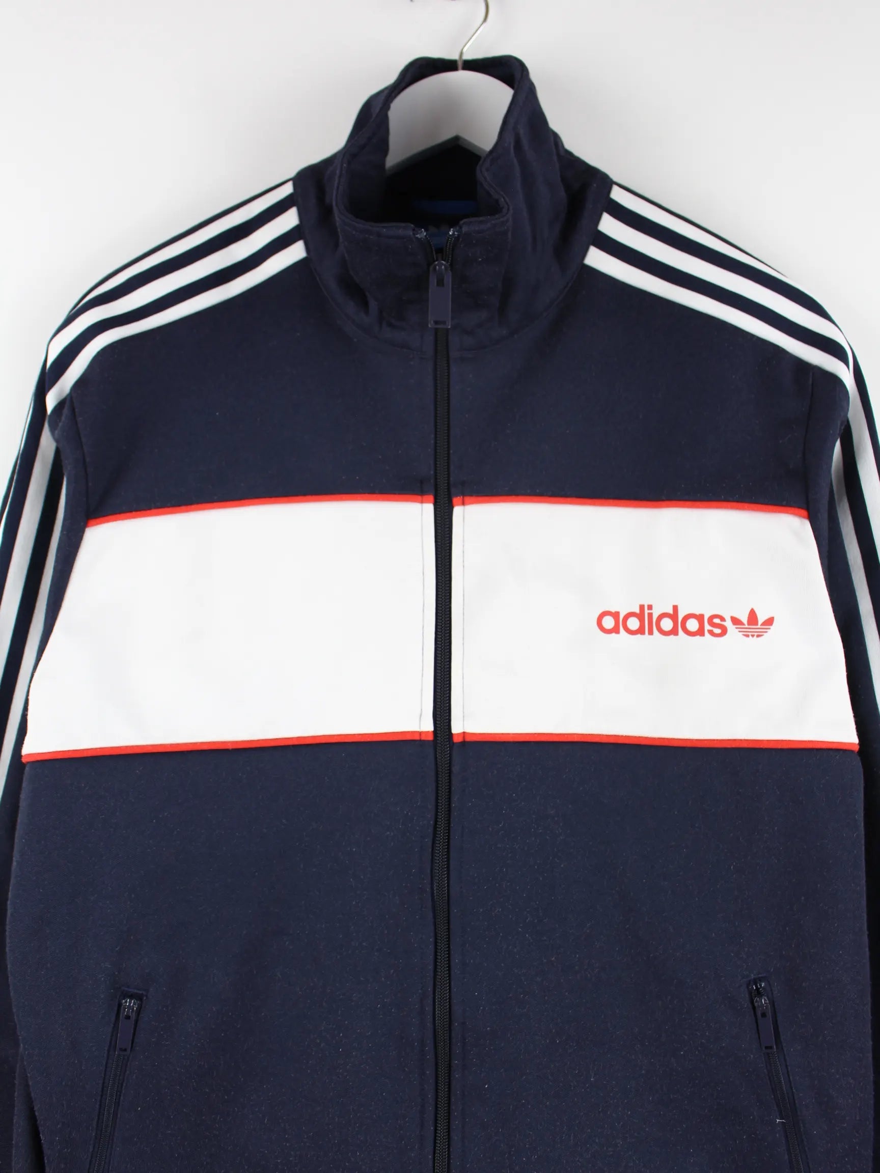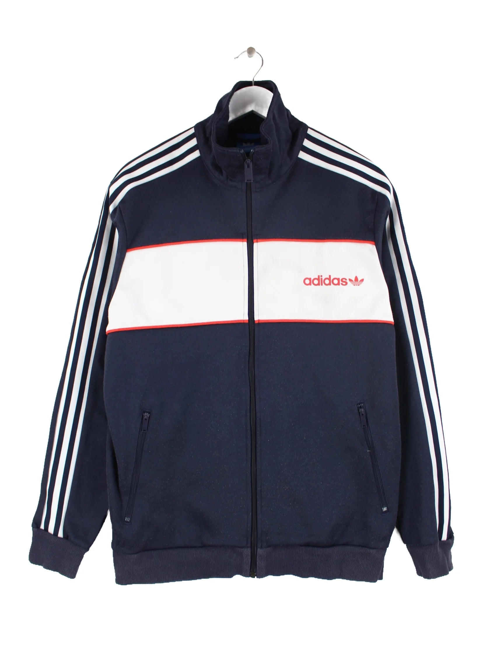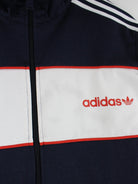 Trainingsjacke vom Brand Adidas in Größe L. Sie ist aus Synthetik gemacht und in Schwarz bei uns vorrätig.