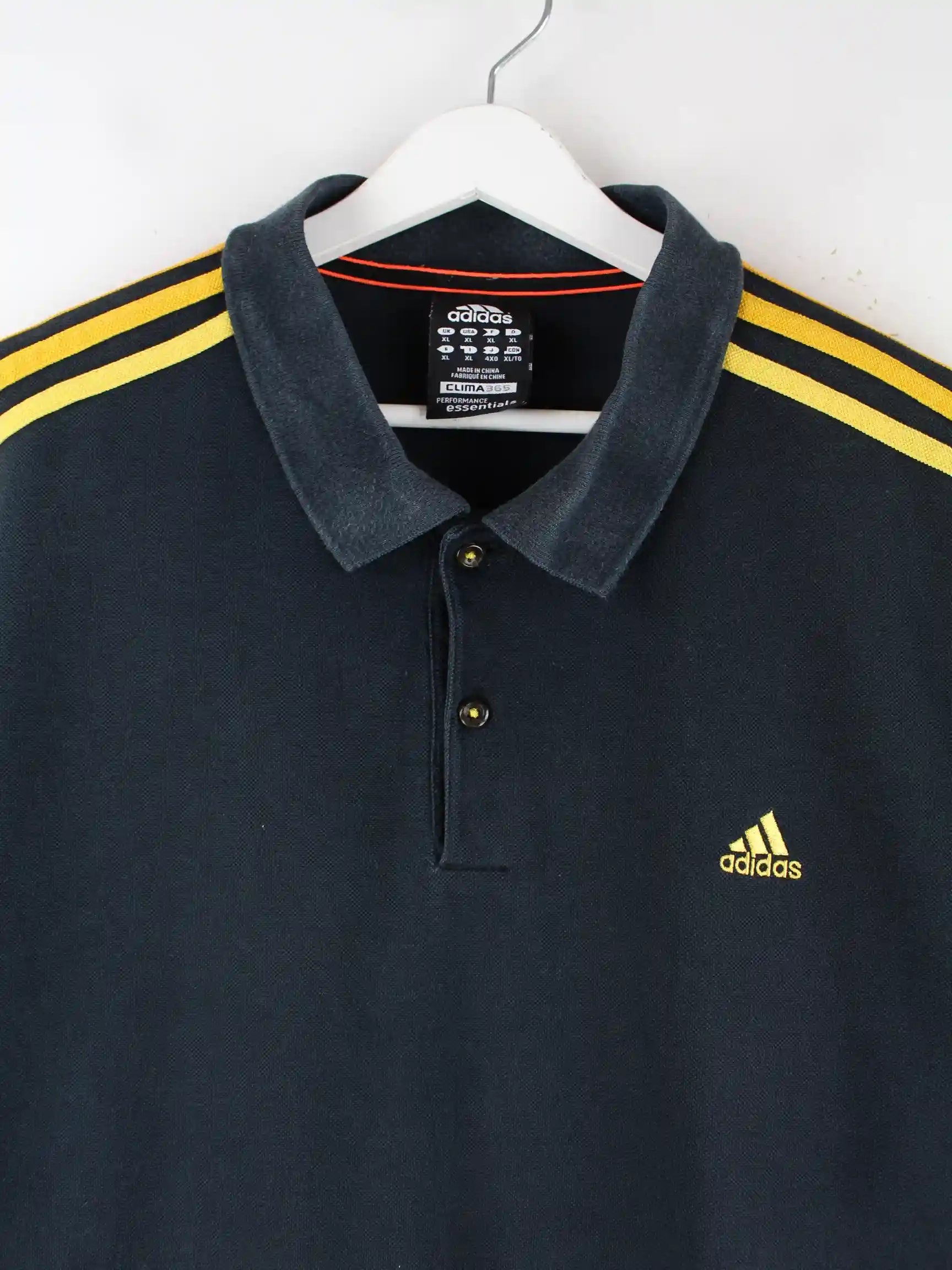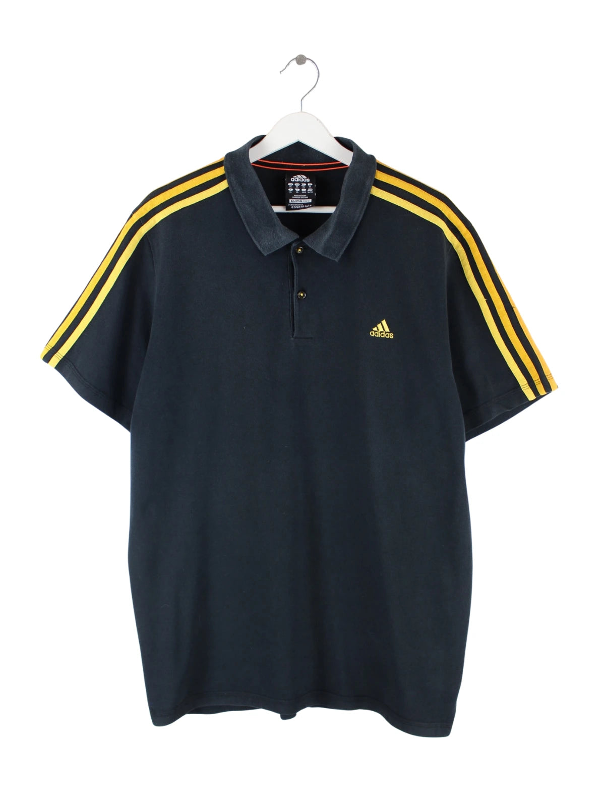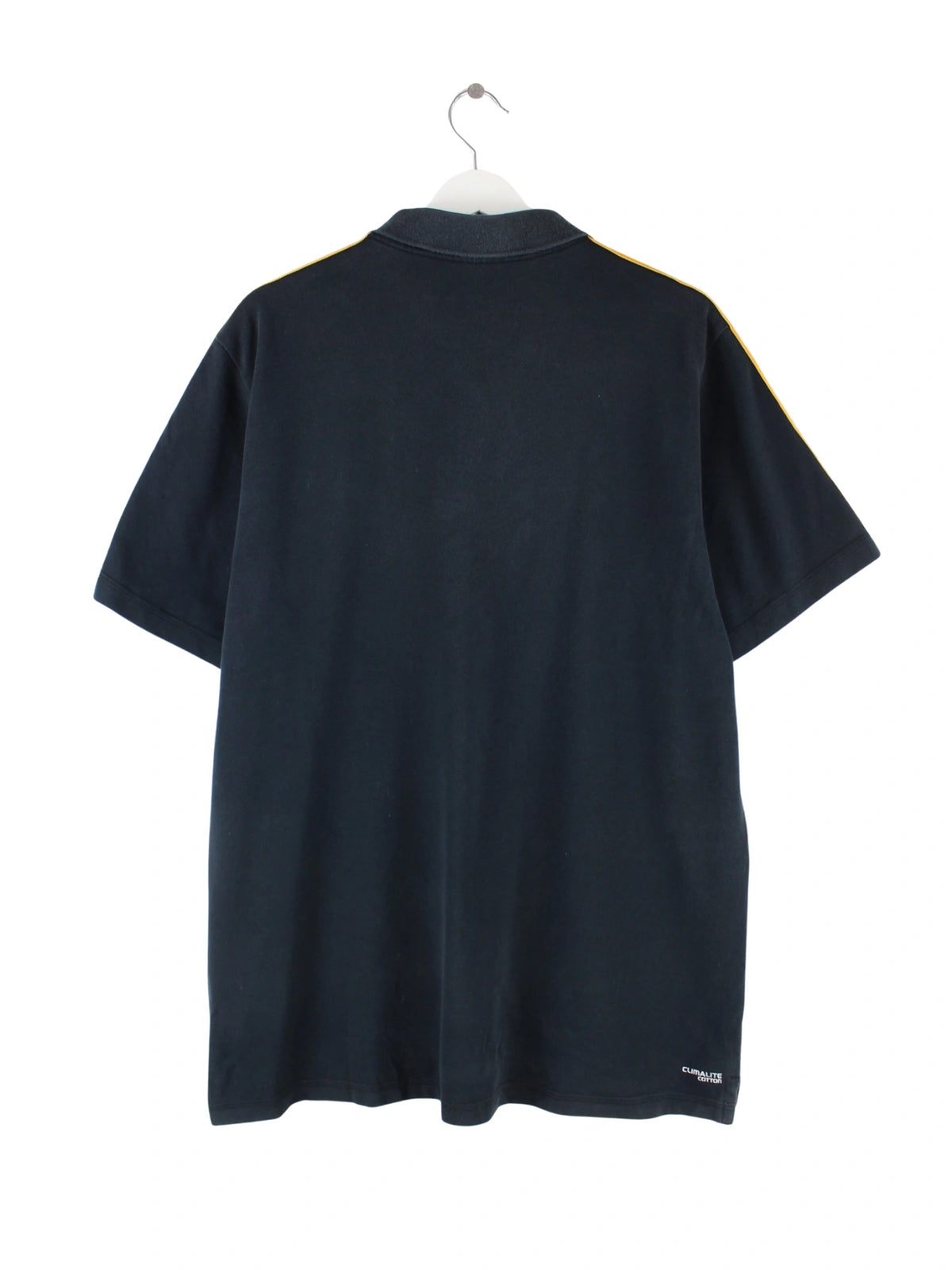 Poloshirt des Labels Adidas in Größe XL. Es ist aus Baumwolle und in Schwarz im Bestand.