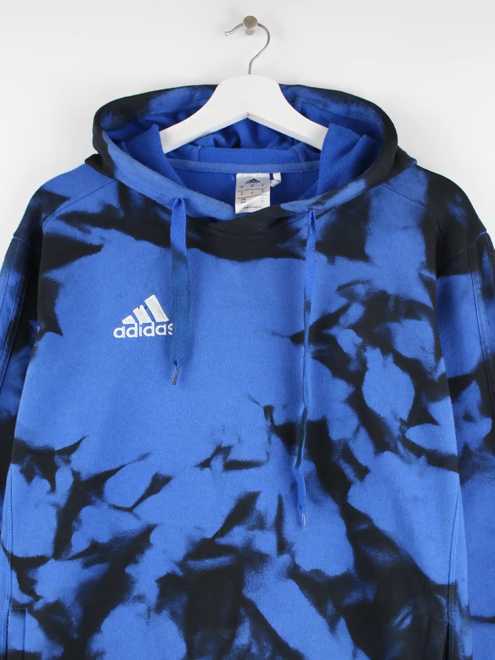 Hoodie vom Label Adidas in Größe M. Er ist aus einer Baumwollmischung gefertigt und in Blau bei uns vorrätig.