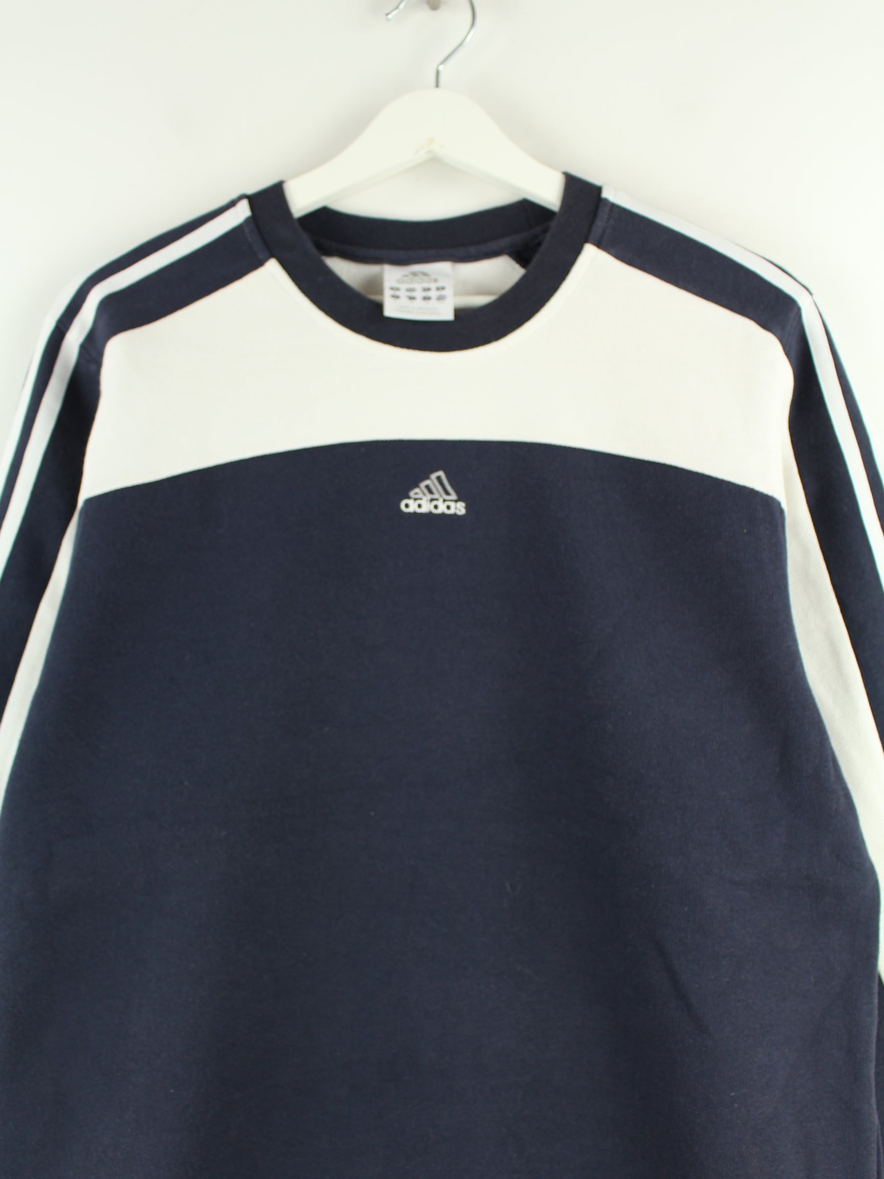 Sweater from the brand Adidas with embroidery in size M from the early 2000s. It is made of a cotton blend and is available in blue.