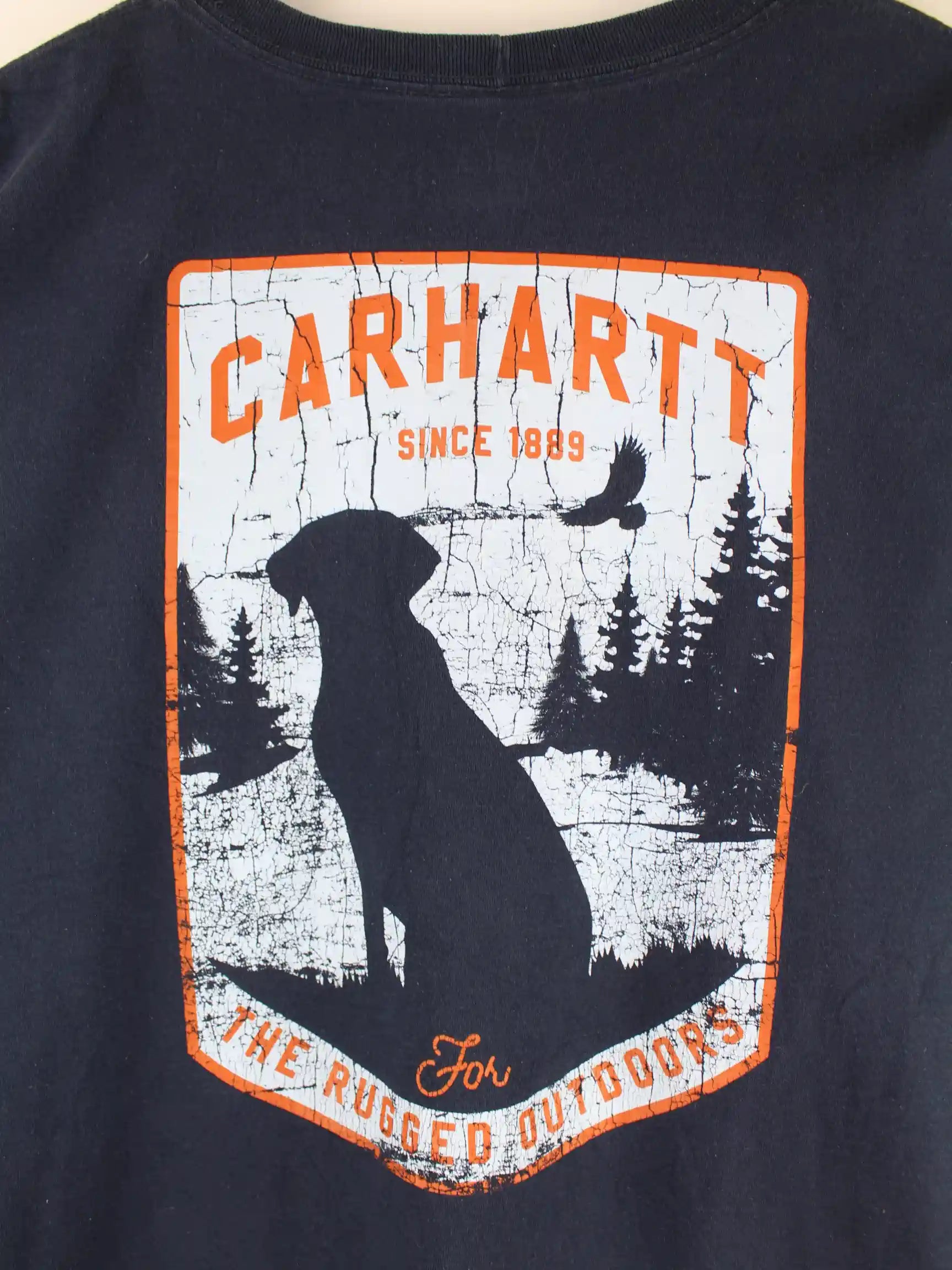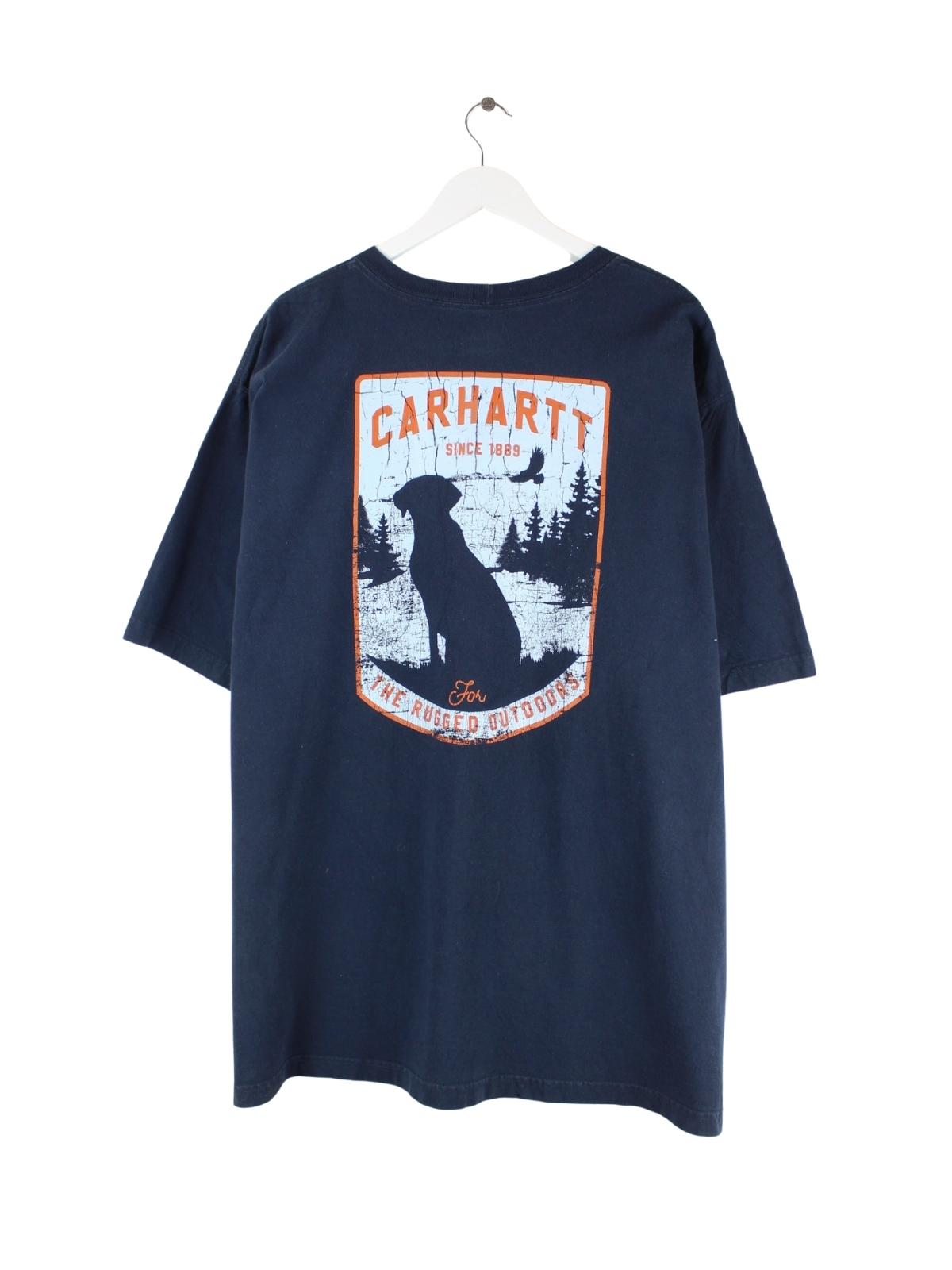 Blaues T-Shirt der Marke Carhartt in Größe XXL. Es ist aus Baumwolle und in gutem Zustand vorrätig. Mit schickem Pocket Print.