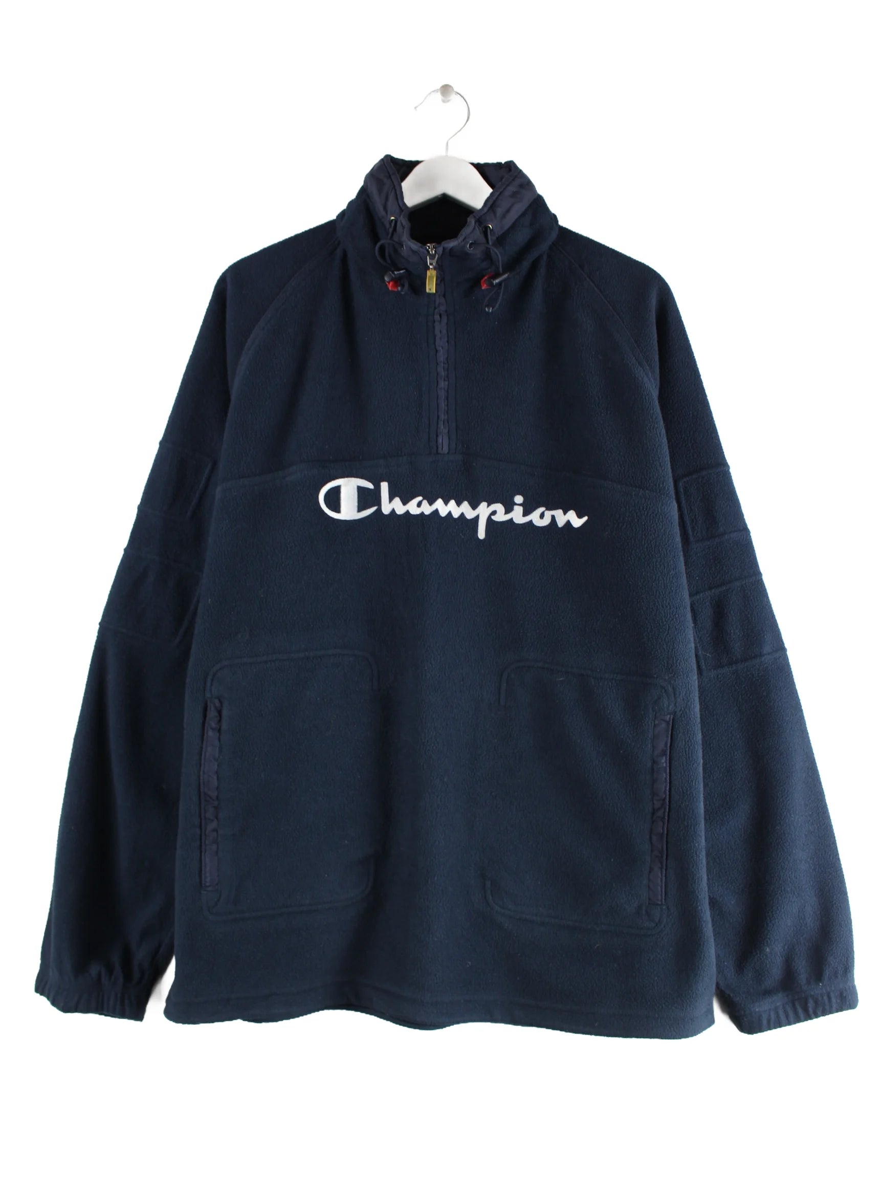 Champion Big Logo Half Zip Fleece Jacke Blau XL