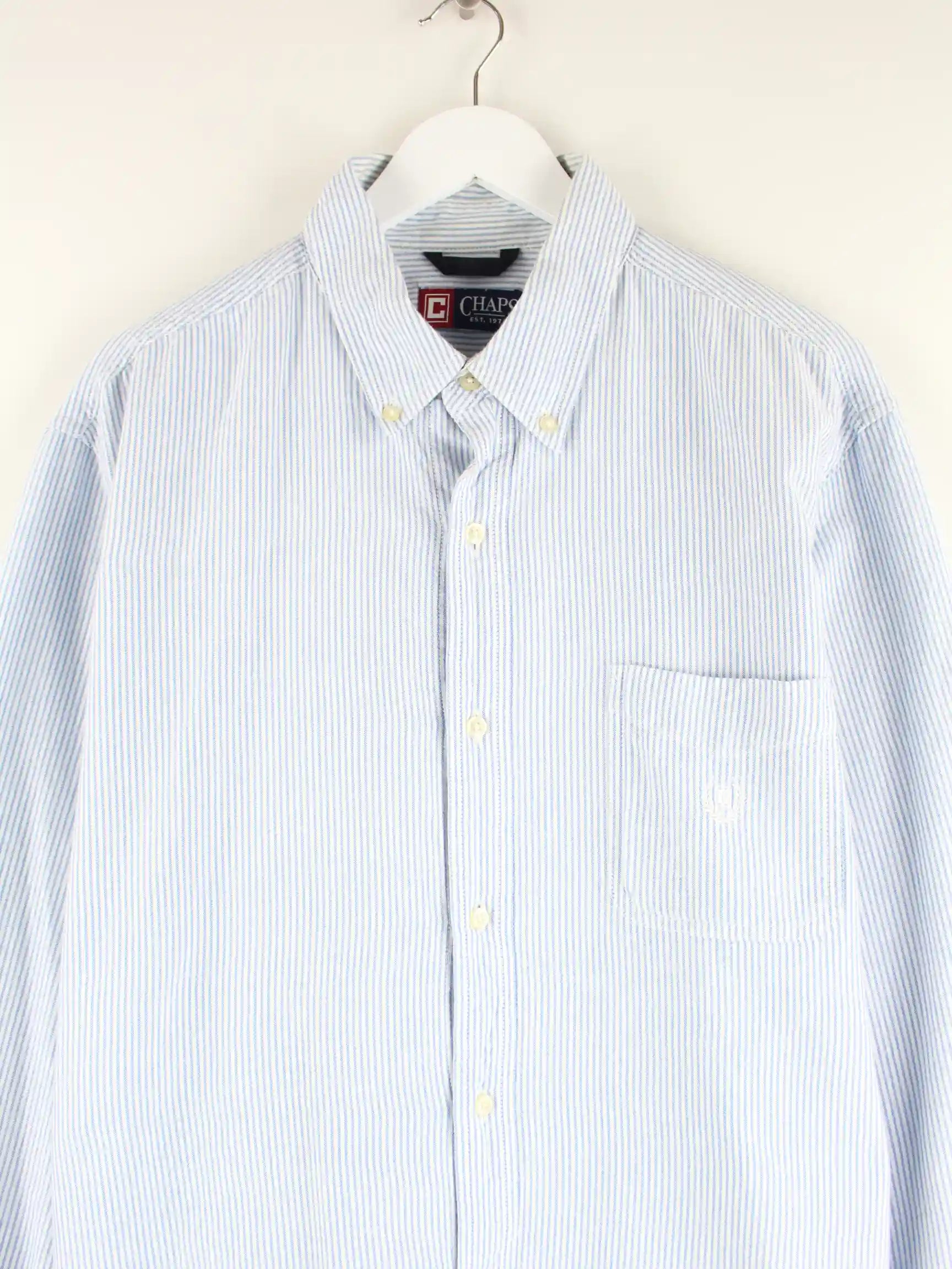Blaues Hemd aus dem Hause Chaps by Ralph Lauren in Größe XL. Es ist aus Baumwolle produziert und in sehr gutem Zustand bei uns vorrätig.