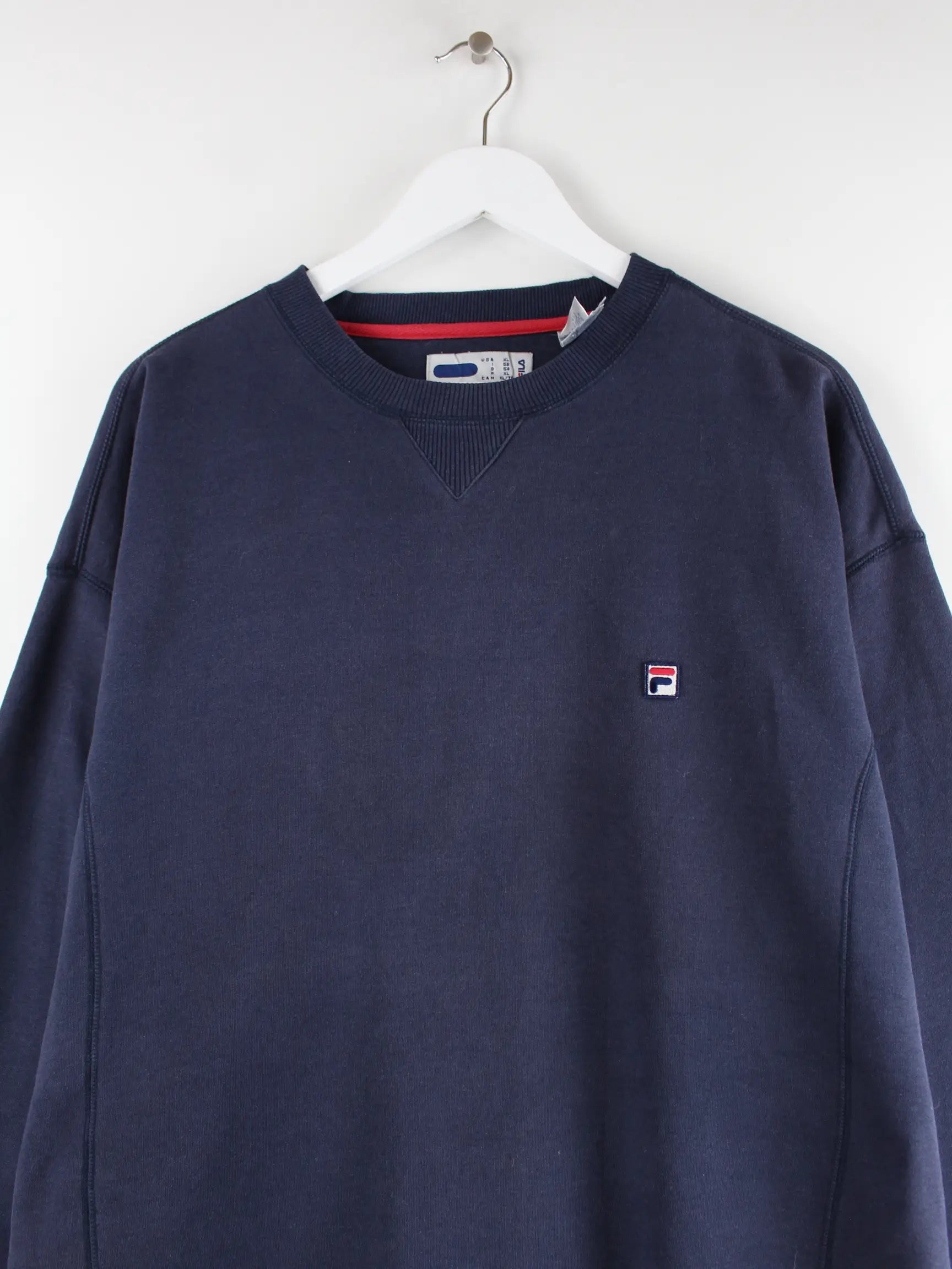 Blauer Sweater des Labels Fila in Größe XL. Er ist aus einer Baumwollmischung und in gutem Zustand vorrätig.
