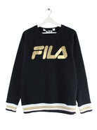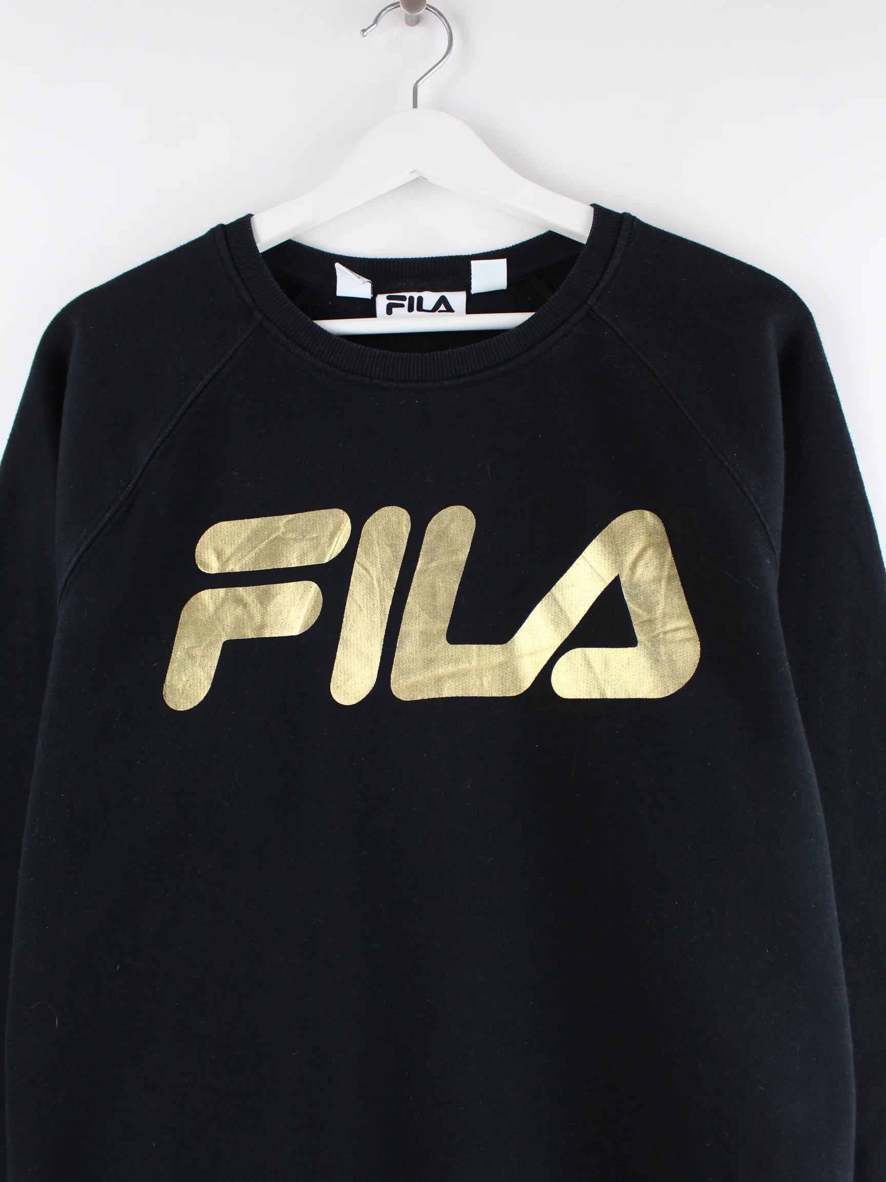 Sweater vom Label Fila in Größe M. Er ist aus einer Baumwollmischung hergestellt und in Schwarz bei uns zu bekommen. Mit schönem Logo Print.