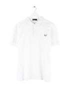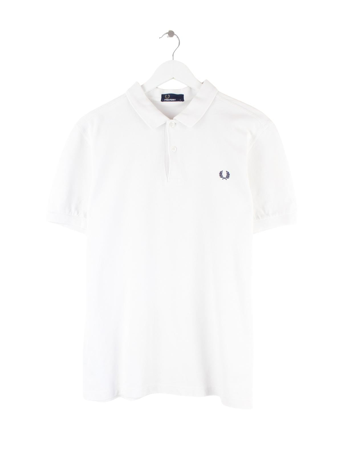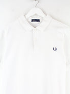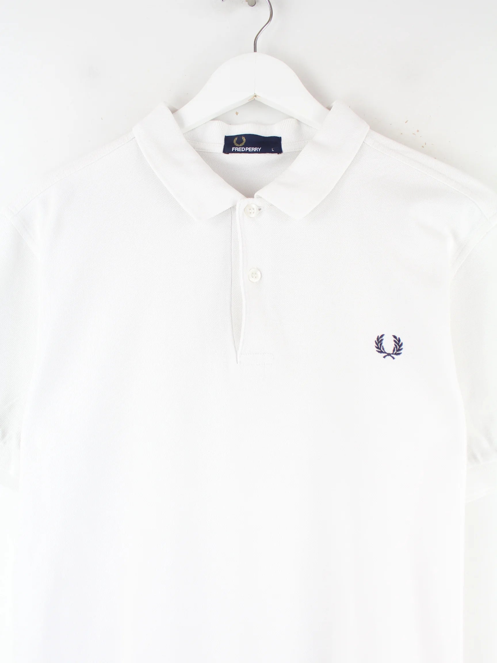 Weißes Poloshirt aus dem Hause Fred Perry in Größe L. Es ist aus Baumwolle produziert und in sehr gutem Zustand in Stock.