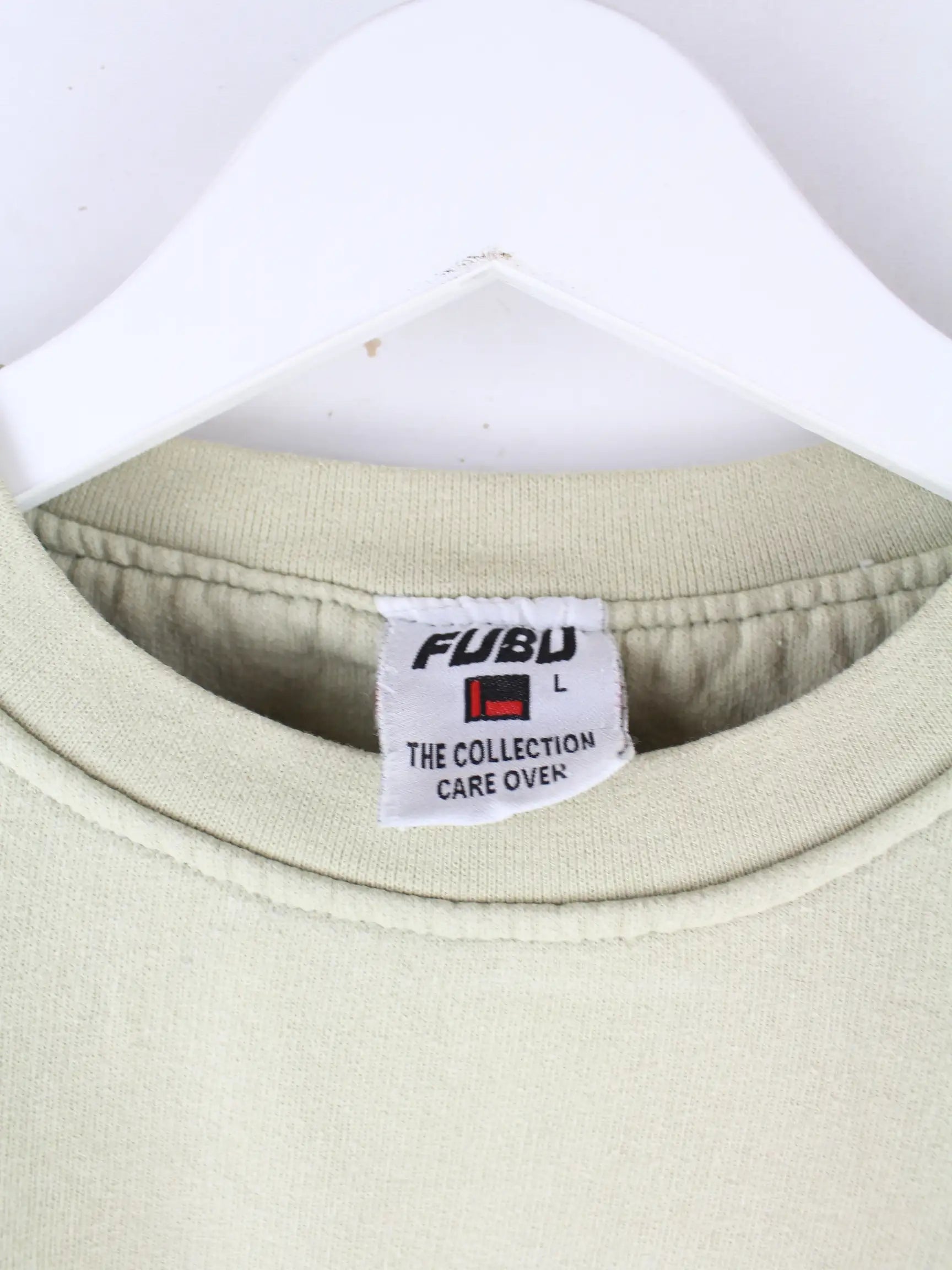 Sweater der Brand Fubu mit gesticktem Logo in Größe XS. Er ist aus einer Baumwollmischung produziert und in Grün in Stock.