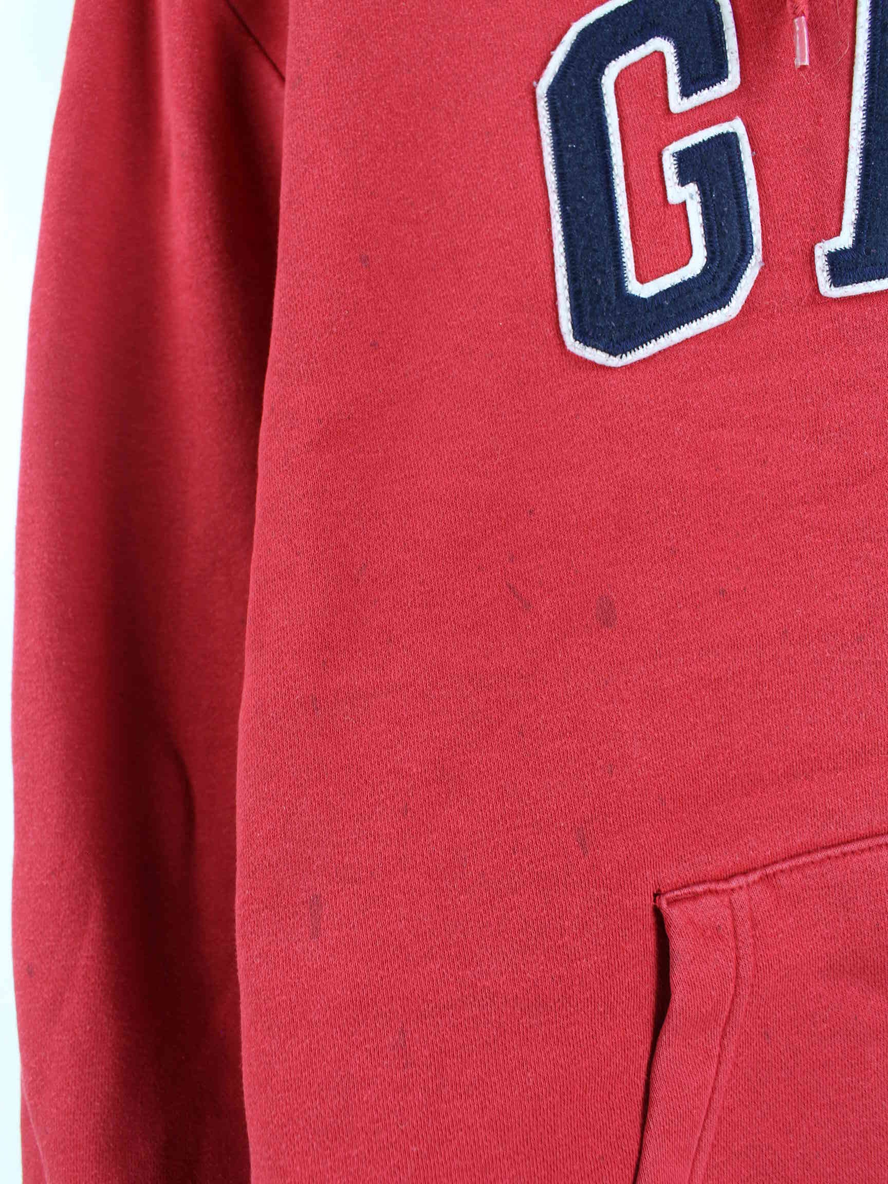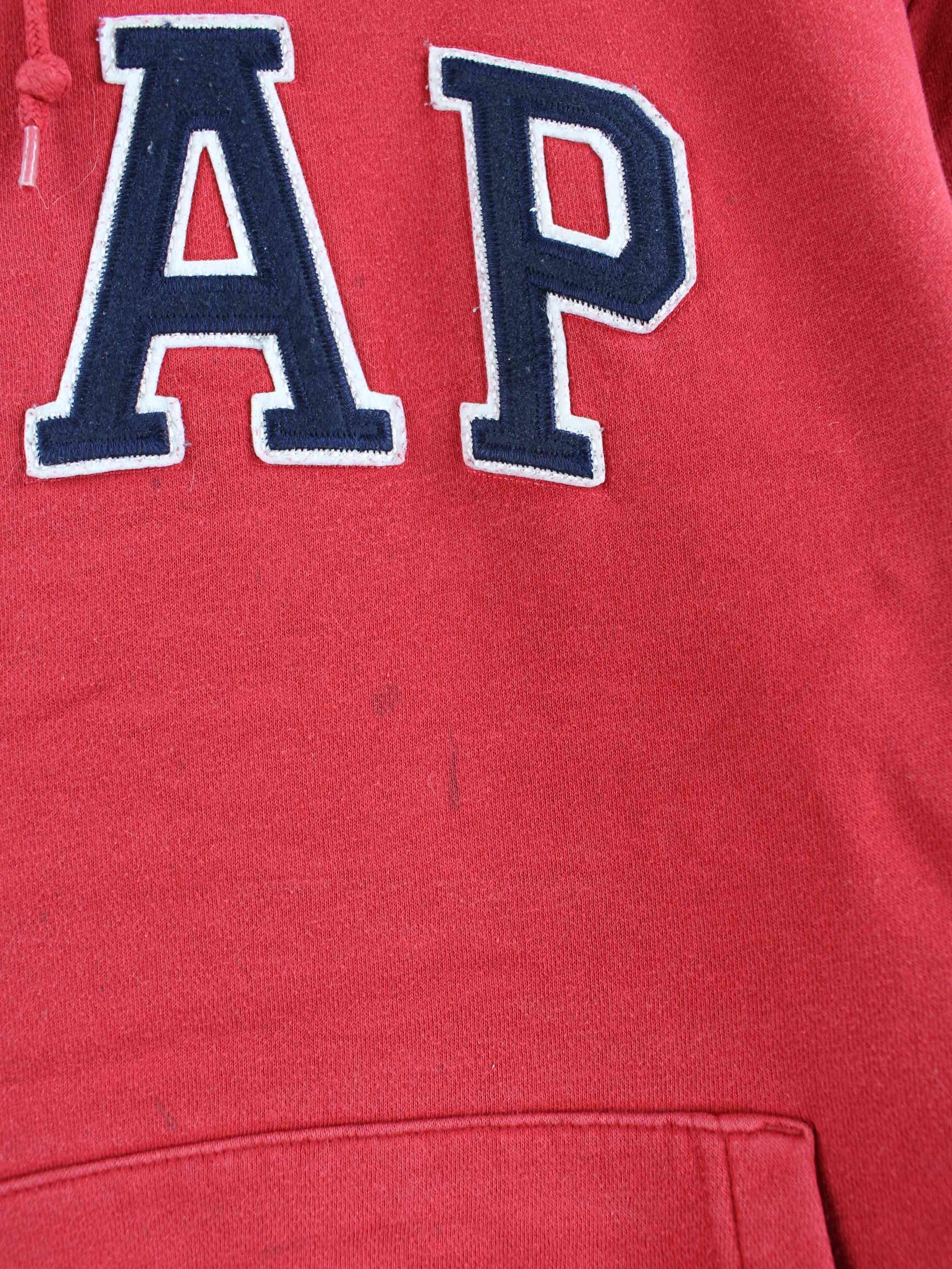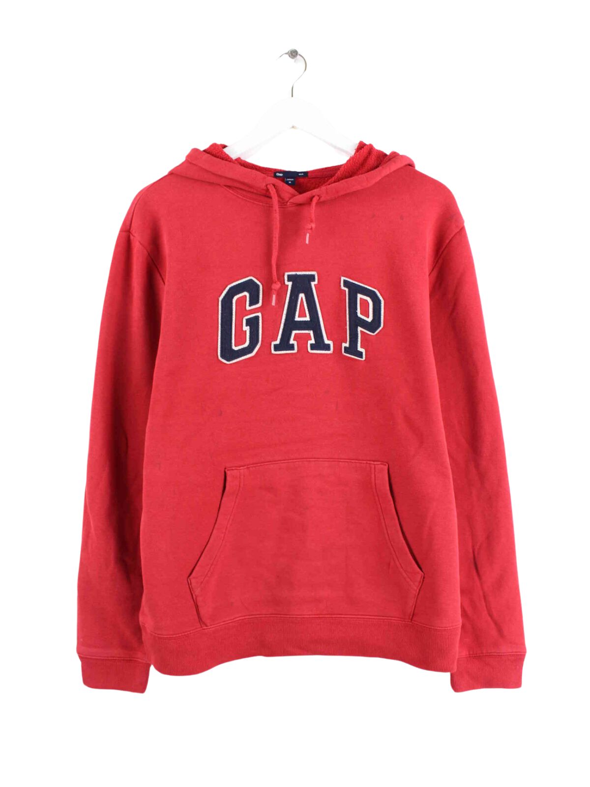 Hoodie from the GAP brand with embroidered patterns in size M. It is made from a cotton blend and is available in red.