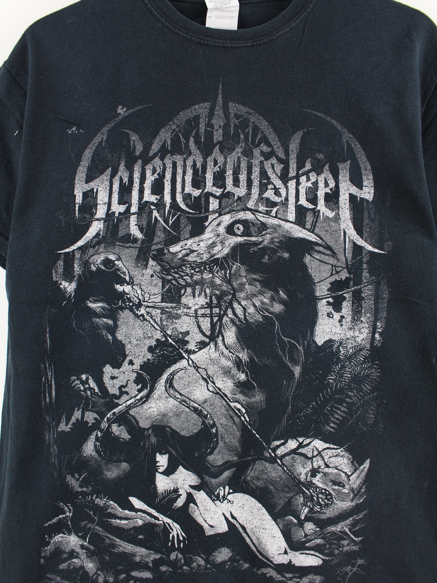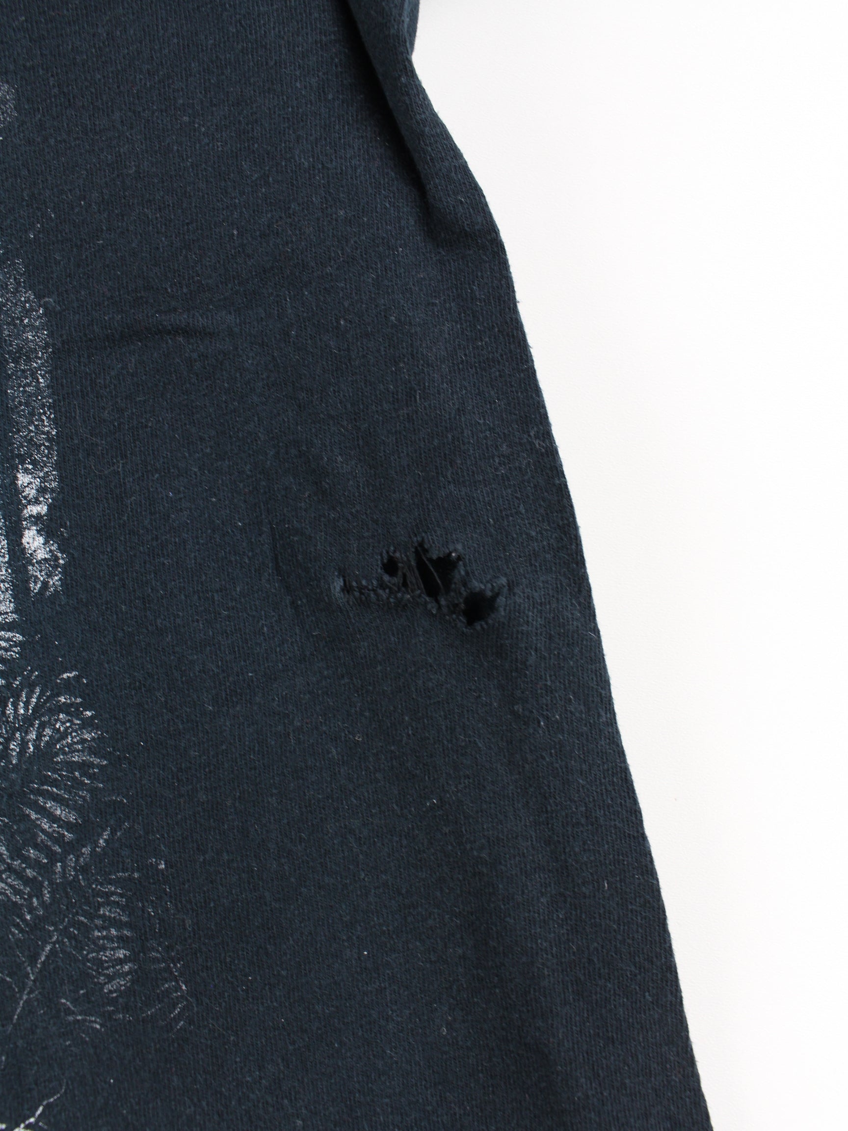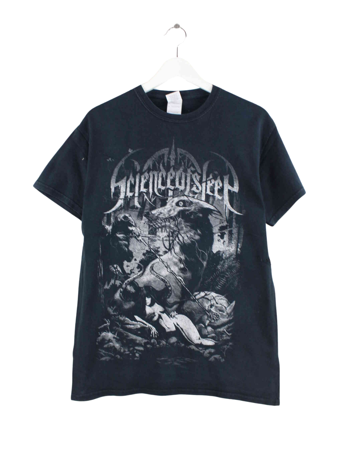 Black t-shirt from the Gildan label in size M. It is made of cotton. We would describe the condition as 'fine' (see pictures).With rare crazy print.