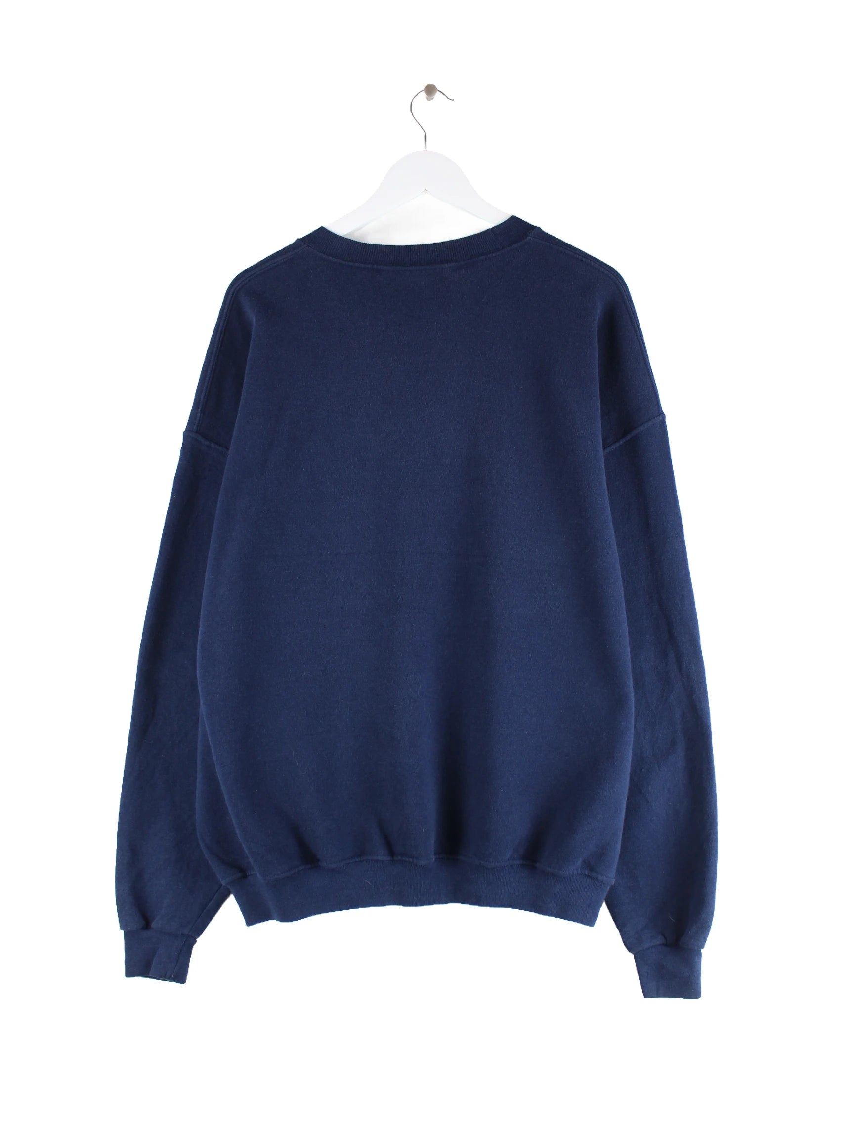 Blauer Sweater vom Brand Jerzees in Größe XL. Er ist aus einer Baumwollmischung und in sehr gutem Zustand im Bestand. Mit chiquem Bowl Print.