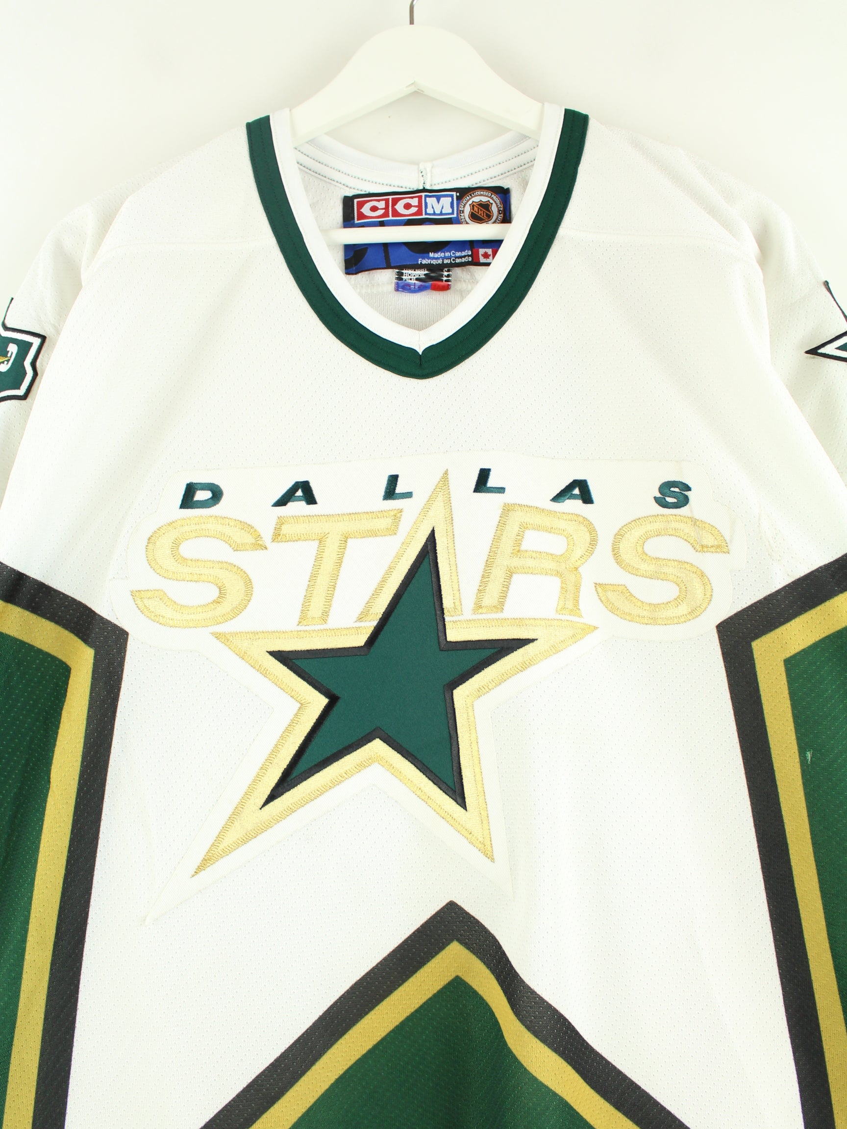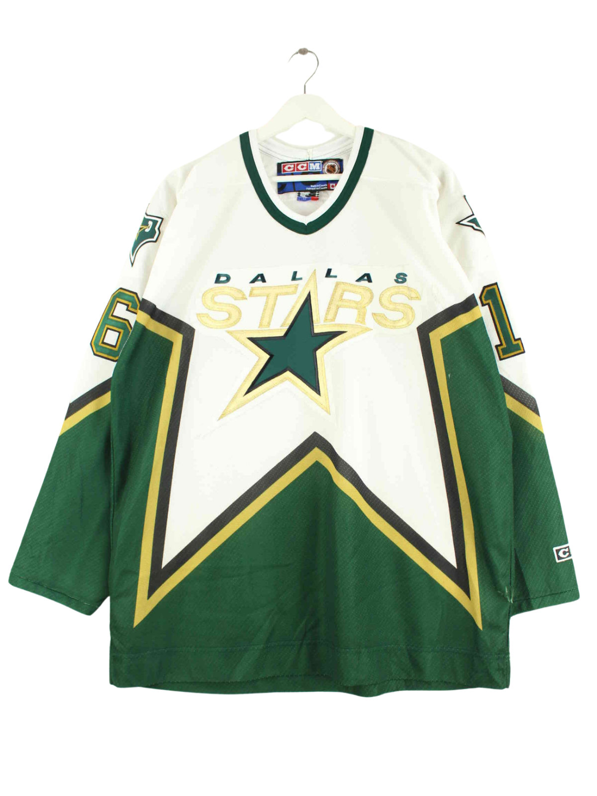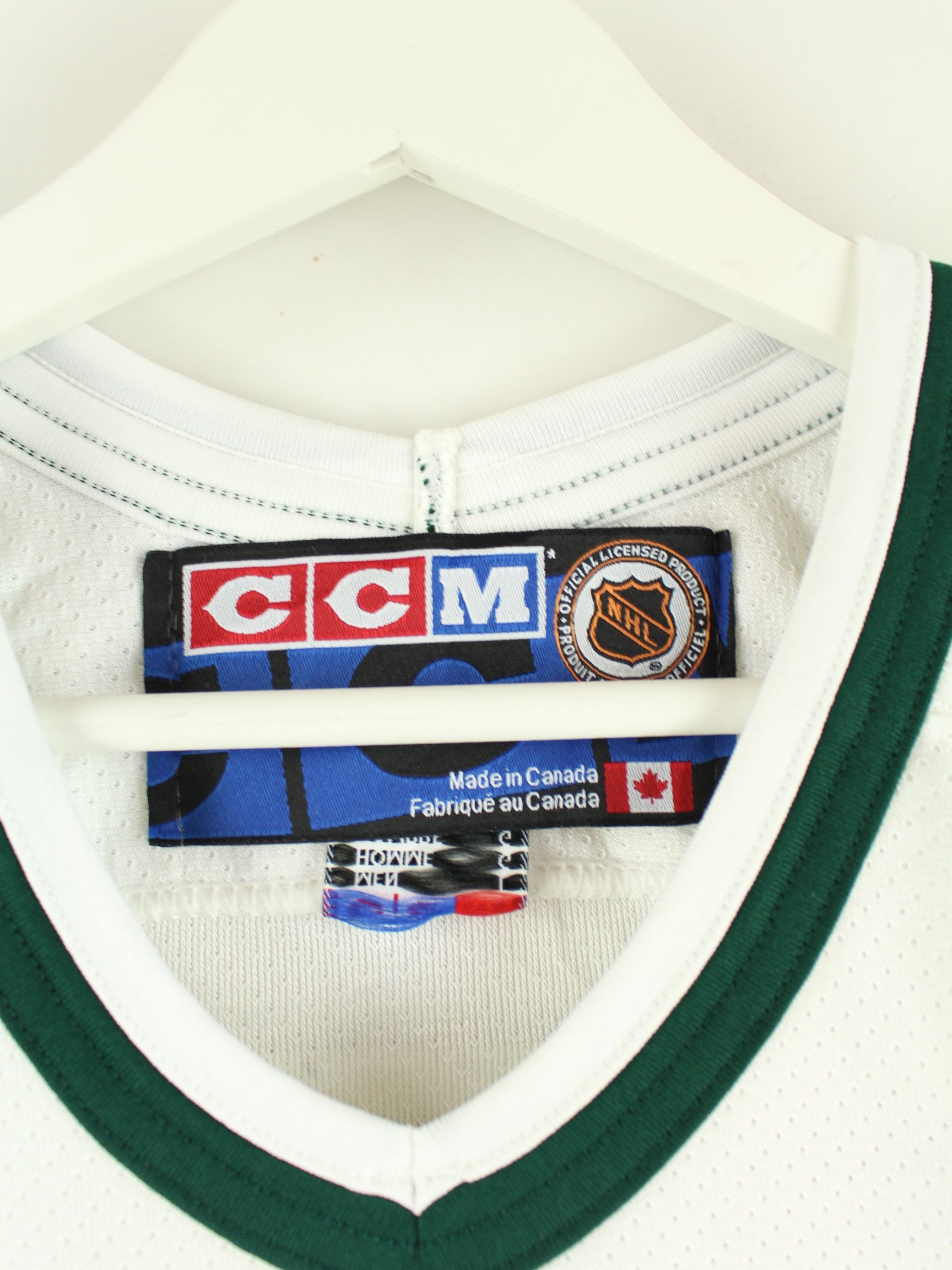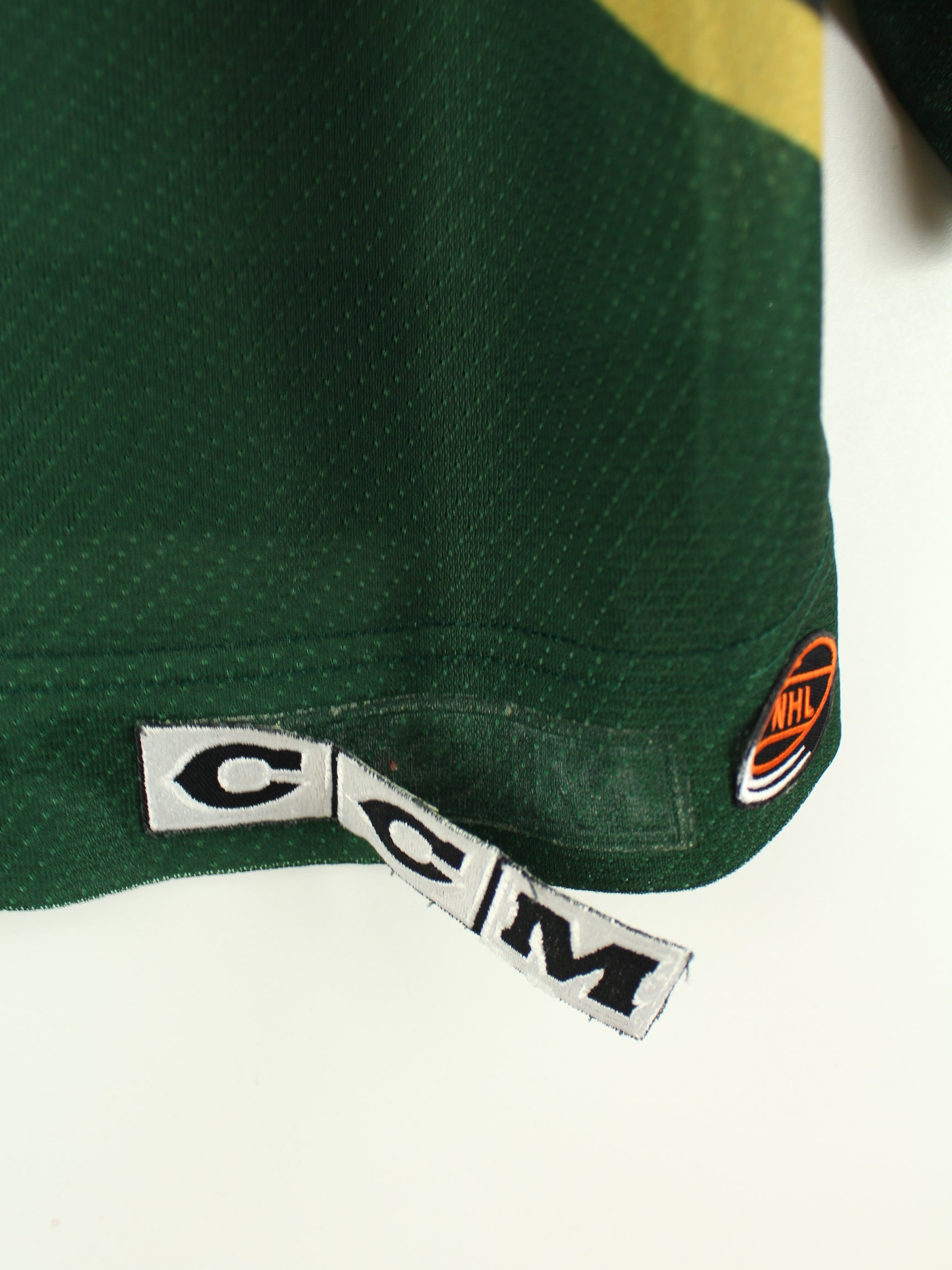Green jersey with embroidery from the NHL brand from the early 2000s in size L. It is made of synthetic material. We would describe the condition as 'fine' (see pictures).