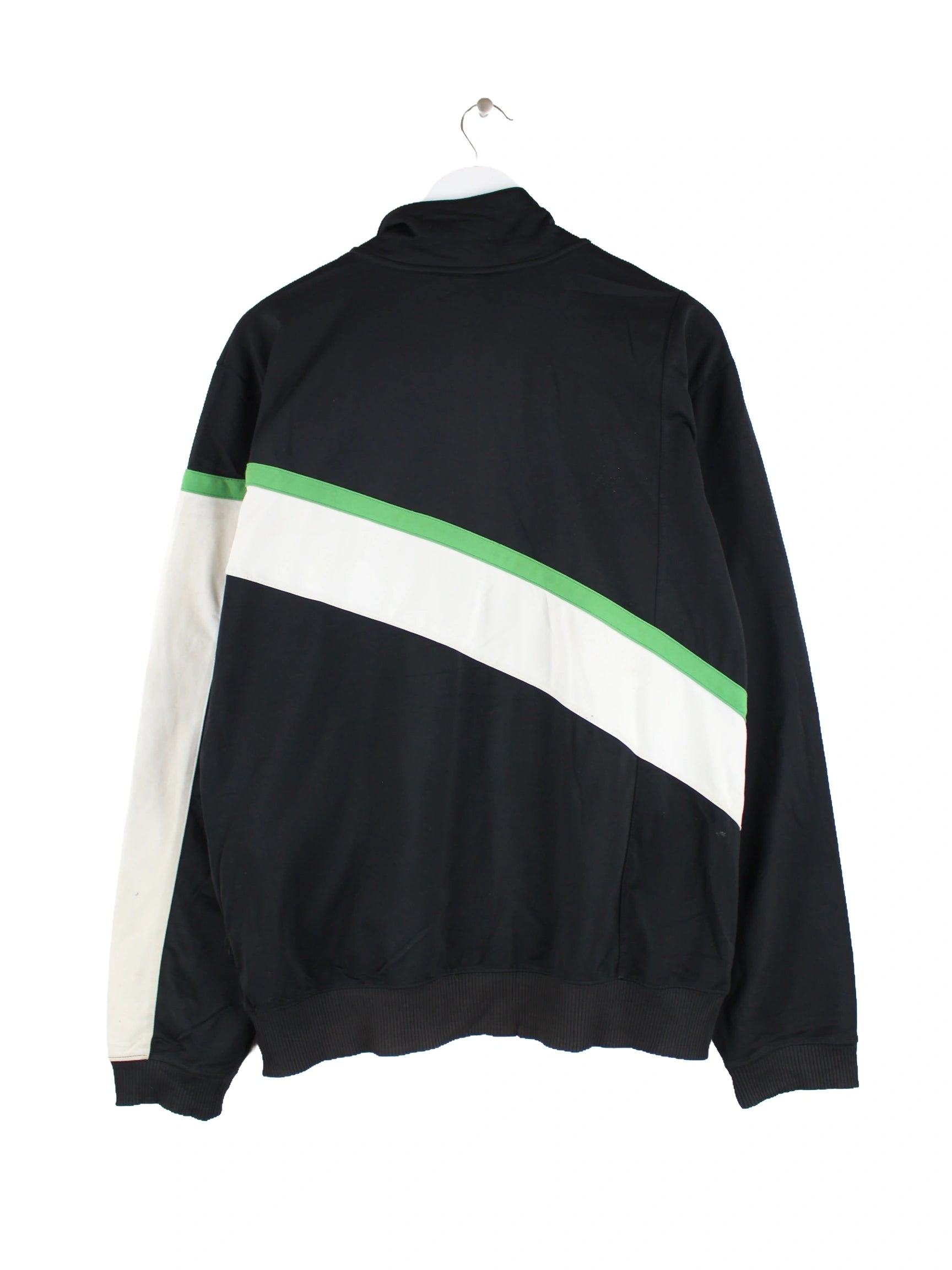 Schwarze Trainingsjacke aus dem Hause Nike in Größe M. Sie ist aus Synthetik produziert. Den Zustand würden wir als 'In Ordnung' bezeichnen (vergl. Bilder).