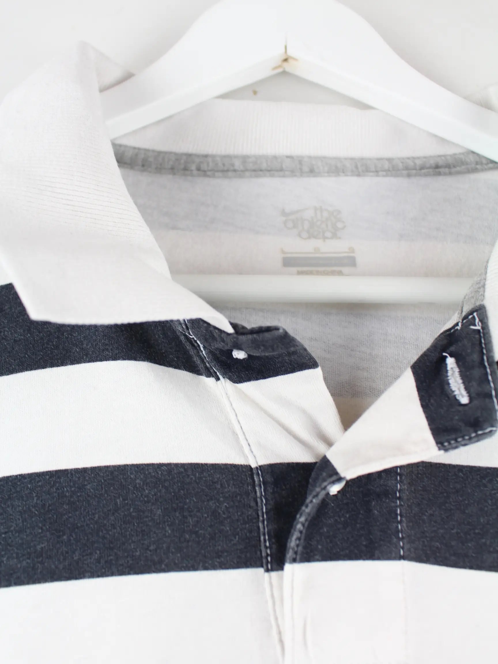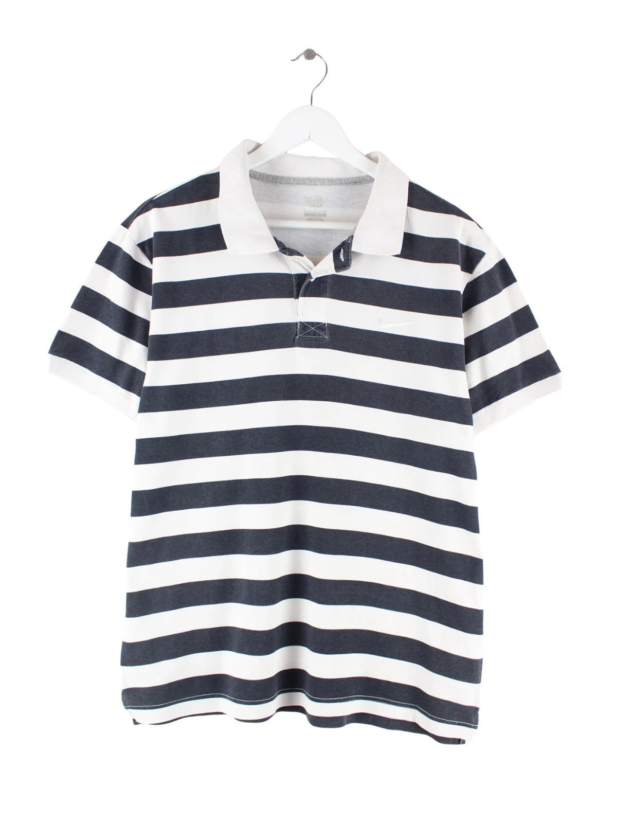 Schwarzweißes Poloshirt der Brand Nike in Größe L. Es ist aus Baumwolle gemacht und in gutem Zustand lieferbar.