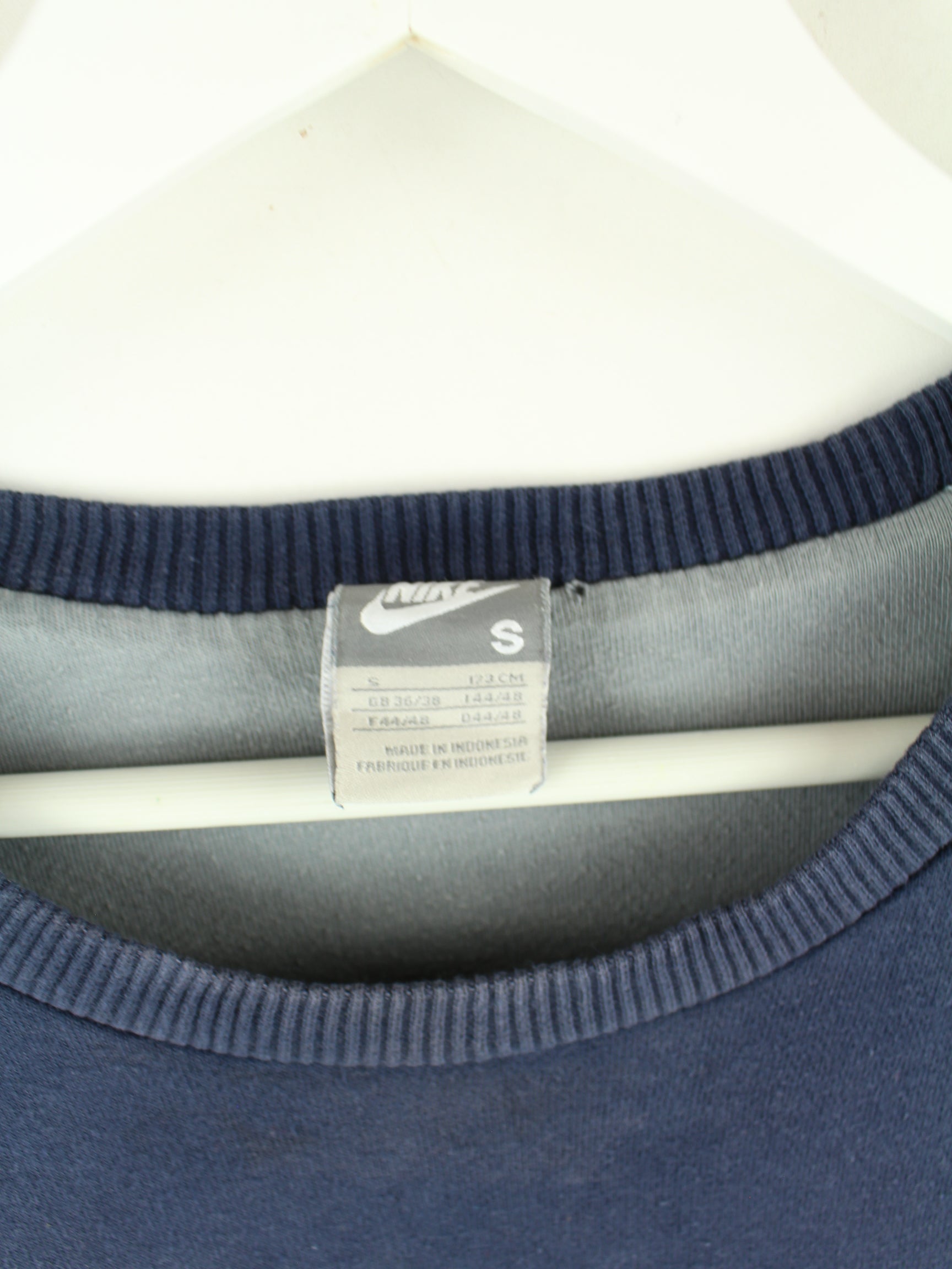 Blue sweater with embroidery from the brand Nike from the early 2000s in size S. It is made from a cotton blend and is in good condition.