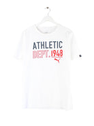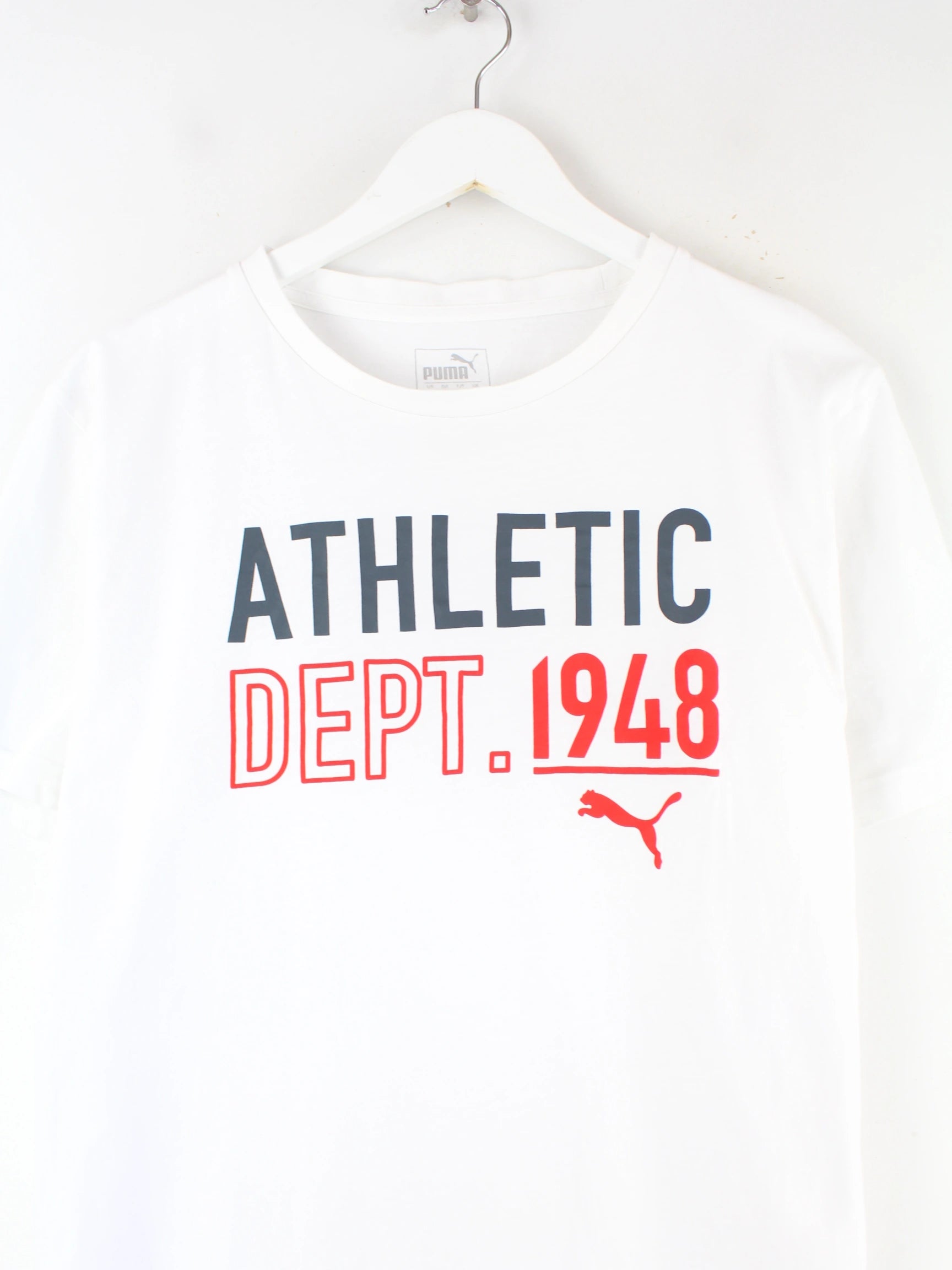 Weißes T-Shirt des Labels Puma in Größe M. Es ist aus Baumwolle produziert und in sehr gutem Zustand zu bekommen. Mit chiquem Print.