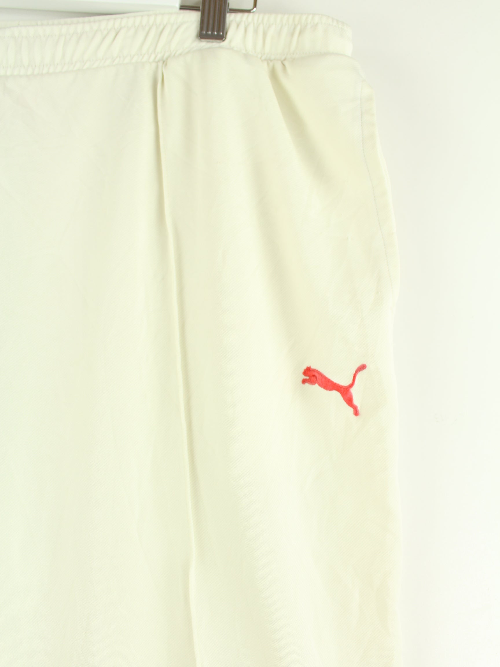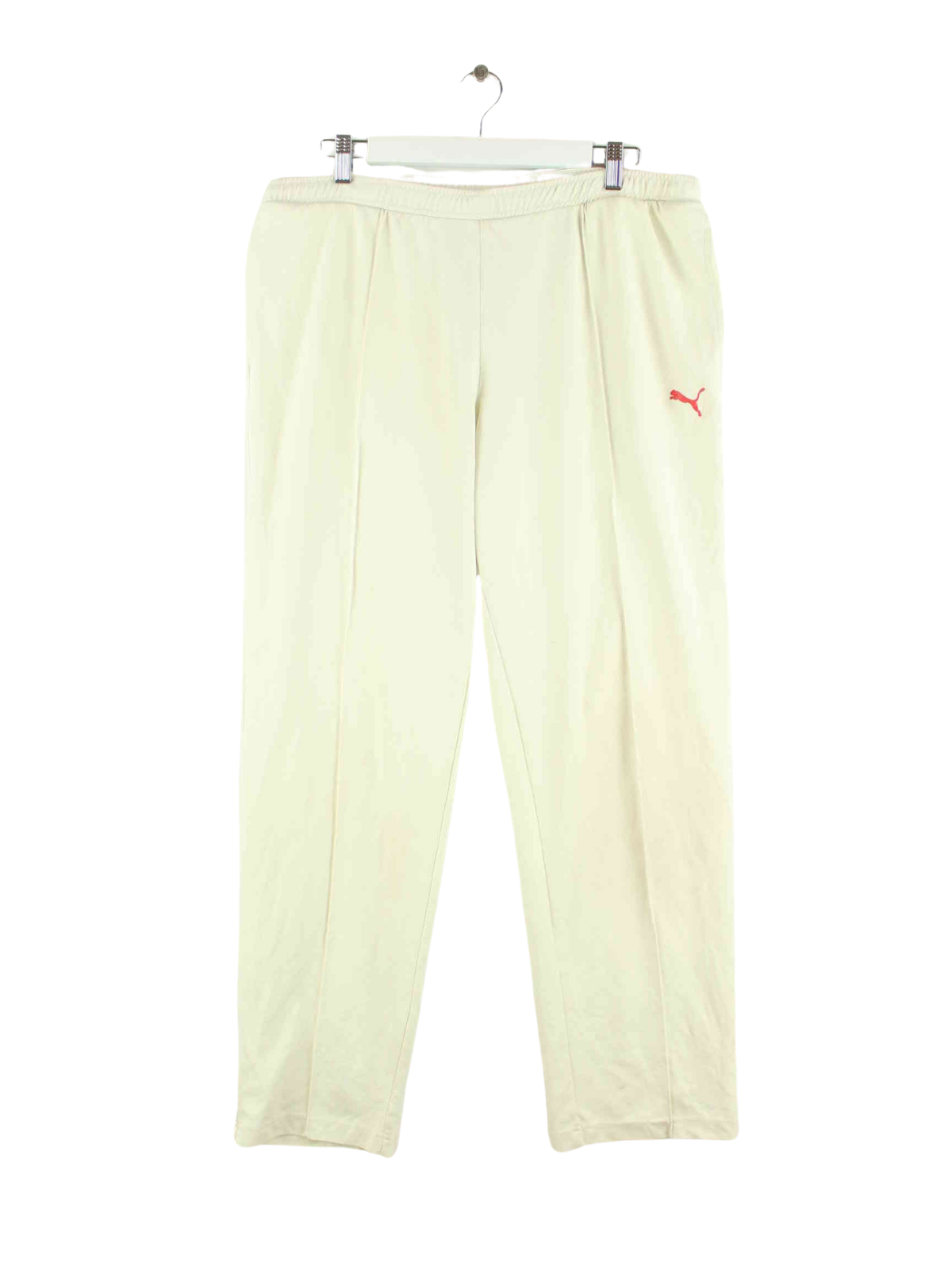 Track pants from the label Puma in size L. They are made of synthetic material and are available in beige.
