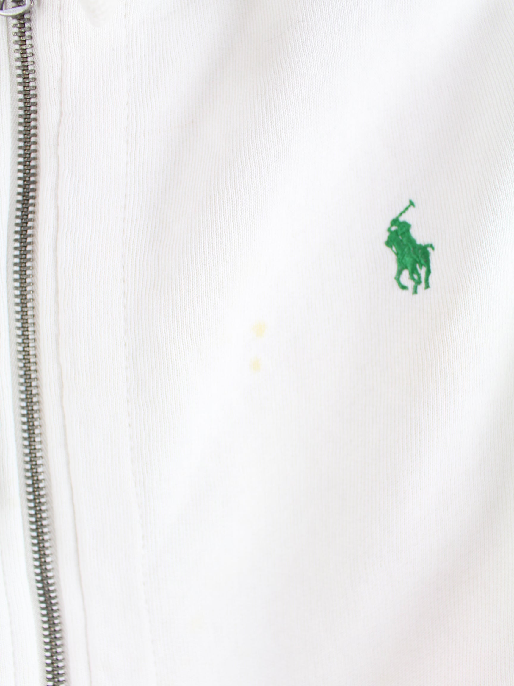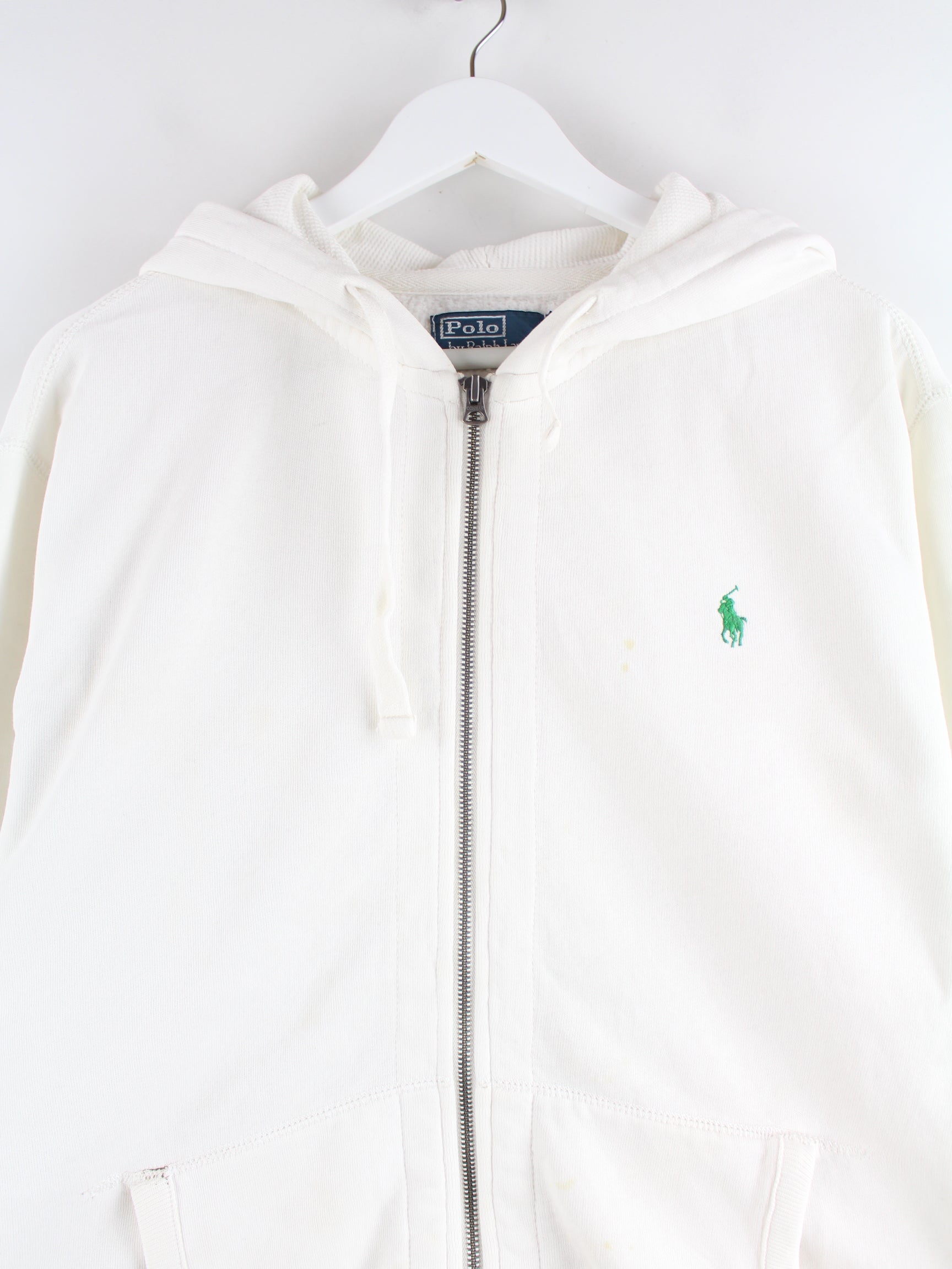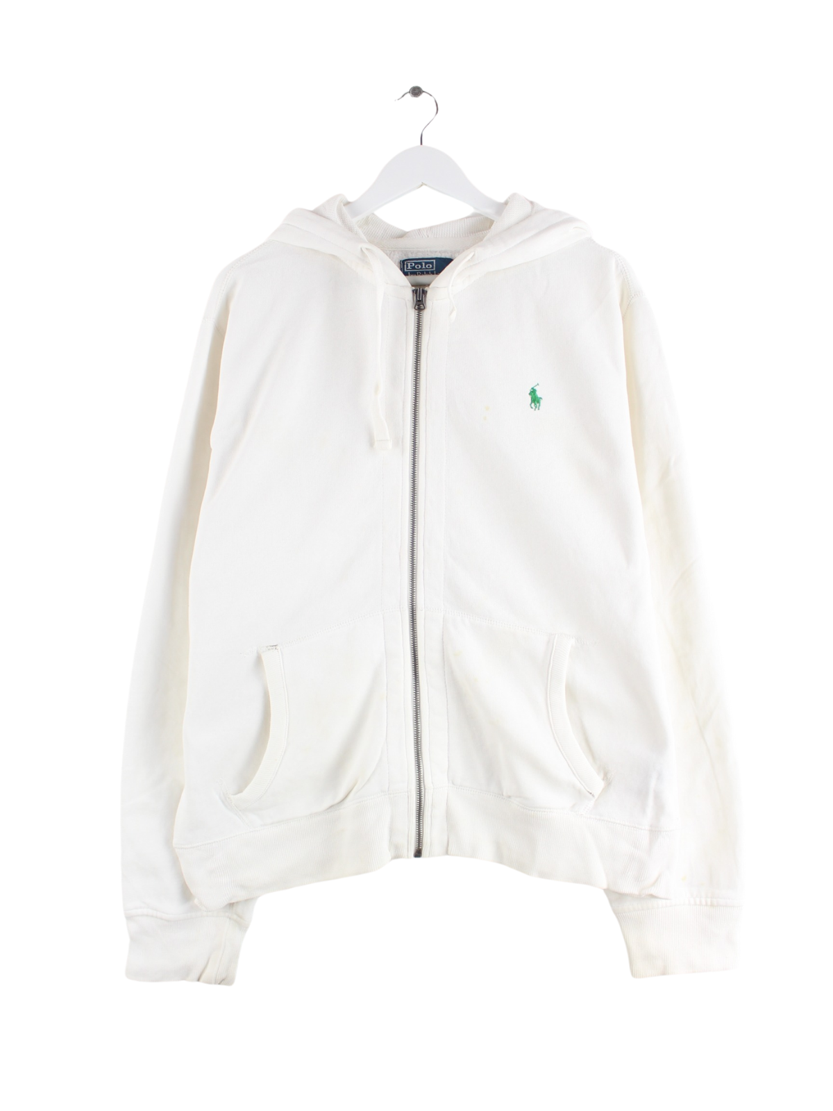 White hoodie with zip from the brand Ralph Lauren from the early 2000s in size L. It is made from a cotton blend. We would describe the condition as 'fine' (see pictures).