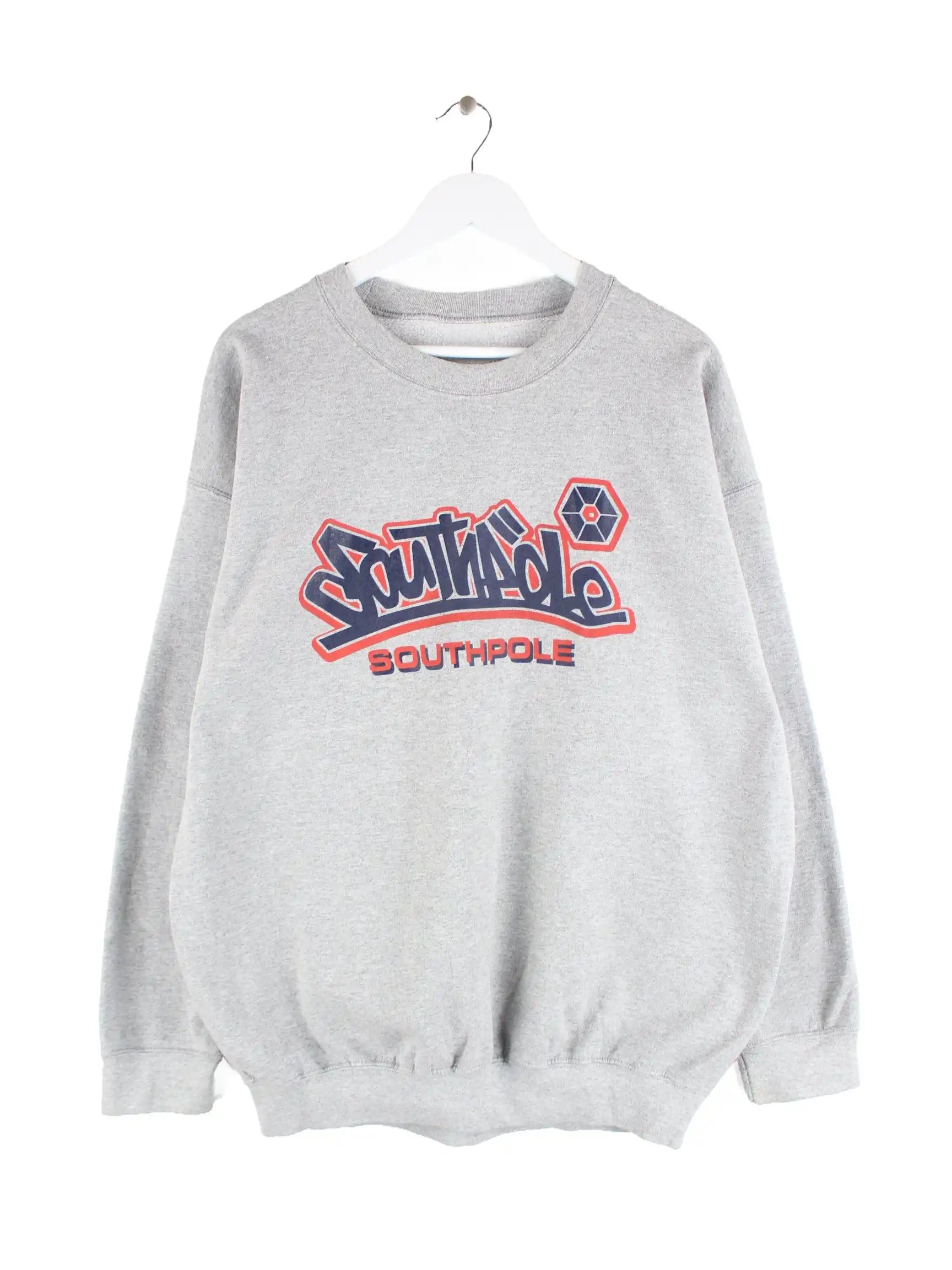 Sweater vom Label Southpole in Größe XL aus Anfang der 2000'er. Er ist aus einer Baumwollmischung hergestellt und in Grau bei uns zu bekommen. Mit chiquem y2k Print.