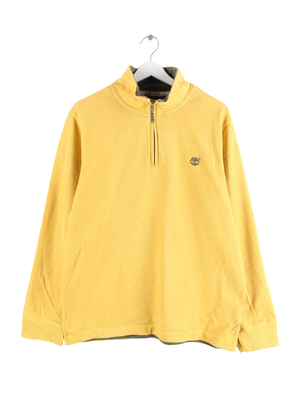 Yellow sweater with half zip from the Timberland label in size L. It is made of a cotton blend and is in stock in good condition.
