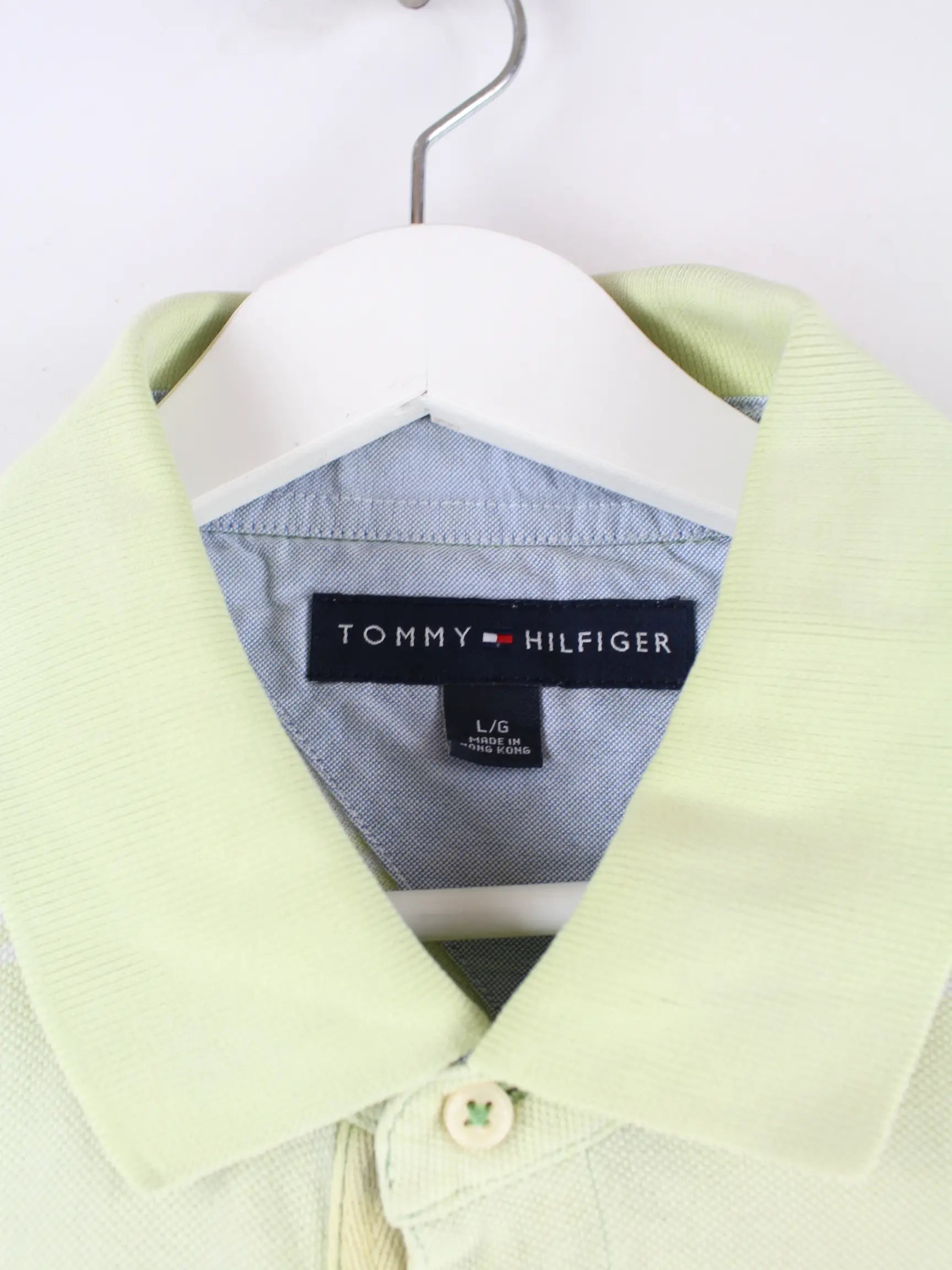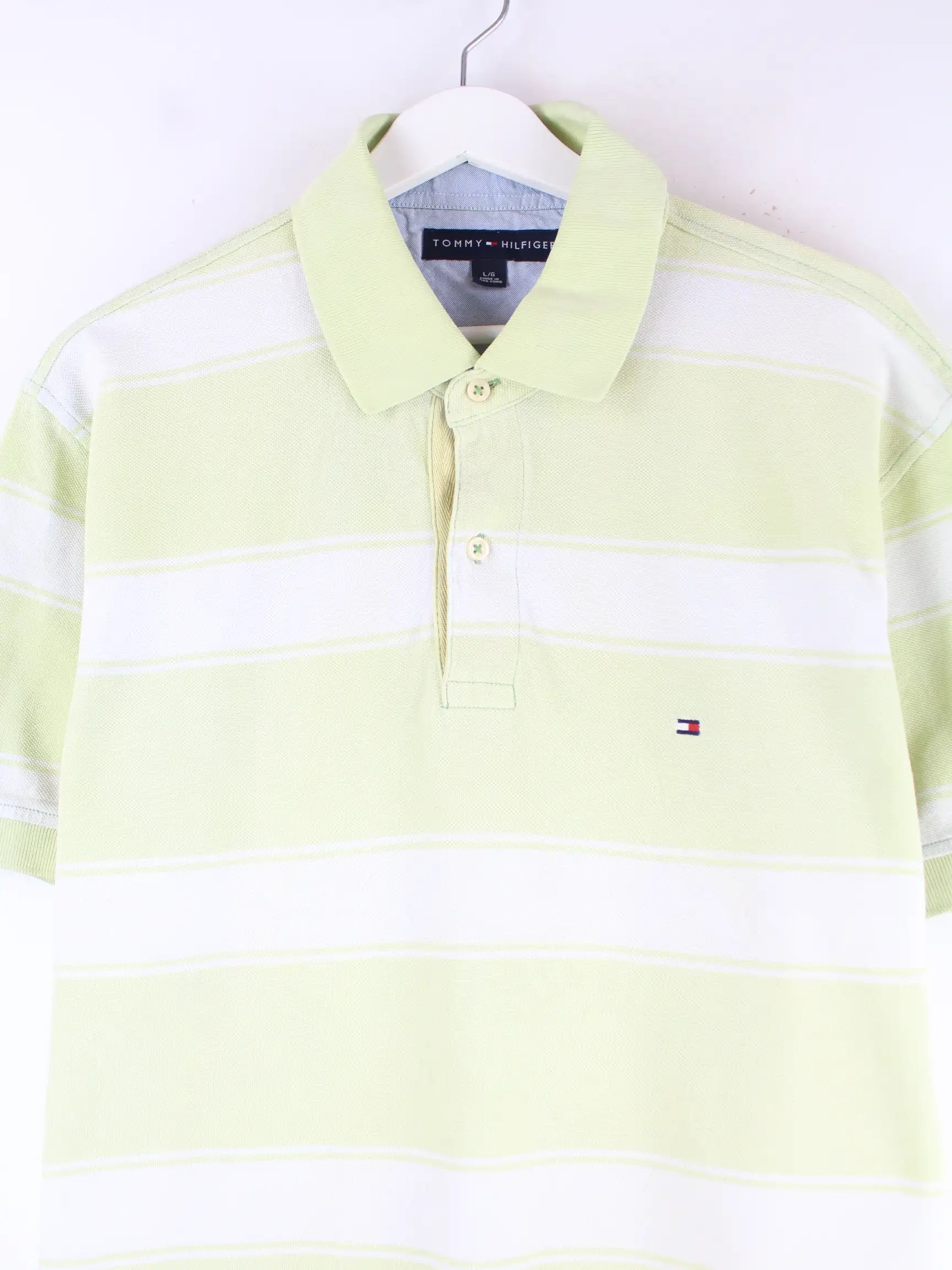 Poloshirt aus dem Hause Tommy Hilfiger in Größe L. Es ist aus Baumwolle gefertigt und in Grün auf Lager.