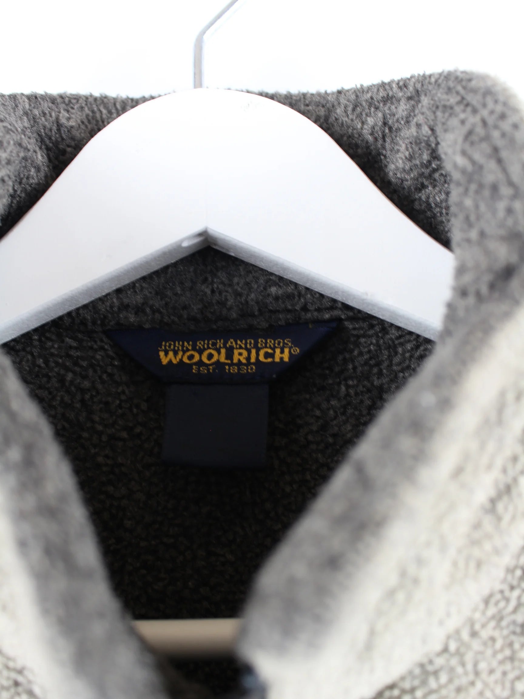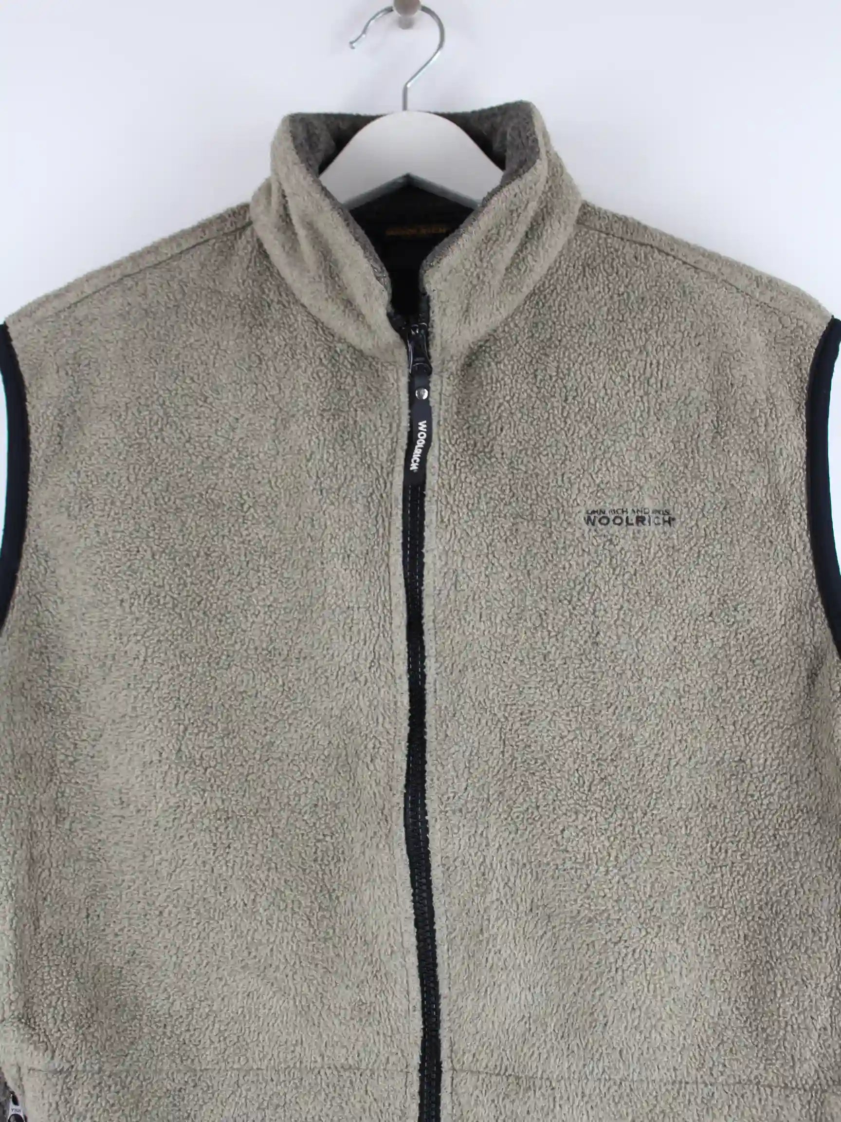 Graue Weste des Labels Woolrich in Größe S. Sie ist aus angenehmem Fleece hergestellt und in sehr gutem Zustand im Angebot.