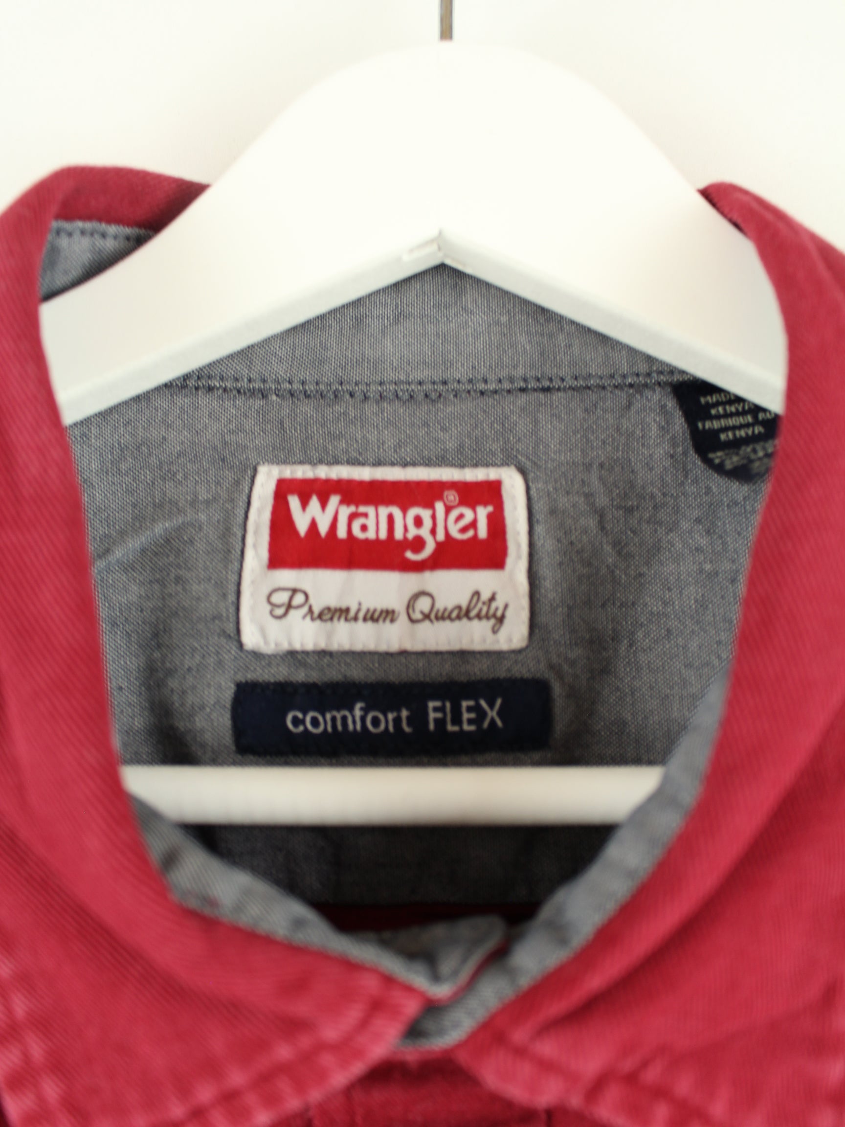 Casual shirt from the Wrangler brand in size XL from the early 2000s. It is made of cotton and comes in red.