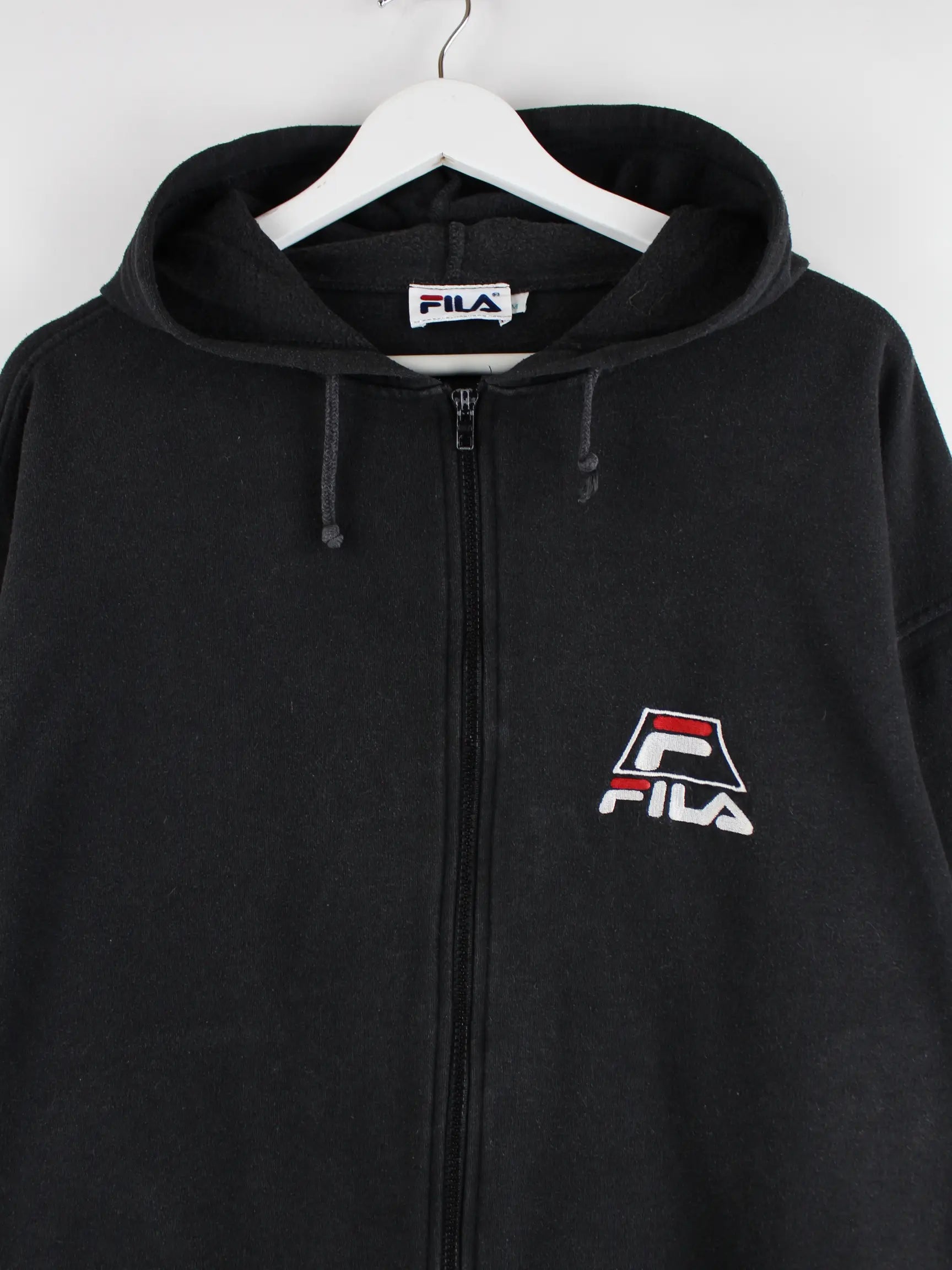 Fila 90s Vintage Big Logo Zip Hoodie Schwarz M
