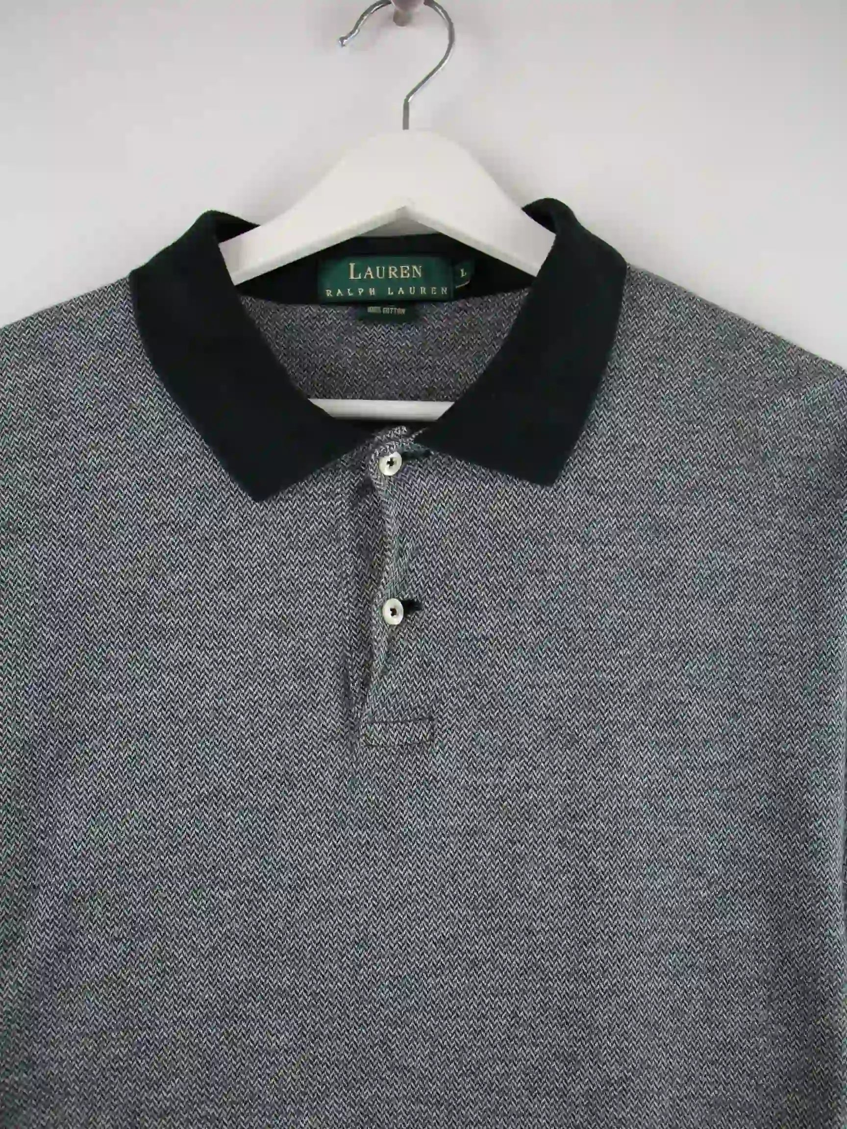 Graues Poloshirt der Marke Ralph Lauren in Größe L. Es ist aus Baumwolle hergestellt und in sehr gutem Zustand auf Lager.